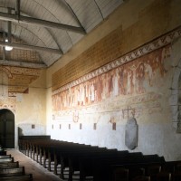 L’église Saint-Rémi est un édifice composite dont l’intérêt réside principalement dans sa nef unique du 11ème siècle, l’une des mieux conservées de la région, et surtout dans le cycle exceptionnel des fresques gothiques qui la décorent.