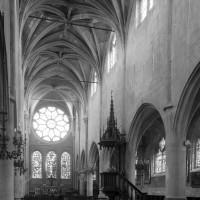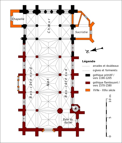 Les cinq autres travées ainsi que le clocher – dont le dernier étage est plus tardif – ont été bâtis au début du 16e siècle avec un souci de continuité, tant dans l’élévation que dans le plan, tout à fait rare à cette époque et qui confère une grande unité esthétique à l’édifice. Les voûtes du vaisseau central, au réseau composé de liernes et de tiercerons, ainsi que la pénétration directe dans les piles des ogives et des arcades au profil prismatique sont caractéristiques de la fin du gothique.
