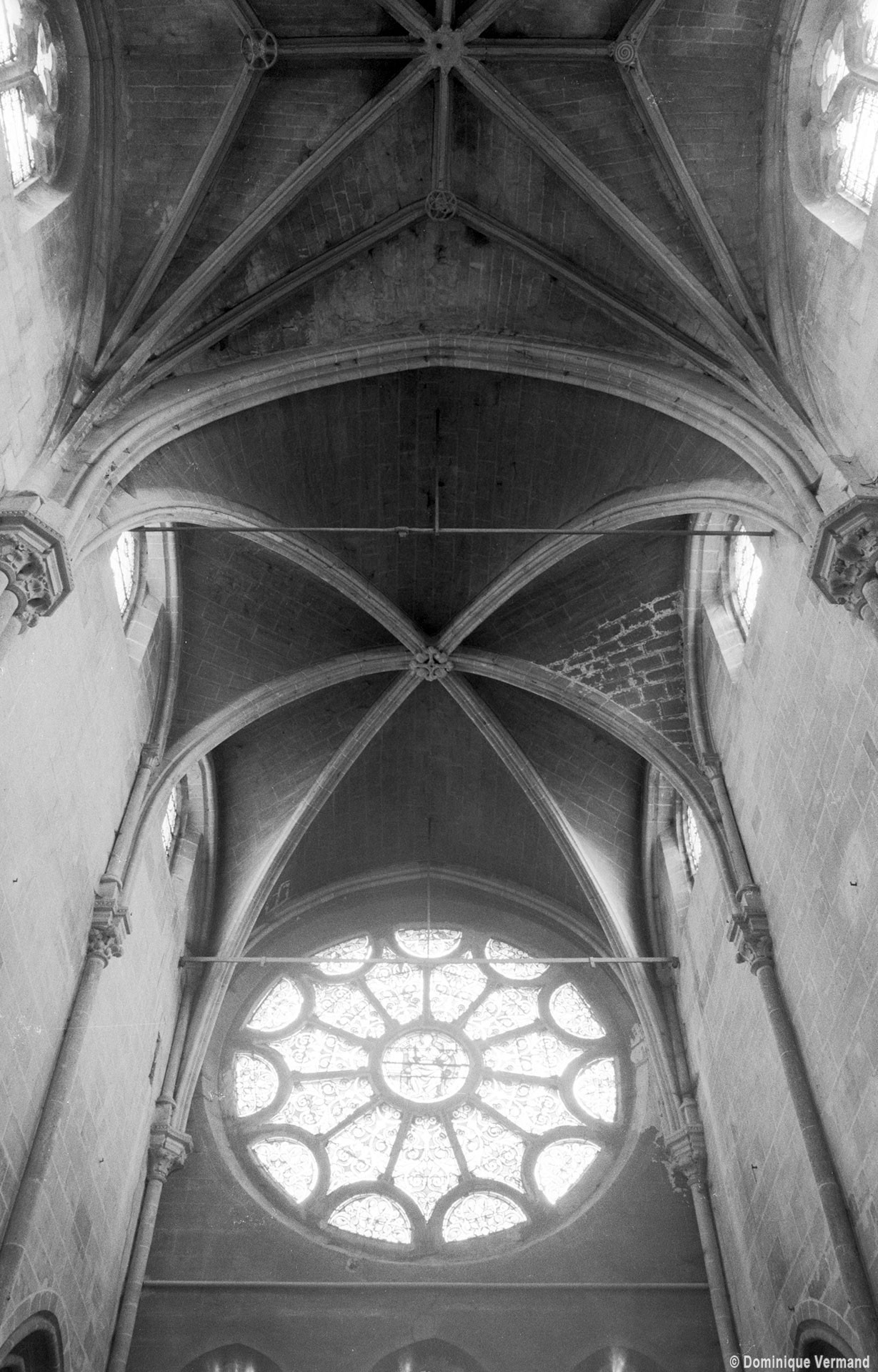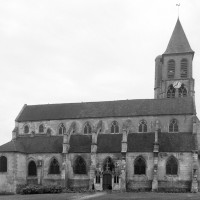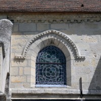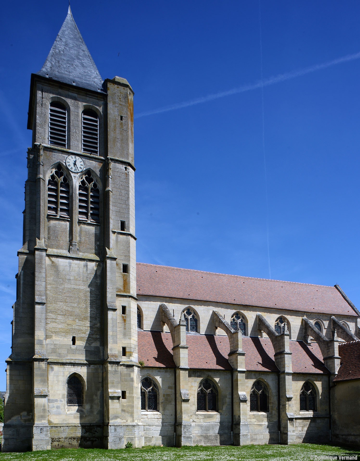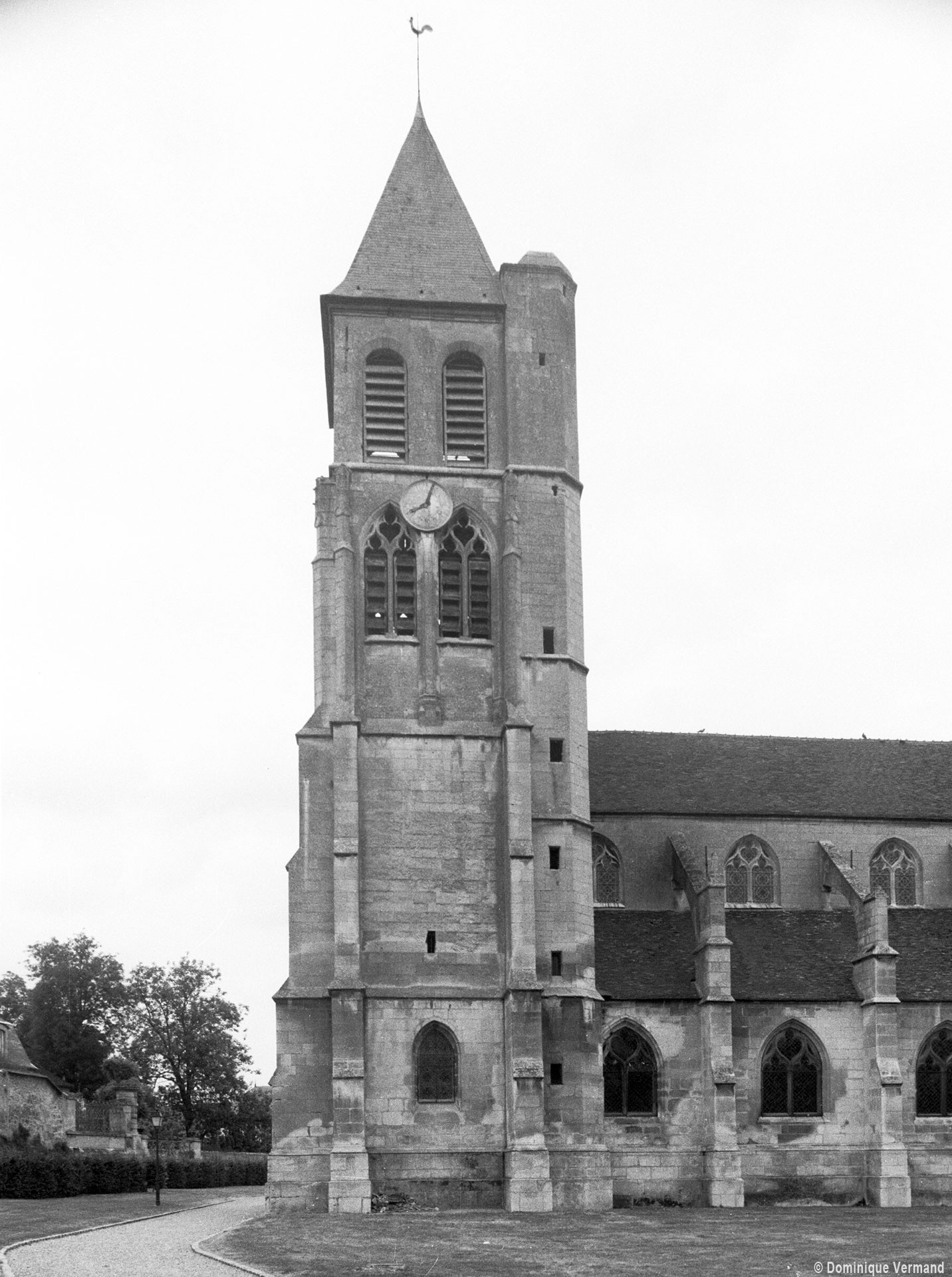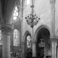 Partie la plus ancienne de l’église, la dernière travée a été bâtie à la fin du 12e siècle. Elle est couverte d’une voûte sexpartite retombant sur des piles circulaires et constitue un bon exemple de l’influence exercée alors autour de Paris par la cathédrale Notre-Dame. Caractérisée par la présence d’une très importante portion de mur nu entre les grandes arcades et les petites fenêtres hautes, littéralement “coincées” sous l’arc formeret, son élévation est, en esprit puisse qu’ici il n’y a pas de tribunes, et toutes proportions gardées, d’un effet très proche de celle que présentait primitivement la cathédrale parisienne.
