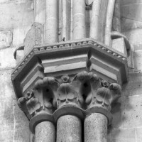 Sous le clocher, on remarque une belle peinture française du 17e siècle, l’Investiture de saint Pierre, ainsi qu’un retable en pierre, du 13e siècle, figurant le Christ en Croix encadré de la Vierge, de saint Jean, des apôtres Pierre, Paul, Jacques et Barnabé (1997).
