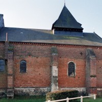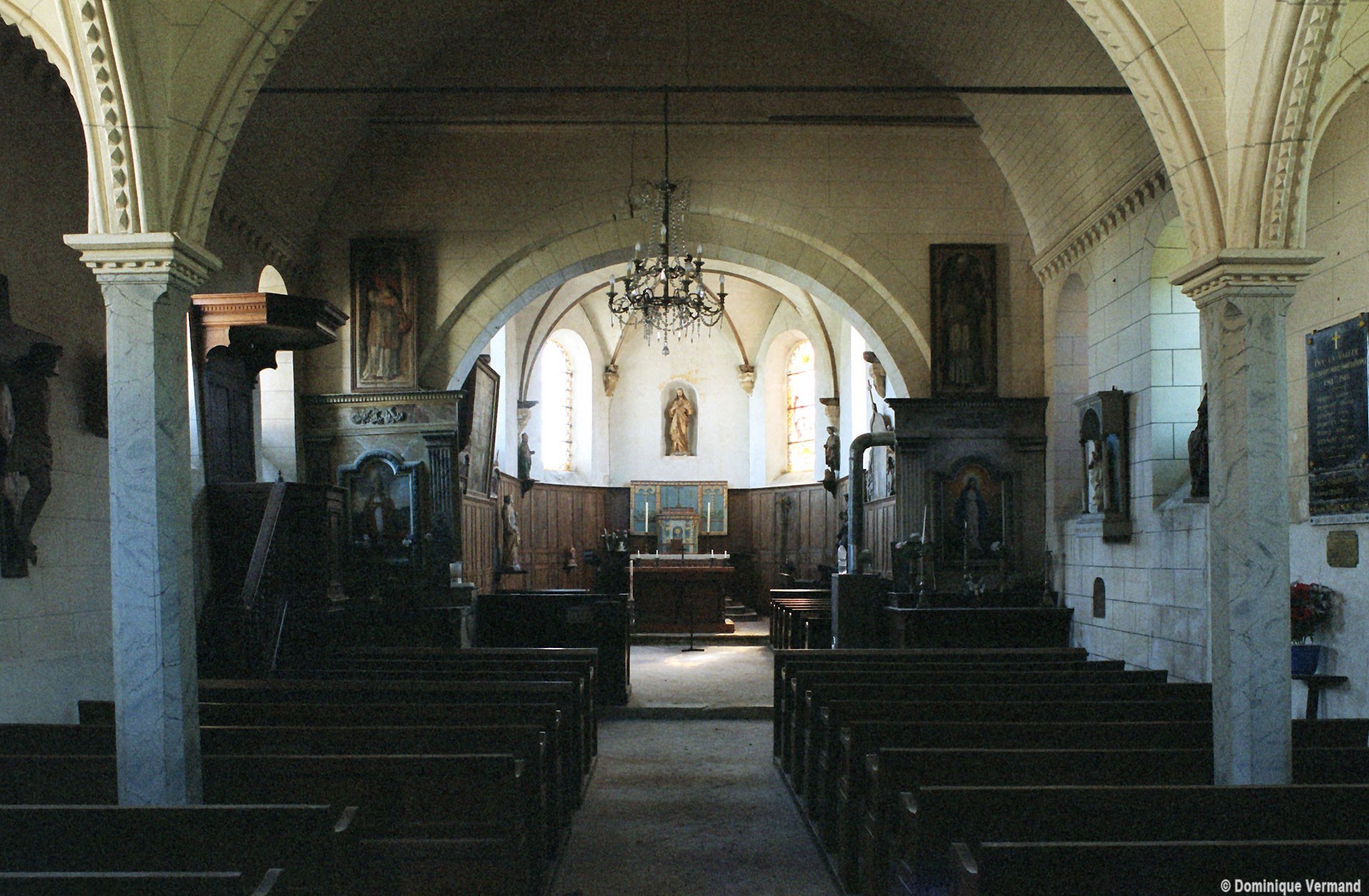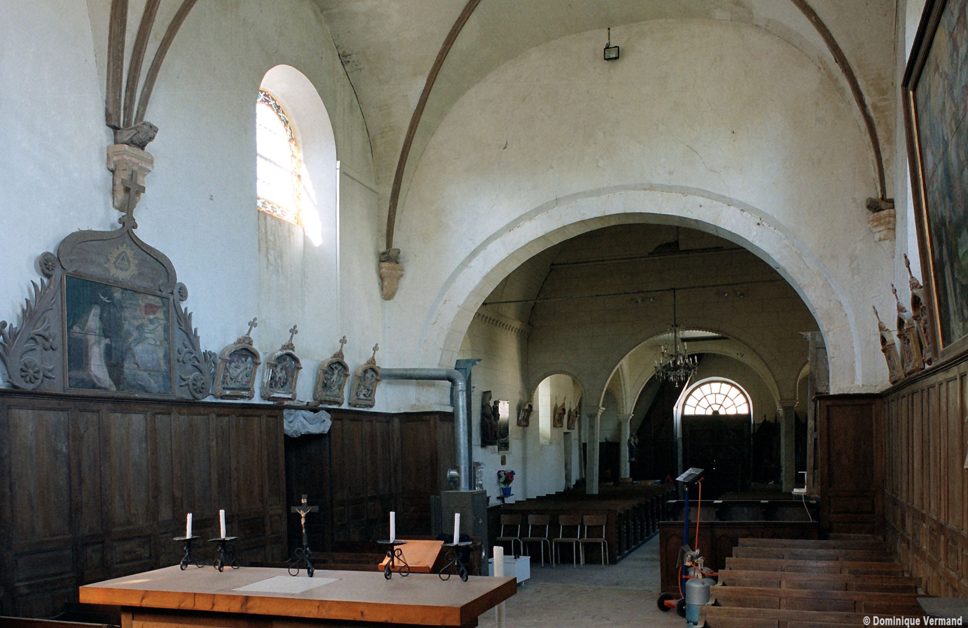 Sans doute d’origine ancienne comme le montre son mur sud, la nef a été largement reconstruite en brique – un matériau plus économique – en même temps que le choeur. Elle sera dotée d’une nouvelle façade, sans doute au début du 19ème siècle, et surélevée au milieu du même siècle, toujours en utilisant la brique.