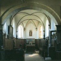 De plan très simple, Notre-Dame et Saint-Prix juxtapose une nef unique et un chœur terminé par une abside à trois pans. Soigneusement construit en pierre, le chœur doit remonter à la fin du 16ème siècle. Les contreforts fortement saillants ont été réparés en brique et les fenêtres sont de simples ouvertures en plein cintre. A l’intérieur, des consoles sculptées permettent de penser qu’une voûte en pierre avait été prévue. Elle n’a, semble-t-il, jamais été réalisée car, immédiatement au-dessus, des blochets en bois, également sculptés et à peine plus tardifs, reçoivent un lambris imitant des voûtes d’arêtes.