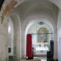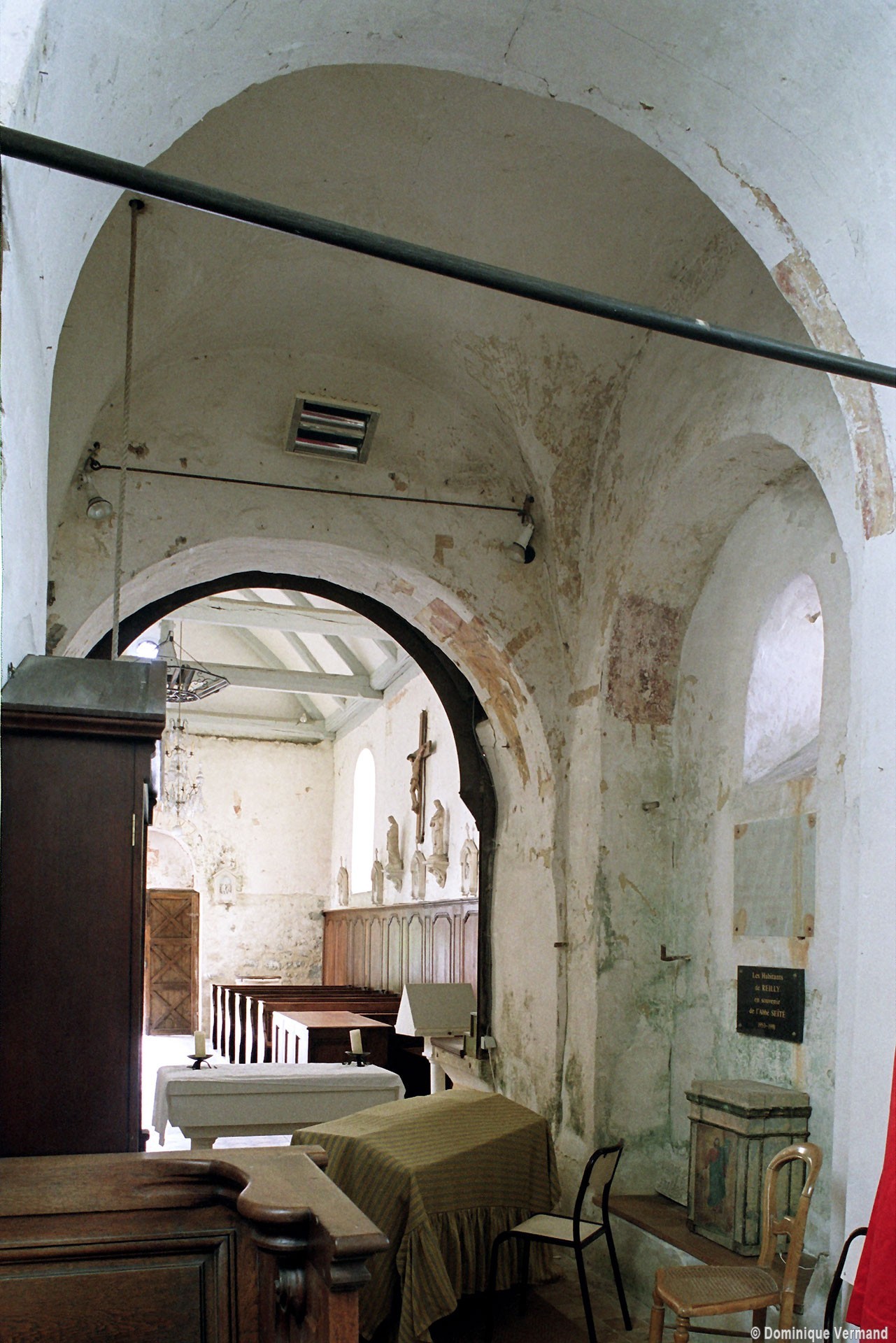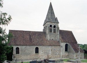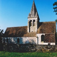Dominant le village de la haute flèche en pierre de son clocher, Saint-Aubin est un bon exemple d’architecture romane rurale de la fin du 11ème siècle. Le plan, comme toujours très simple, est composé d’une nef unique suivie d’une travée plus étroite portant le clocher et d’un chœur, ici reconstruit au 13ème siècle et à chevet plat. Une petite abside en hémicycle devait terminer l’édifice à l’origine.