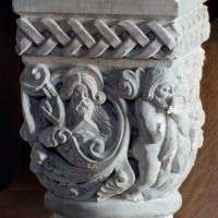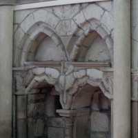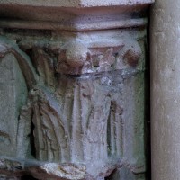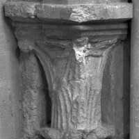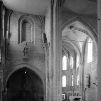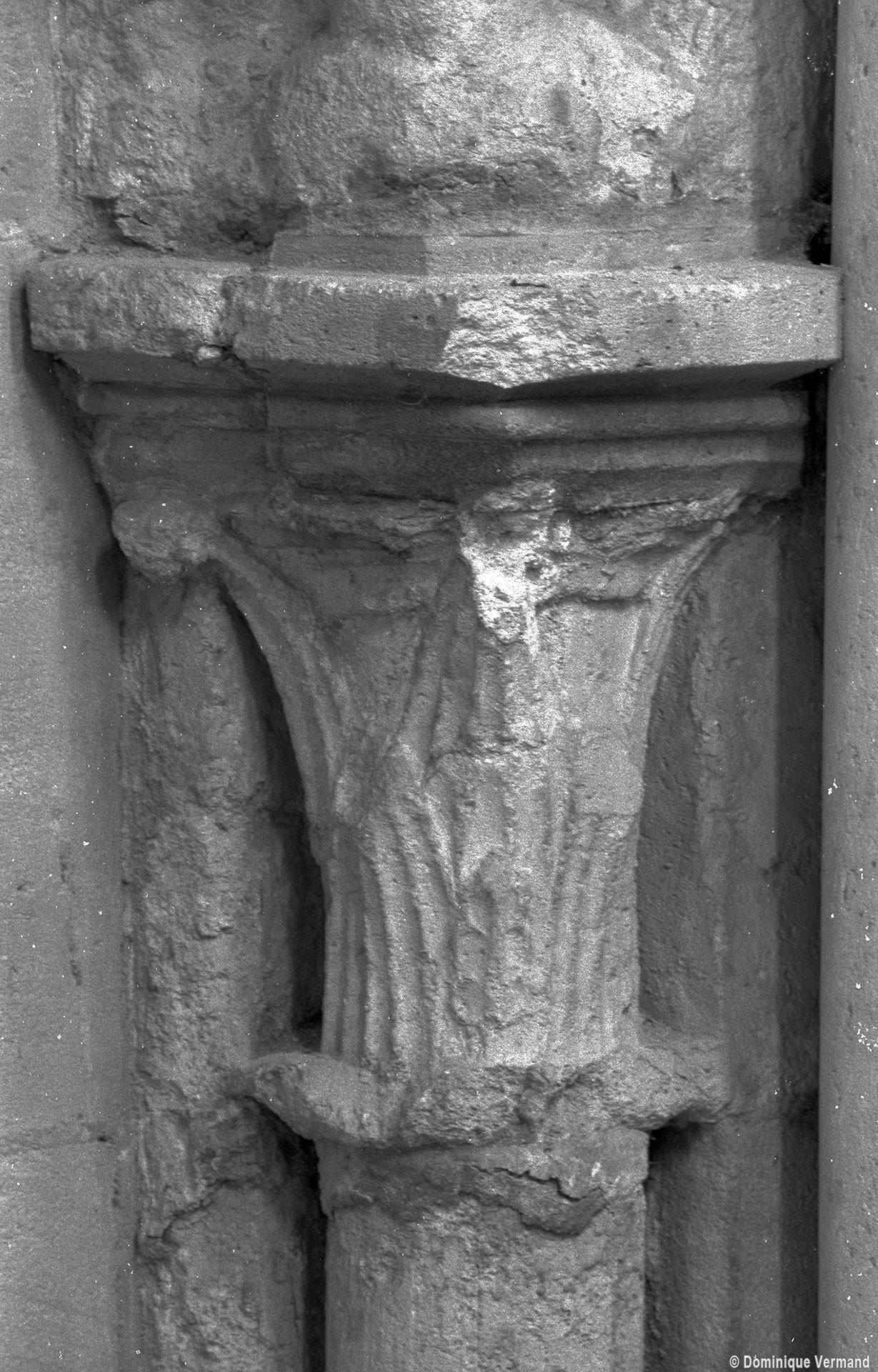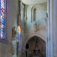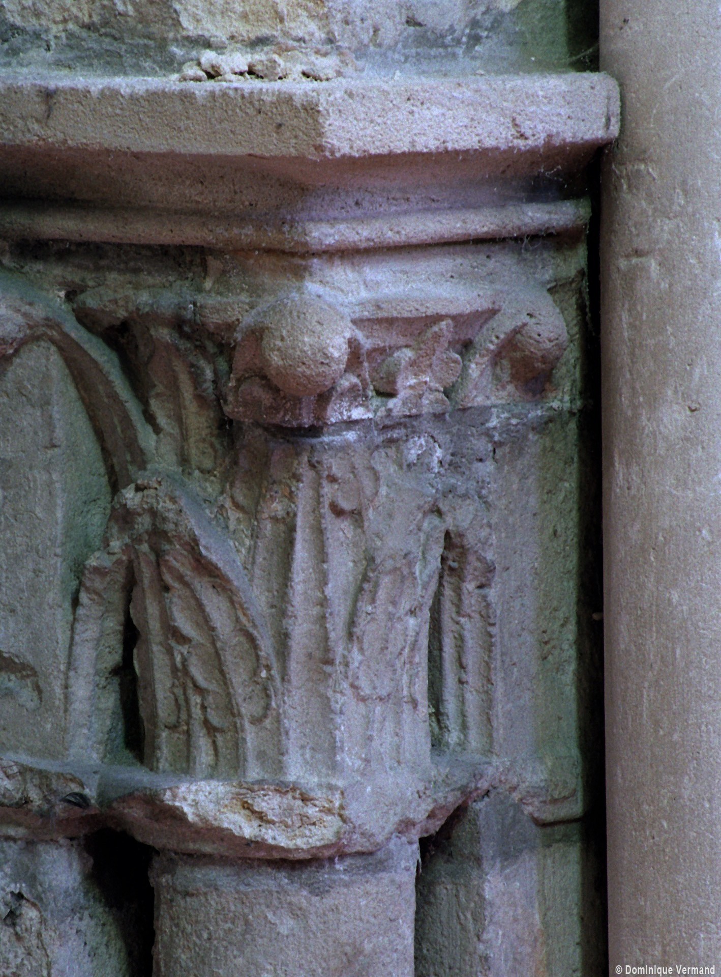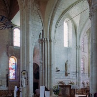 Les parties subsistantes du transept nord, privé de sa voûte, montrent que celui-ci était contemporain du choeur. Les chapiteaux conservés sont authentiques et confirment bien une datation vers la fin du 12ème siècle. Sa façade nord, très incomplète, comporte également deux niveaux de fenêtres et les témoins en place permettent d’imaginer une élévation avec deux fenêtres en partie basse et quatre en partie haute.