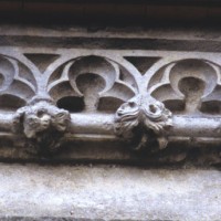 A l’extérieur, c’est le magnifique volume du chevet qui retient l’attention. Celui-ci est découpé en panneaux bien individualisés par la saillie prononcée des contreforts et la superposition des doubles lancettes. Puissantes au niveau du socle, les maçonneries s’affinent à hauteur du premier étage où les contreforts sont à la fois plus étroits et moins saillants. La corniche à modillons est encore en place. Le choeur de Ressons-sur-Matz est une variante simplifiée d’une famille monumentale particulièrement bien représentée en Laonnois et Soissonnais (Mons-en-Laonnois, Braine, Saint-Léger de Soissons…) et autour de Paris (Marly-la-Ville, Thiverny…) à la charnière des 12ème et 13ème siècles.