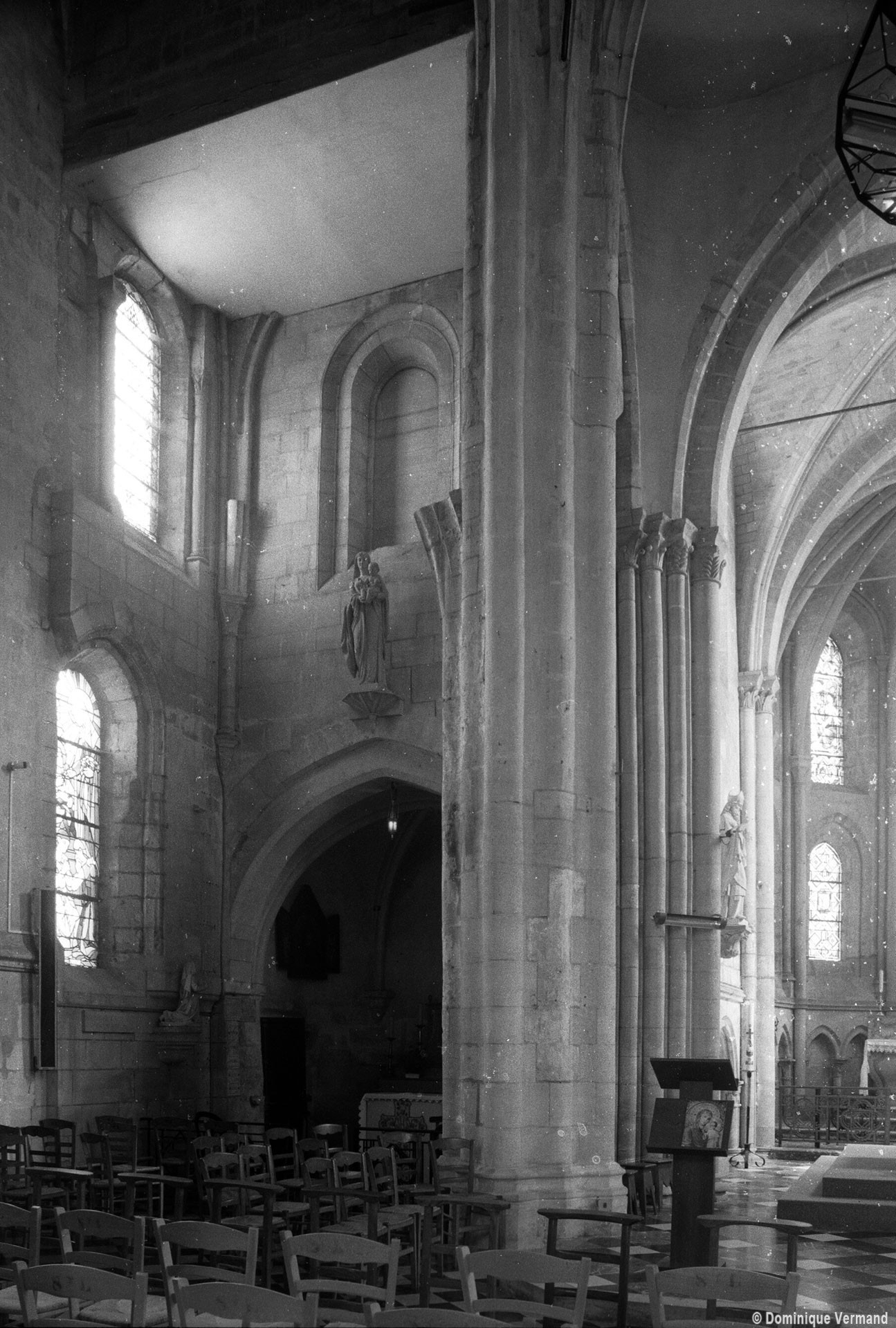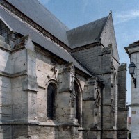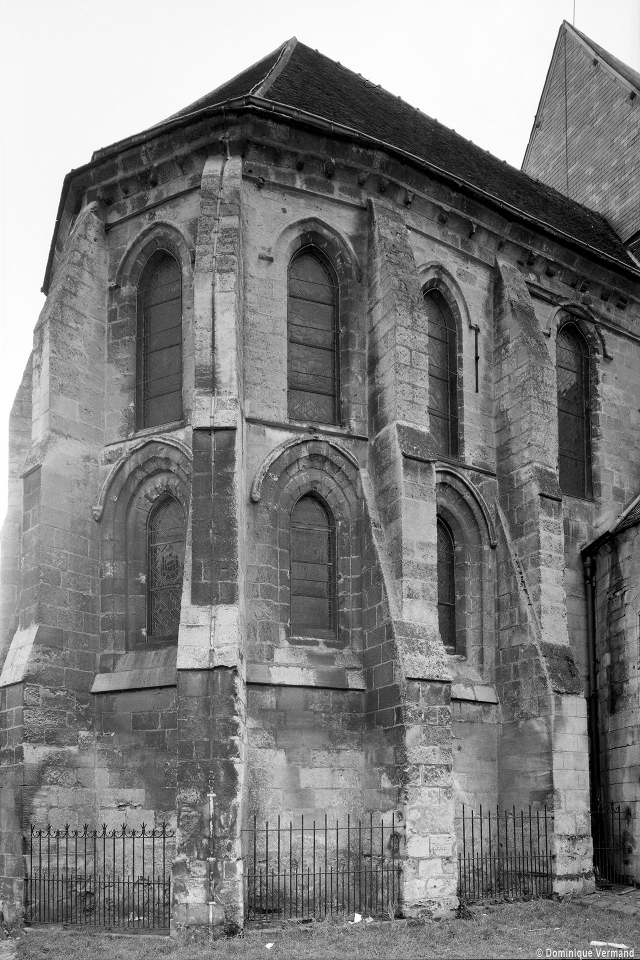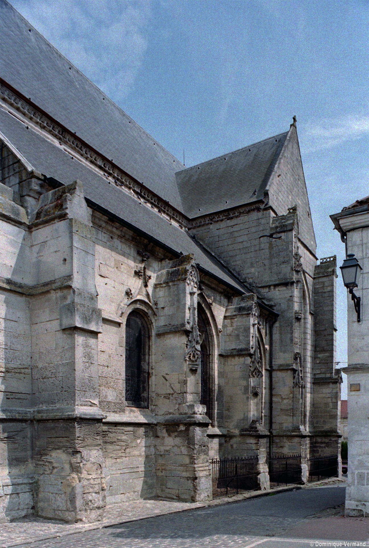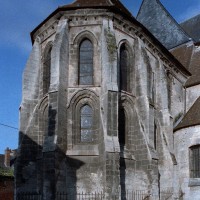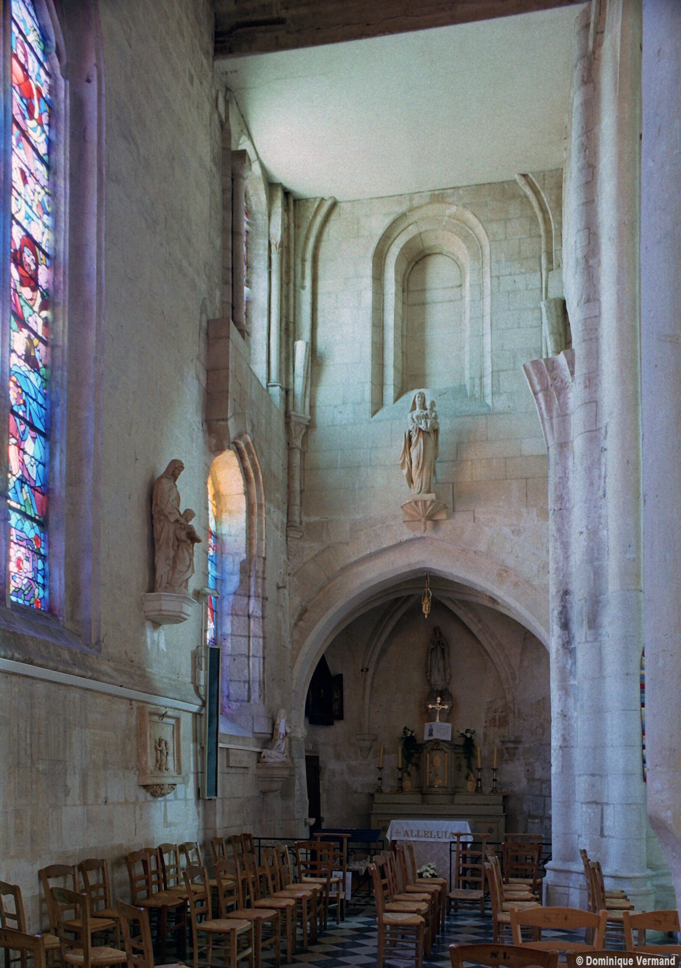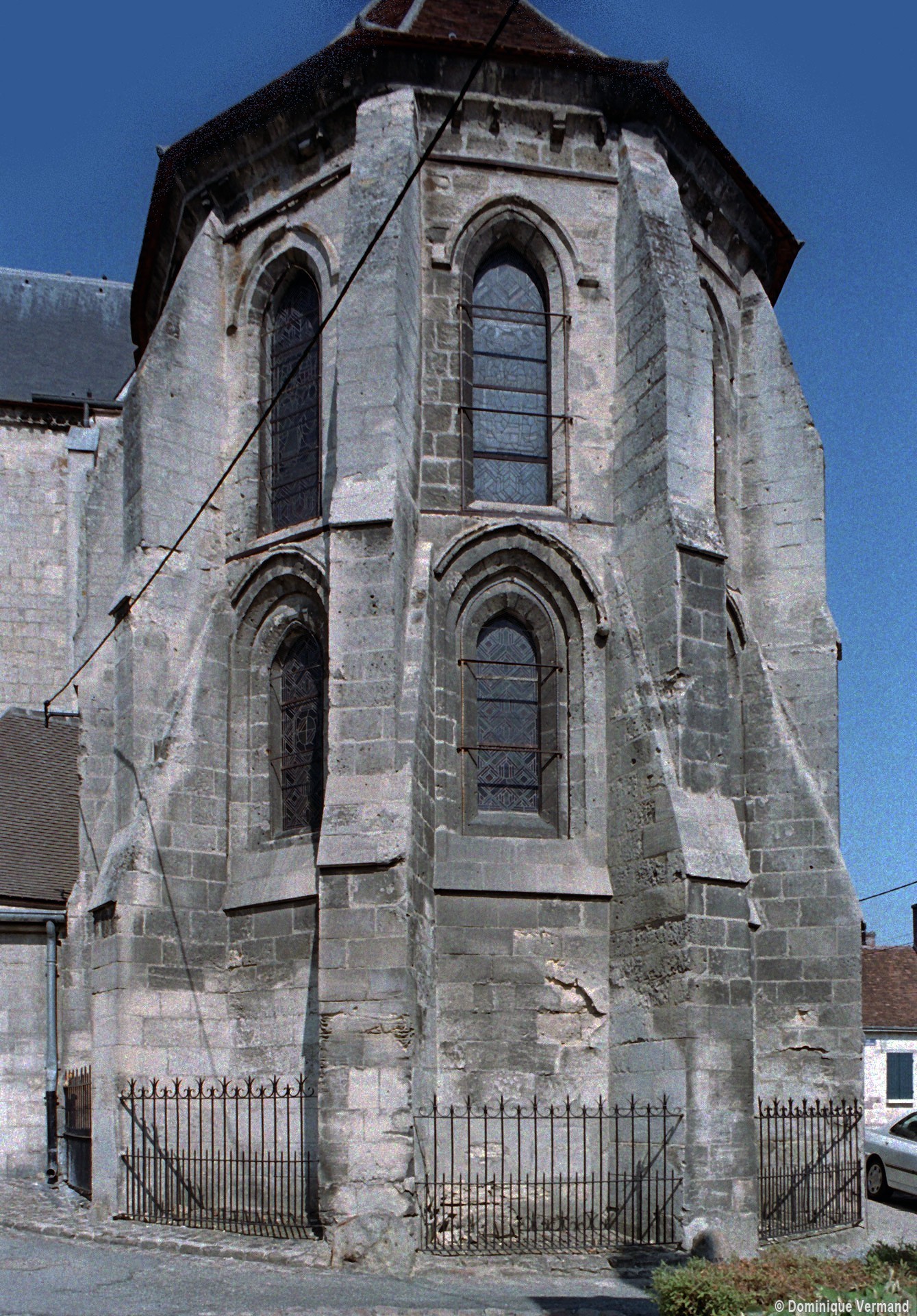 Saint-Nicolas et Saint-Louis (ce dernier vocable n’ayant été introduit qu’en 1709) est un vaste édifice appartenant à la fin du 12ème siècle (choeur) et au 16ème siècle (nef et transept). Bien que malmenées par des restaurations excessives et d’une grande sécheresse, les parties conservées du 12ème siècle permettent de restituer un ensemble oriental de belle ampleur qui se composait du choeur actuel flanqué de deux chapelles en hémicycle, le tout greffé sur un transept dont des témoins subsistent au nord.