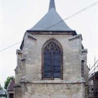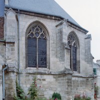 Dans ces dernières, quatre vitraux ont été installés dans les années quarante et cinquante, qui représentent successivement (de gauche à droite) : saint Pierre, Notre Dame de la Paix (1958), saint Paul et saint Hubert (1945) (2009).