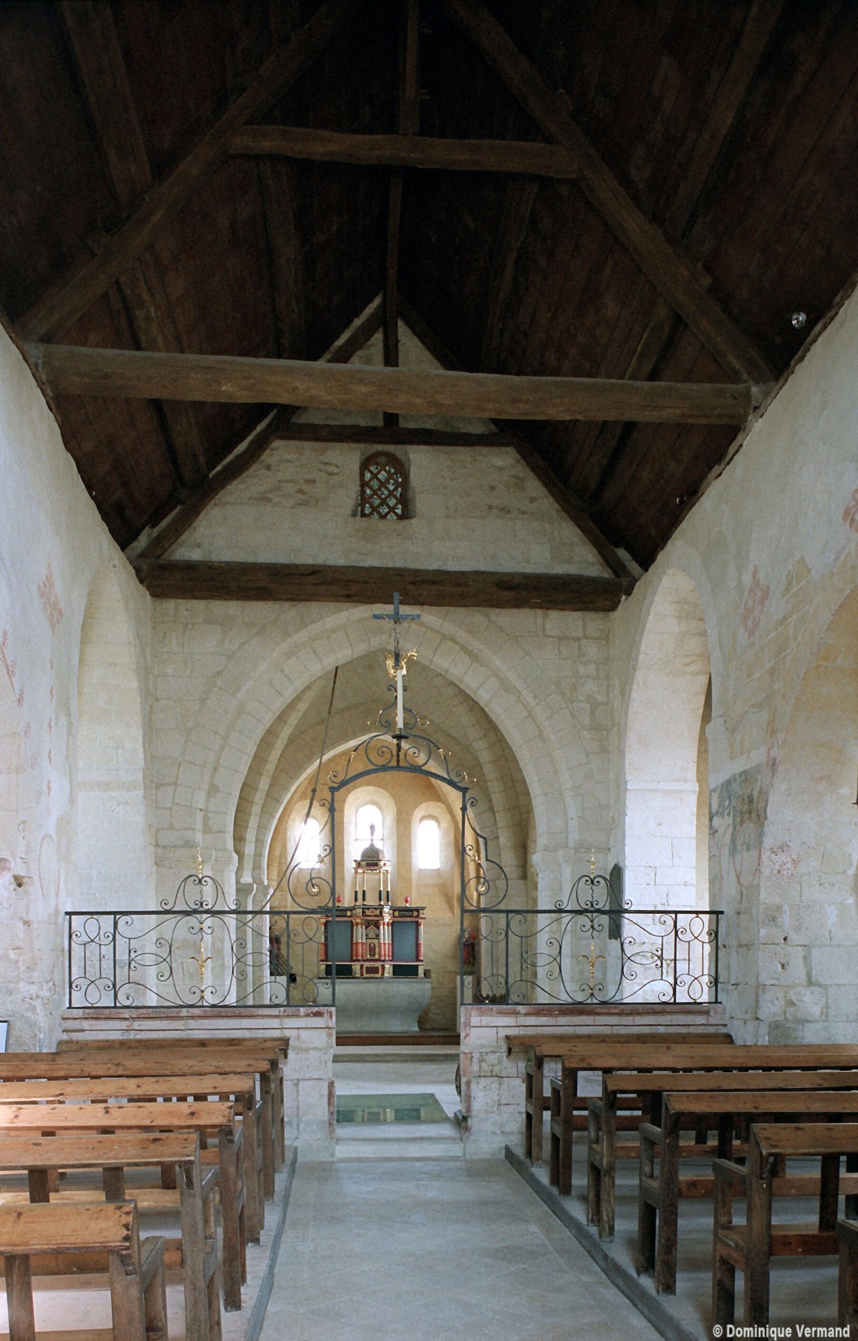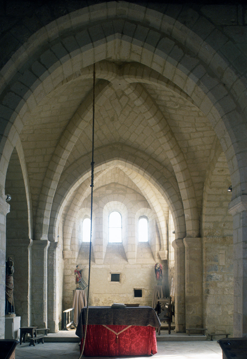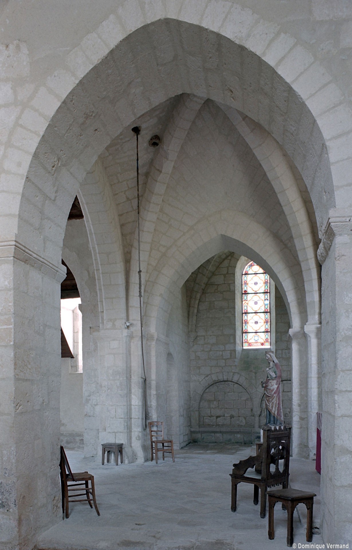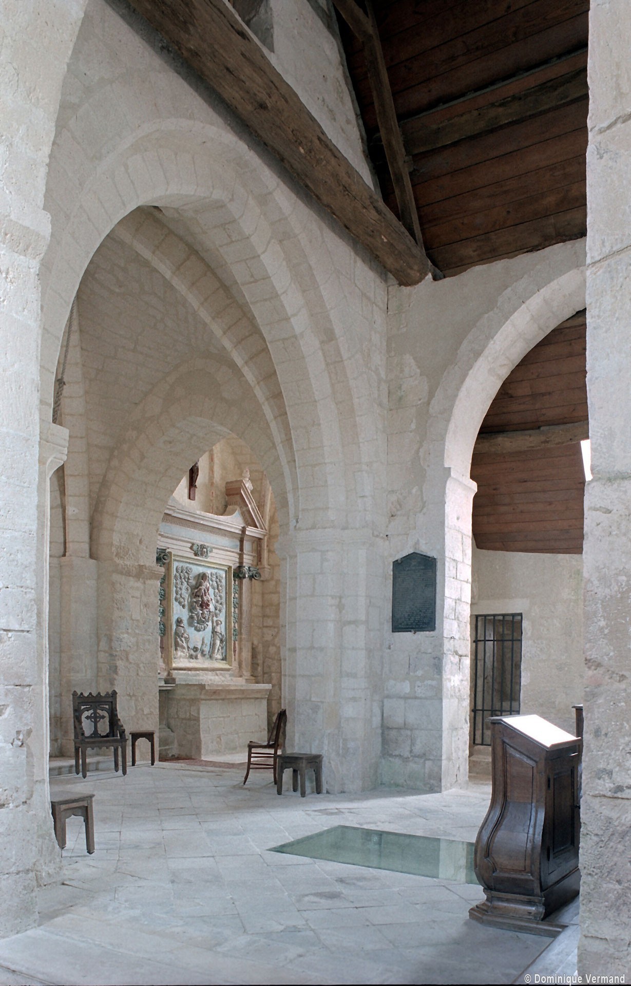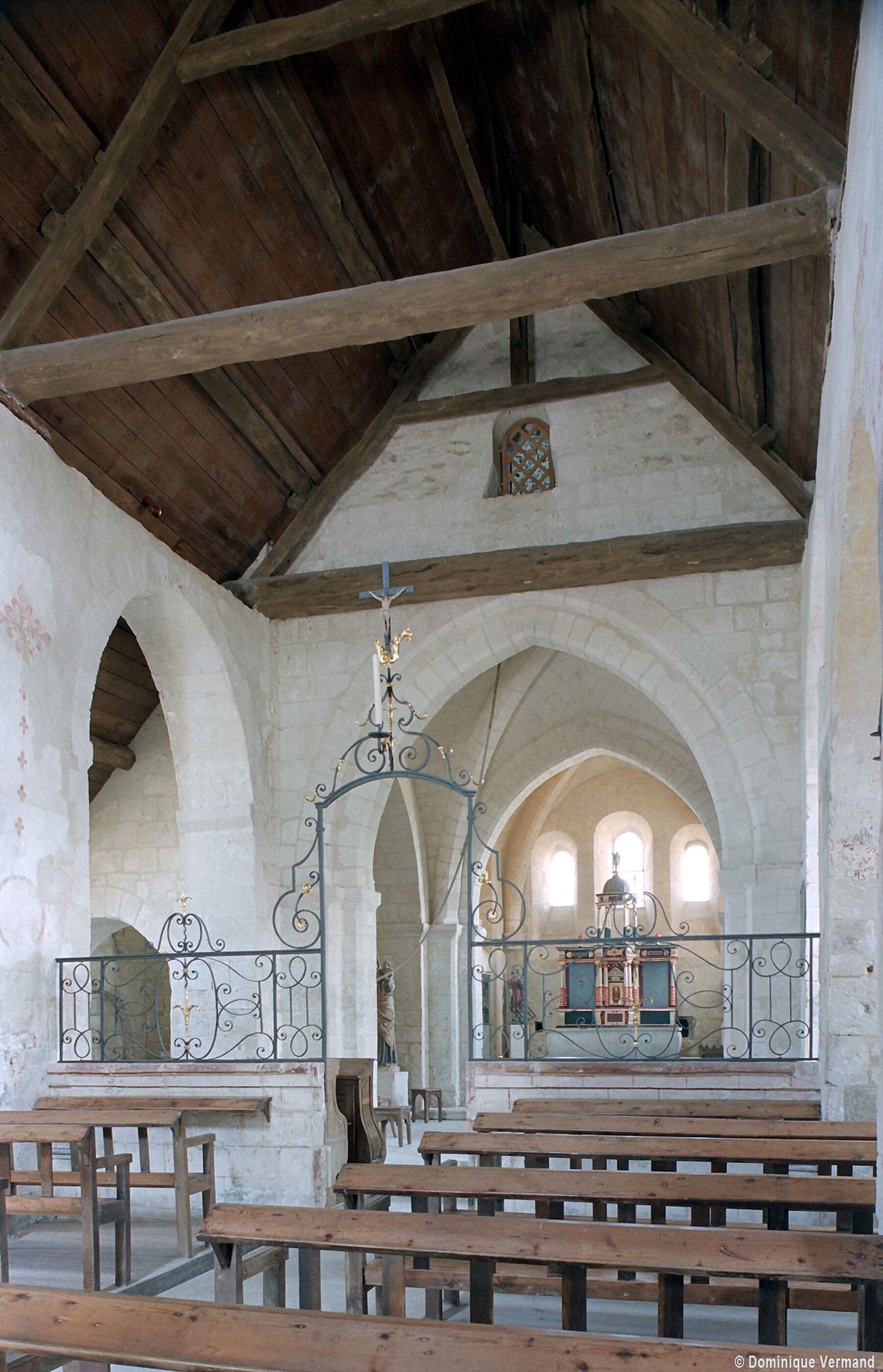Le chœur est d’un grand intérêt en raison des deux voûtes d’ogives qu’il conserve et qui sont contemporaines de celles de Morienval. Les ogives adoptent un profil carré à arêtes chanfreinées, comme dans plusieurs voûtes d’ogives du Beauvaisis de la première moitié du 12ème siècle. Les retombées se font, soit sur des consoles nues, soit sur des dosserets. Le fait que ceux-ci ne soient pas disposés dans l’axe des ogives mais parallèlement aux murs; que les voûtains soient très bombés et que leur appareillage soit réalisé perpendiculairement aux ogives et non aux arcs encadrant la voûte plaide en faveur d’une date de construction dans les années 1130 au plus tard. Le chevet est classiquement percé d’un triplet, d’un très bel effet depuis l’intérieur de l’église.