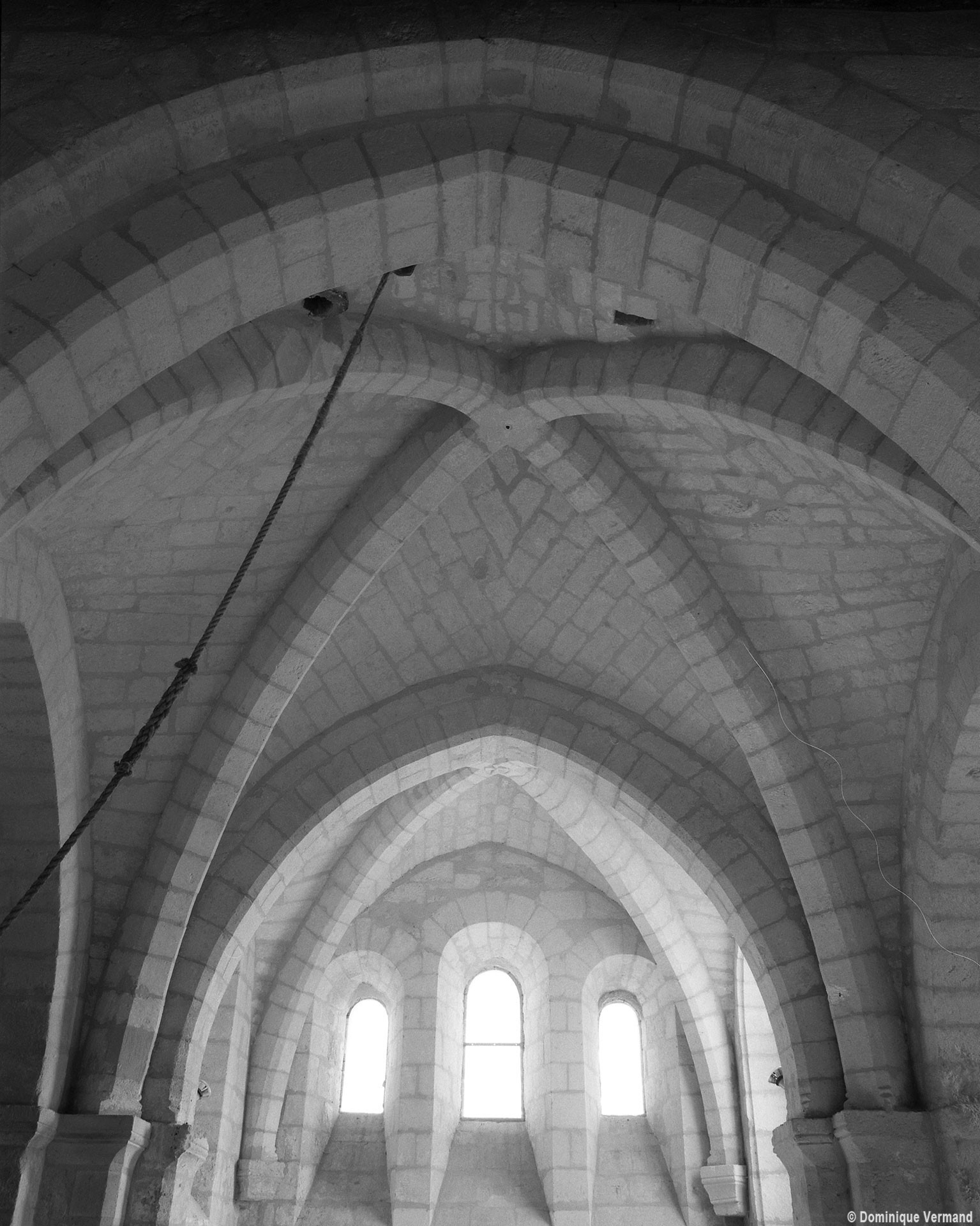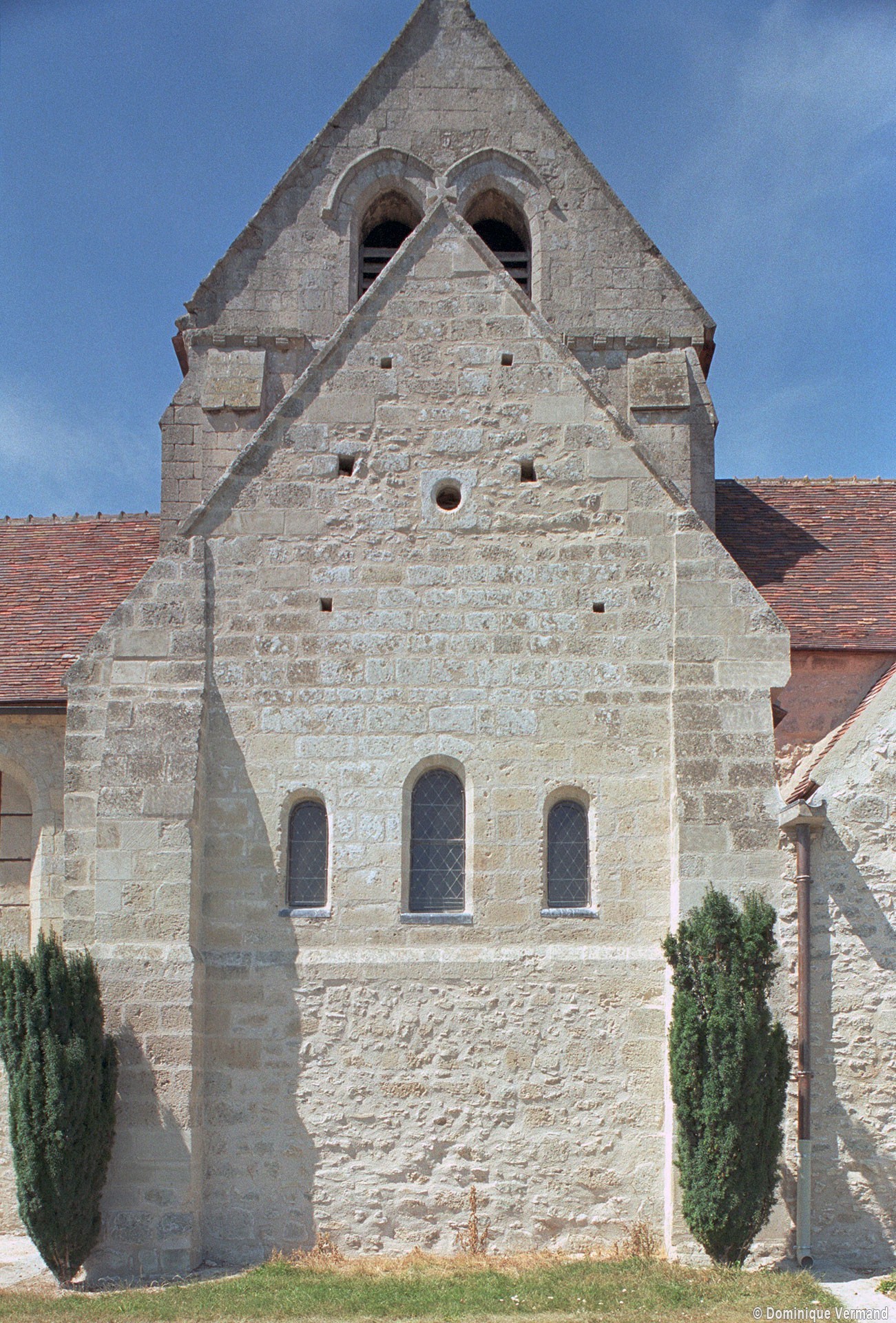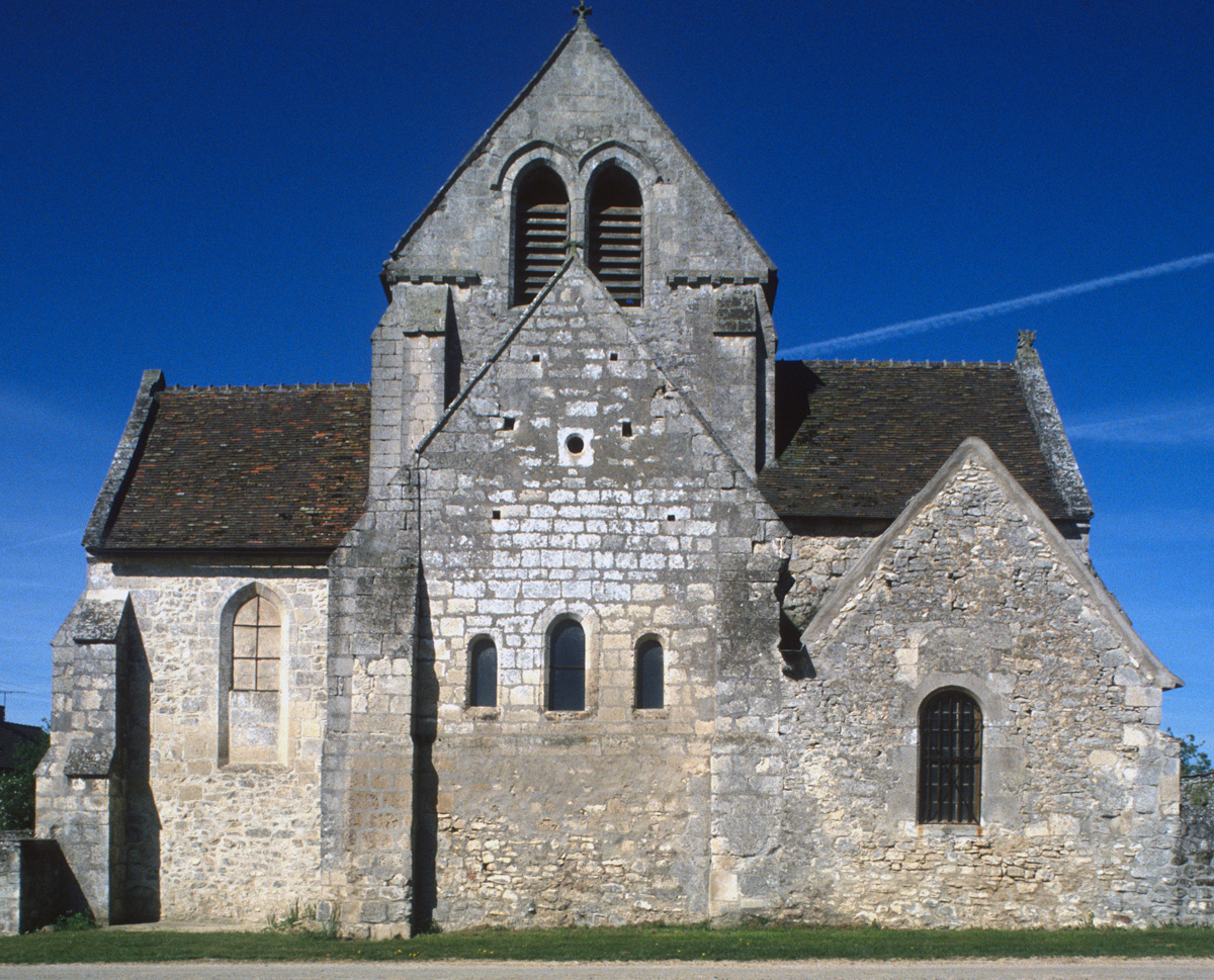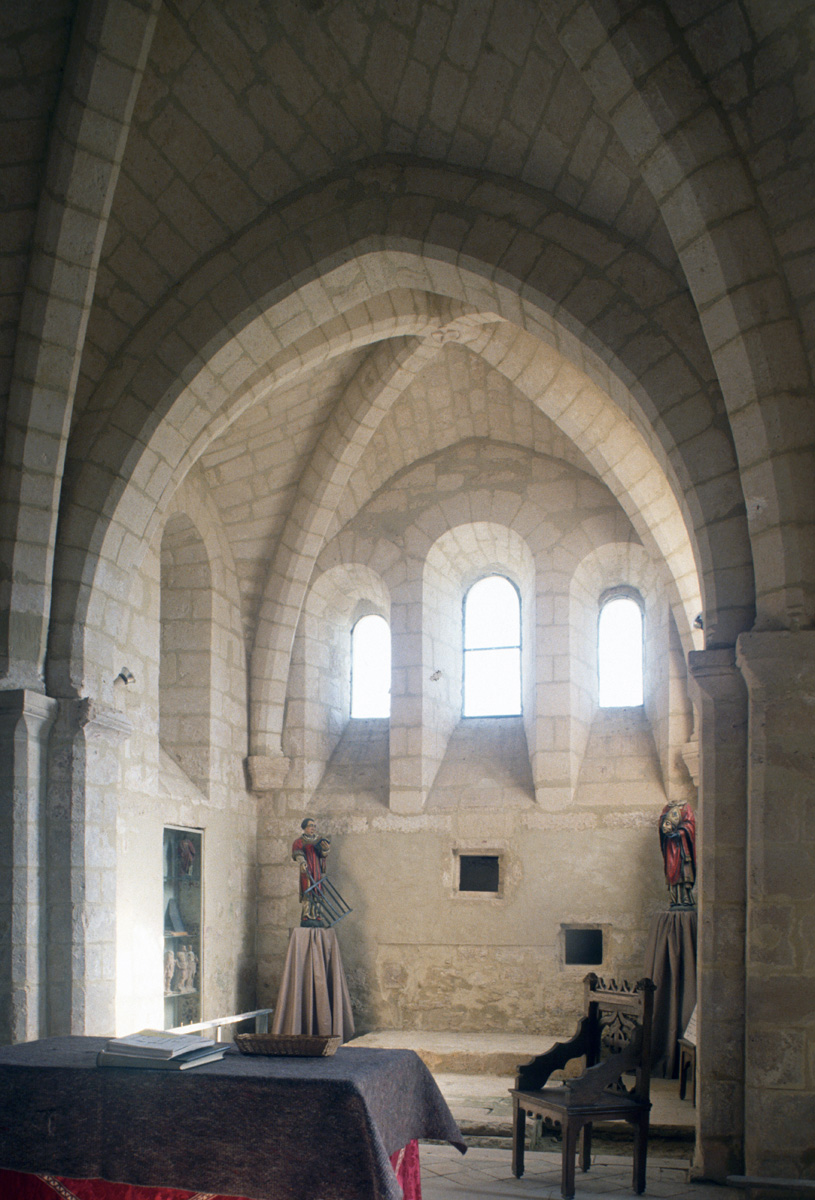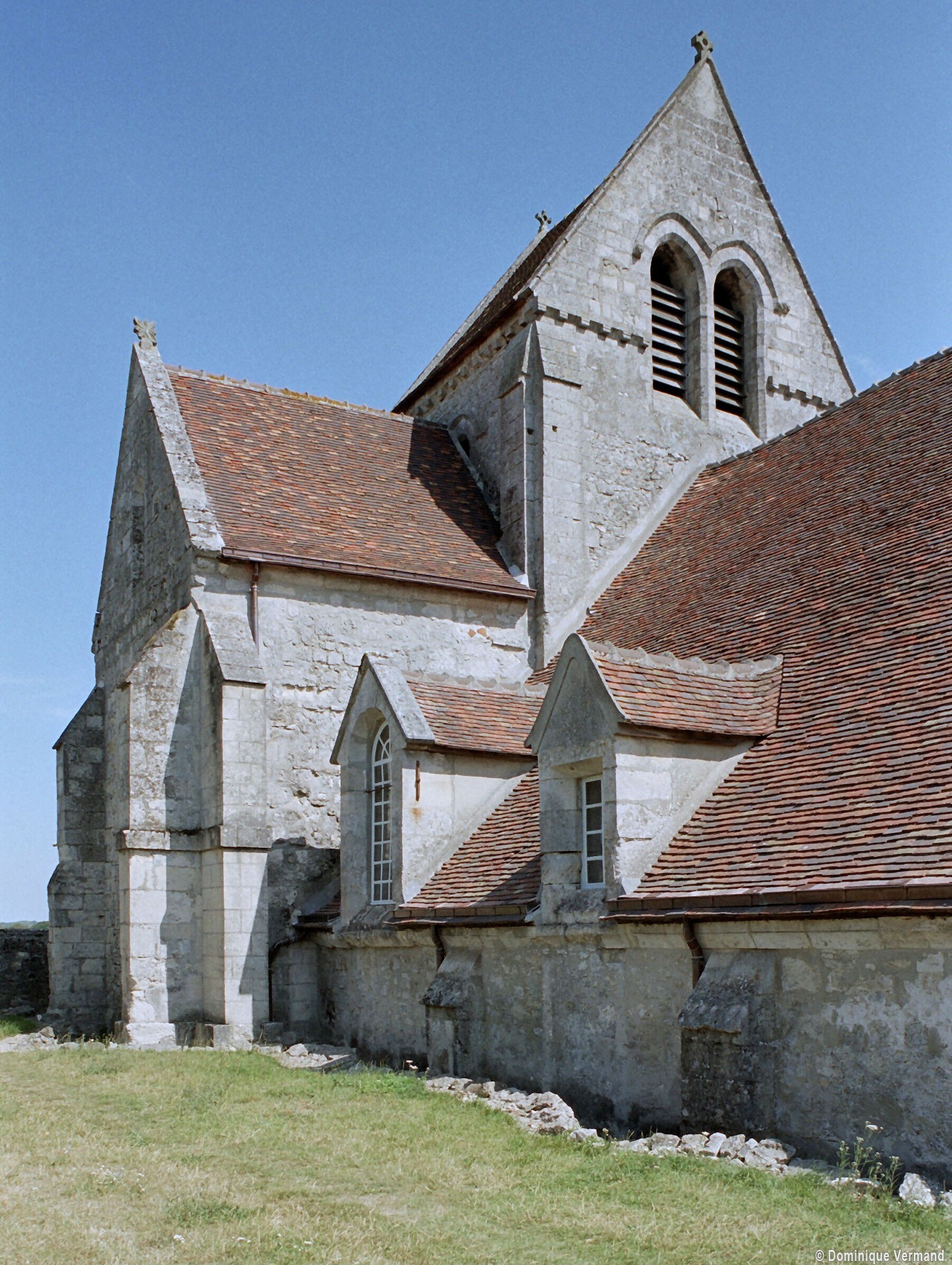 Le chœur est d’un grand intérêt en raison des deux voûtes d’ogives qu’il conserve et qui sont contemporaines de celles de Morienval. Les ogives adoptent un profil carré à arêtes chanfreinées, comme dans plusieurs voûtes d’ogives du Beauvaisis de la première moitié du 12ème siècle. Les retombées se font, soit sur des consoles nues, soit sur des dosserets. Le fait que ceux-ci ne soient pas disposés dans l’axe des ogives mais parallèlement aux murs; que les voûtains soient très bombés et que leur appareillage soit réalisé perpendiculairement aux ogives et non aux arcs encadrant la voûte plaide en faveur d’une date de construction dans les années 1130 au plus tard. Le chevet est classiquement percé d’un triplet, d’un très bel effet depuis l’intérieur de l’église.