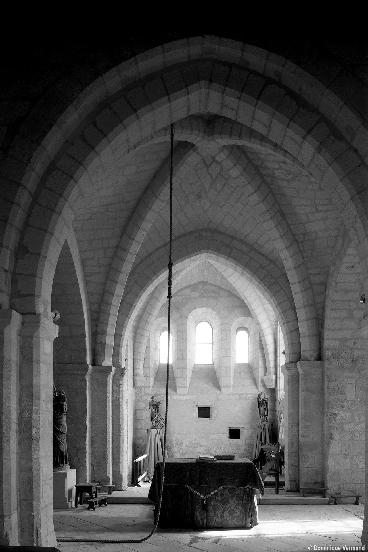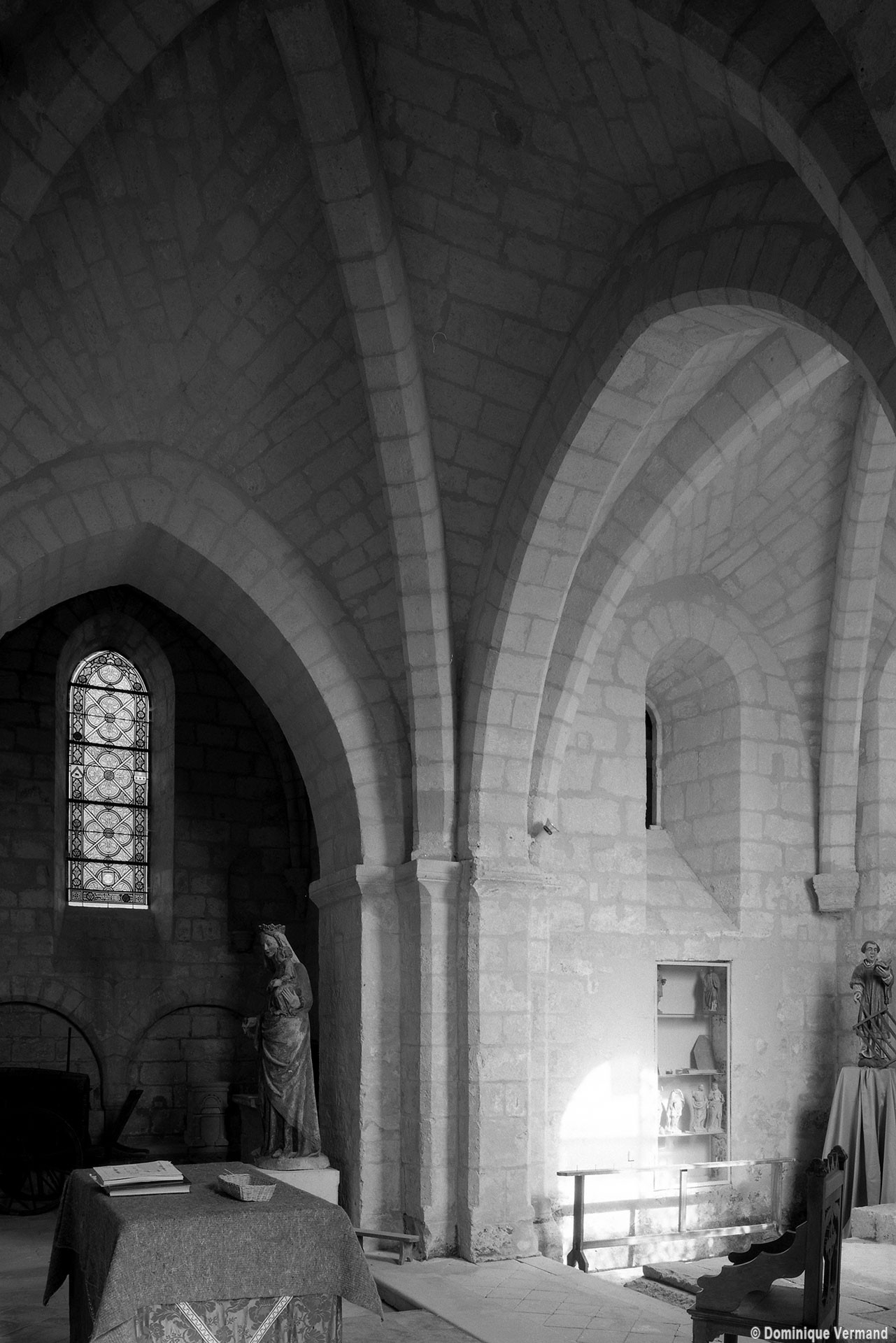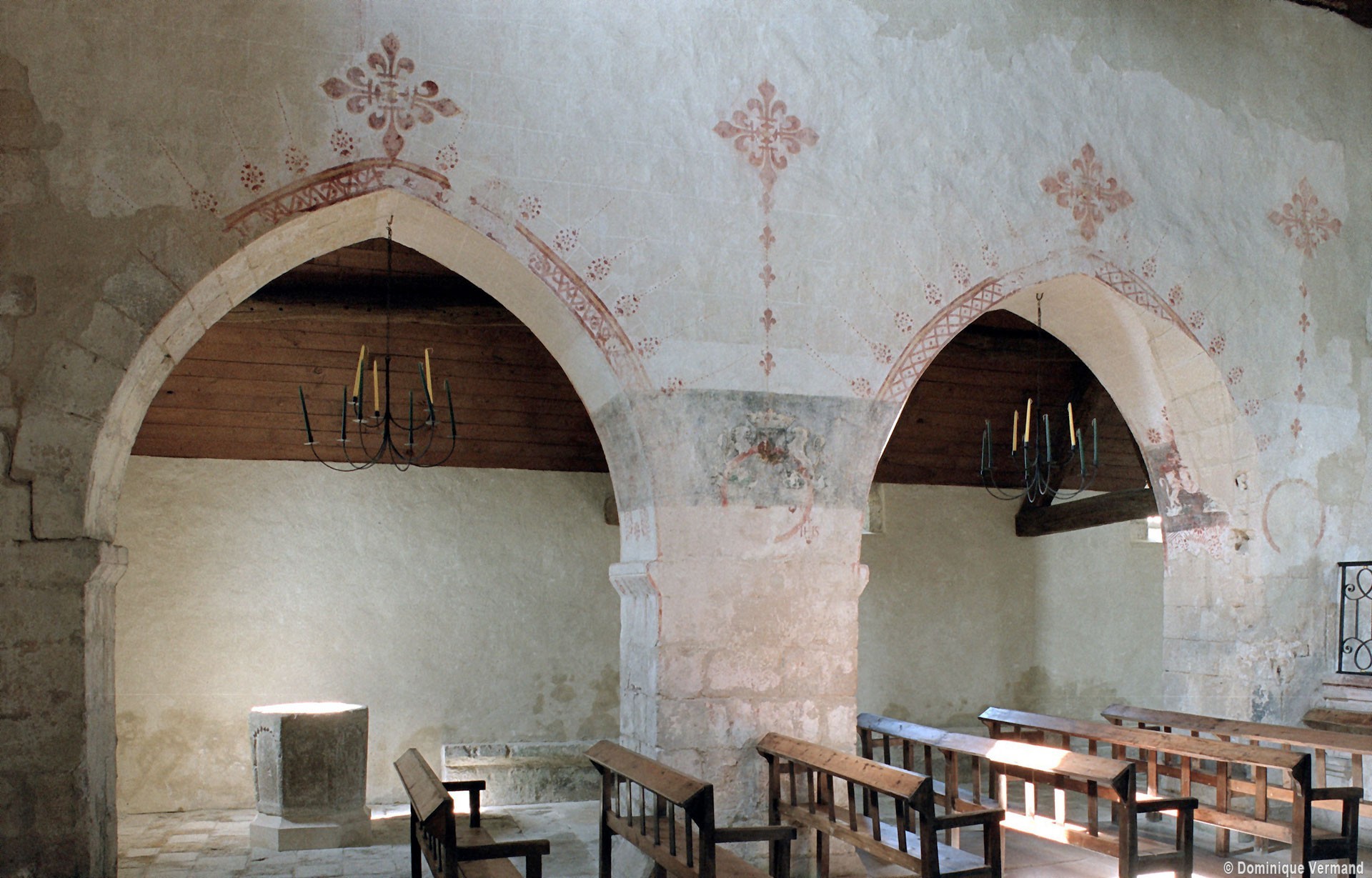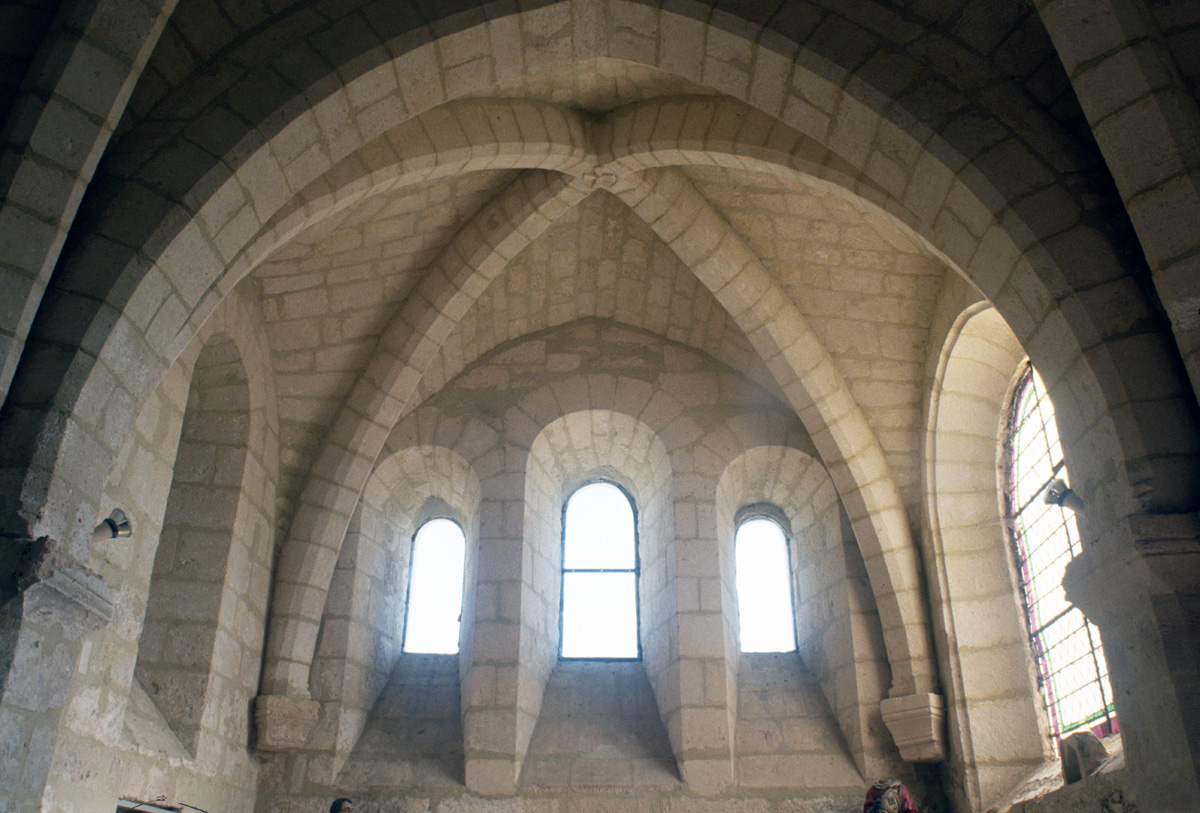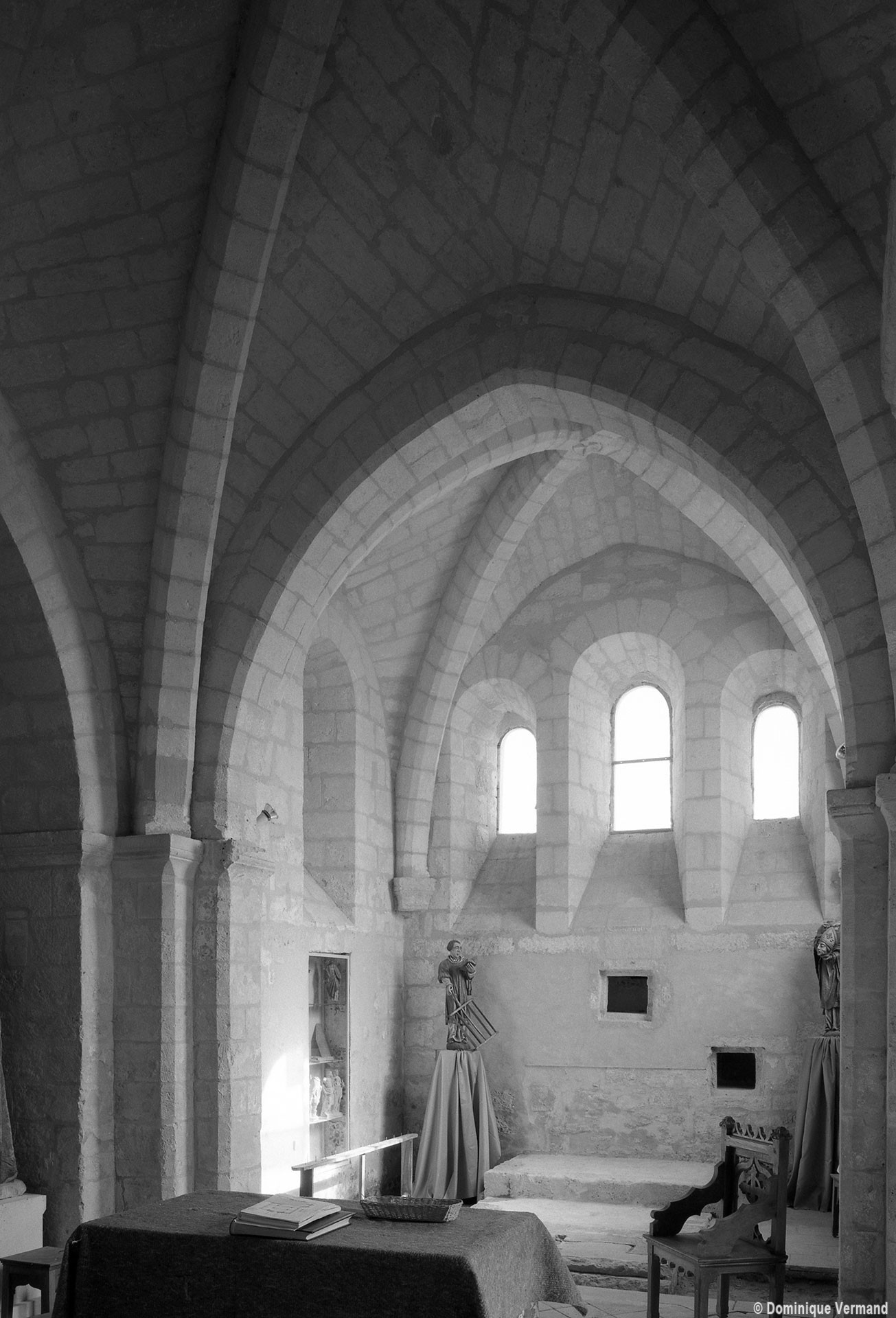 Le chœur est d’un grand intérêt en raison des deux voûtes d’ogives qu’il conserve et qui sont contemporaines de celles de Morienval. Les ogives adoptent un profil carré à arêtes chanfreinées, comme dans plusieurs voûtes d’ogives du Beauvaisis de la première moitié du 12ème siècle. Les retombées se font, soit sur des consoles nues, soit sur des dosserets. Le fait que ceux-ci ne soient pas disposés dans l’axe des ogives mais parallèlement aux murs; que les voûtains soient très bombés et que leur appareillage soit réalisé perpendiculairement aux ogives et non aux arcs encadrant la voûte plaide en faveur d’une date de construction dans les années 1130 au plus tard. Le chevet est classiquement percé d’un triplet, d’un très bel effet depuis l’intérieur de l’église.