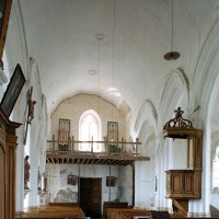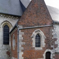 Dans le prolongement des bas-côtés deux chapelles à usage seigneurial ont été construites au 16ème siècle. Celle du sud communique avec le chœur par une large arcade surbaissée. Elle est la seule partie de l’église à avoir conservé sa voûte d’ogives en pierre. La chapelle nord, bâtie en brique, montre encore la petite ouverture qui permettait de voir l’autel. Elle est dotée d’une piscine liturgique et l’on y remarque les traces d’une cheminée. Une porte permettait d’y accéder directement depuis l’extérieur (2005).