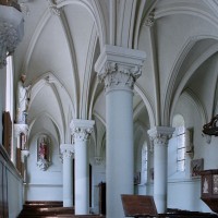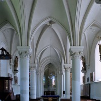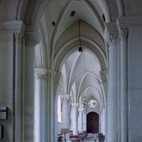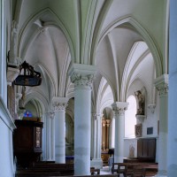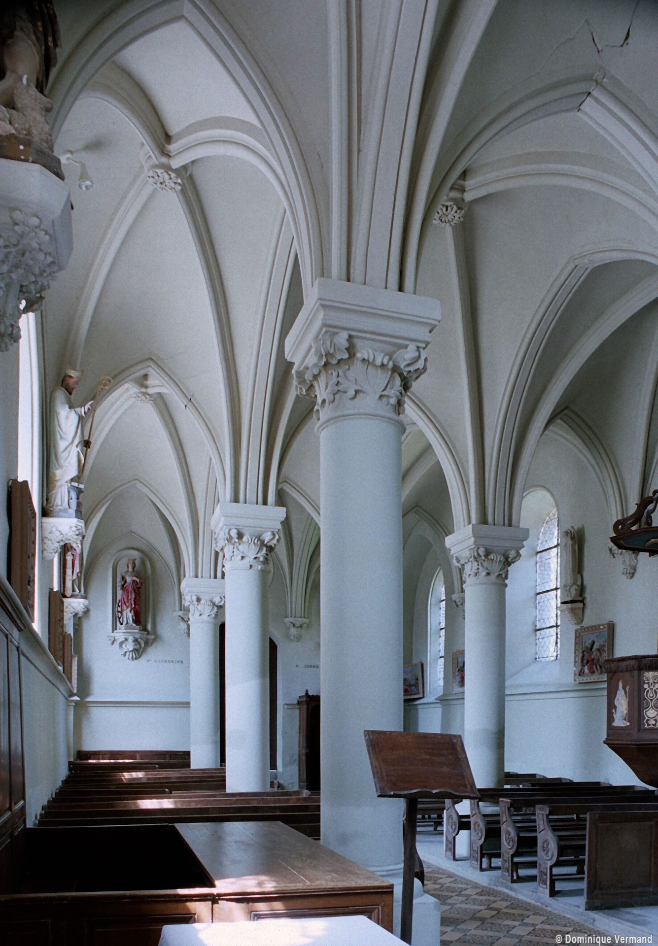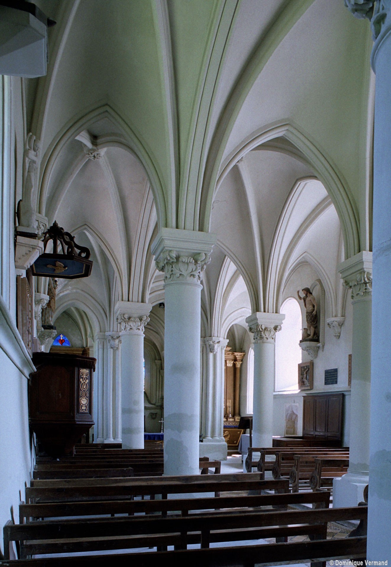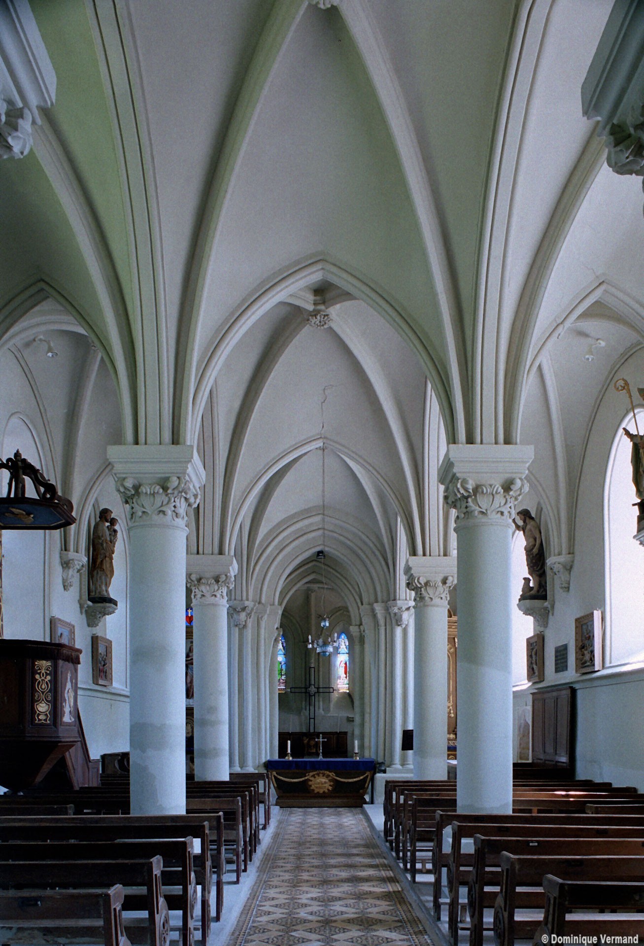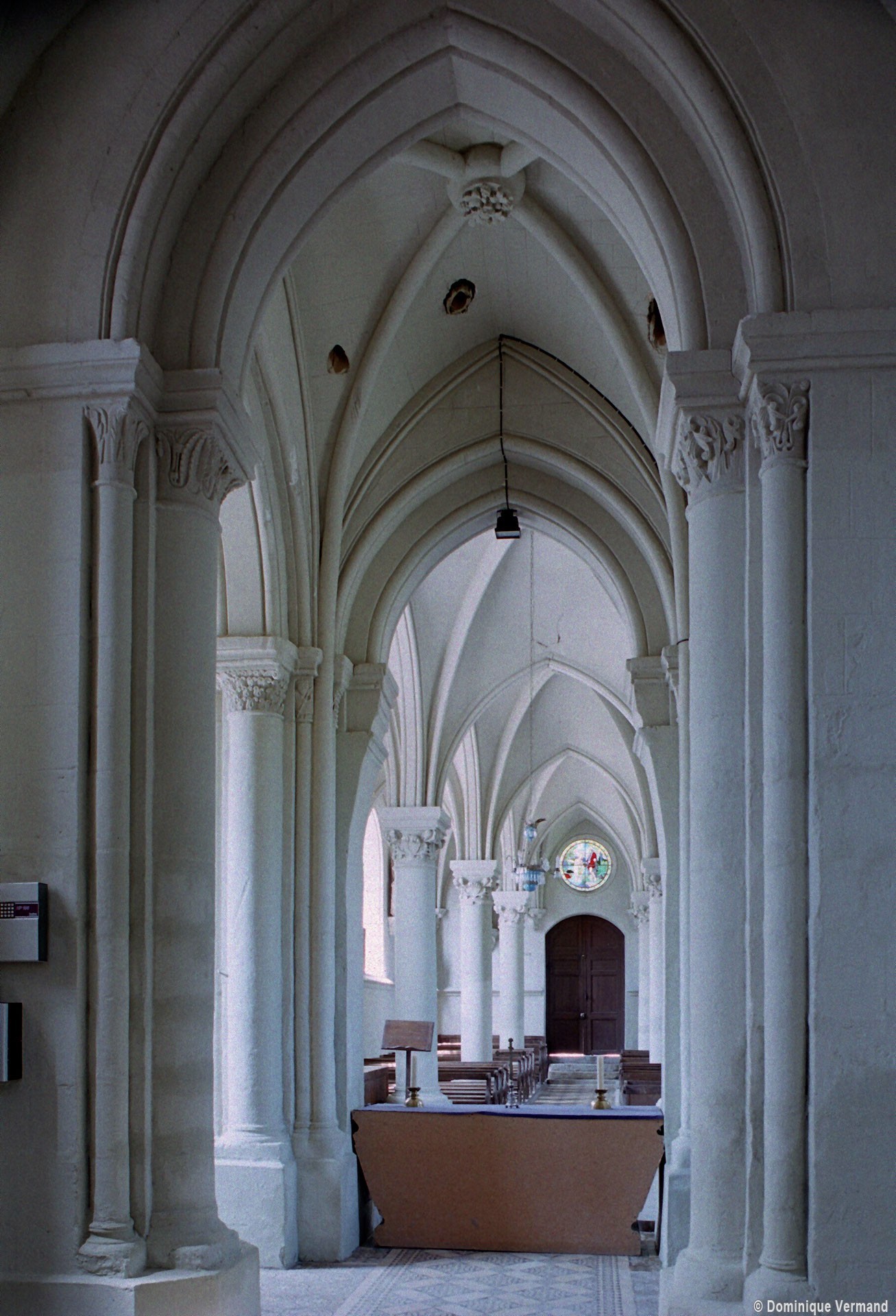 Outre la restauration des parties orientales, le 19ème siècle va doter la nef d’une travée supplémentaire, construite en briques. La nef ainsi rallongée sera alors divisée en trois vaisseaux d’égale hauteur, voûtés d’ogives retombant sur des piles circulaires. L’ensemble ne manque pas d’élégance.