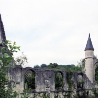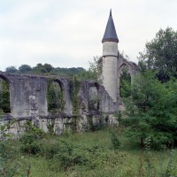 Isolées en lisière du parc du château d’Offémont, les ruines de l’ancien prieuré Sainte-Croix semblent vouées à une dégradation inexorable. Le prieuré avait été fondé en 1331 par Jean 1er de Nesle pour y conserver un fragment de la Vraie Croix. Quatre Célestins de l’abbaye de Saint-Pierre-en-Chastres, en forêt de Compiègne, avaient été appelés pour la circonstance. Le prieuré avait été richement doté par les seigneurs d’Offémont, qui s’y réservaient leur sépulture. Le duc d’Orléans y fonde une chapelle en 1403 et le prieuré bénéficie également, à cette époque, des libéralités de Gérard d’Arthies, archevêque de Besançon, seigneur de Moyencourt. Le prieuré disparaît en 1779.