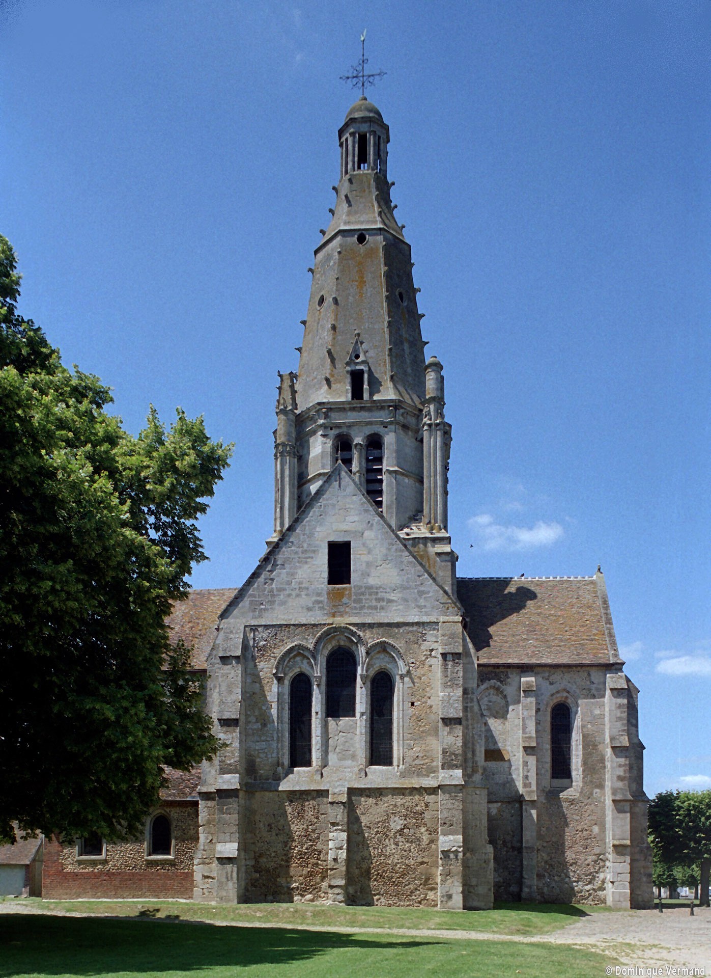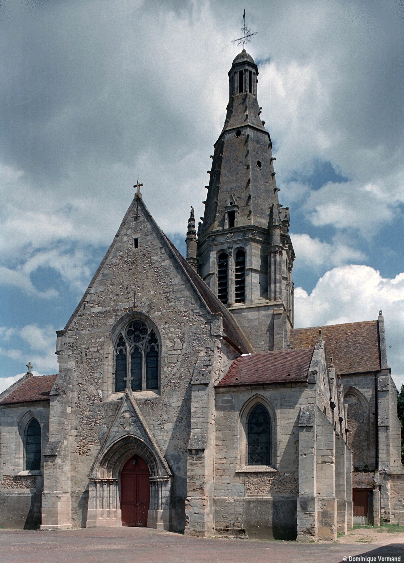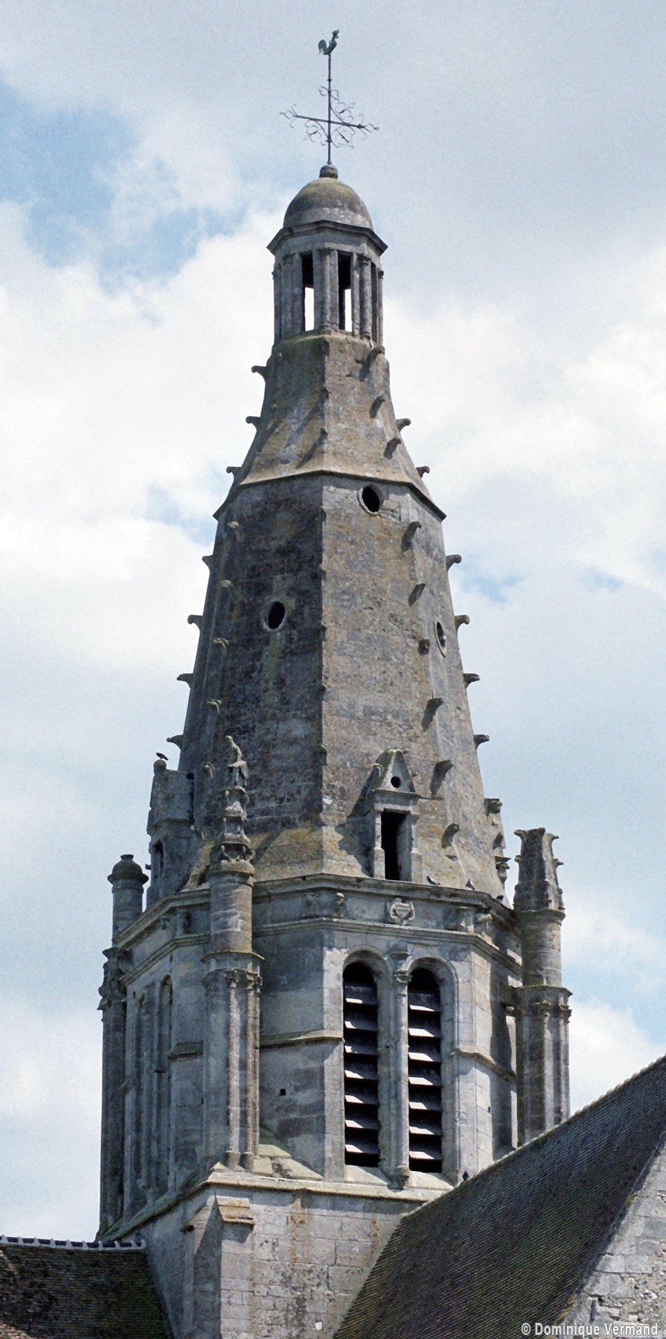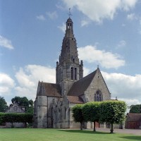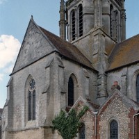 Après la Guerre de Cent ans, l’église fera l’objet d’une reprise totale de sa croisée, dotée désormais de quatre gros piliers circulaires. L’un porte la date de 1450, mais la construction du clocher n’interviendra qu’un siècle plus tard car il s’agit d’une œuvre de style pleinement renaissance, bien que sa conception reste de tradition gothique. Des pinacles de plan circulaire et flanqués de minces colonnettes assurent en effet la transition entre la souche carrée et l’étage octogonal du beffroi tandis que des crochets garnissent les arêtes de la flèche, qui paraît comme brisée dans son élan et a peut-être fait l’objet d’un changement de parti en cours de construction. Pour le reste, les baies en plein cintre, la frise décorée de personnages qui court à la naissance de la flèche et le lanternon qui couronne celle-ci sont bien de la Renaissance. Après avoir fait l’objet d’un voûtement durant la seconde moitié du 15ème siècle, la nef recevra des bas-côtés de style gothique tardif au 19ème siècle, acquérant ainsi son visage actuel.