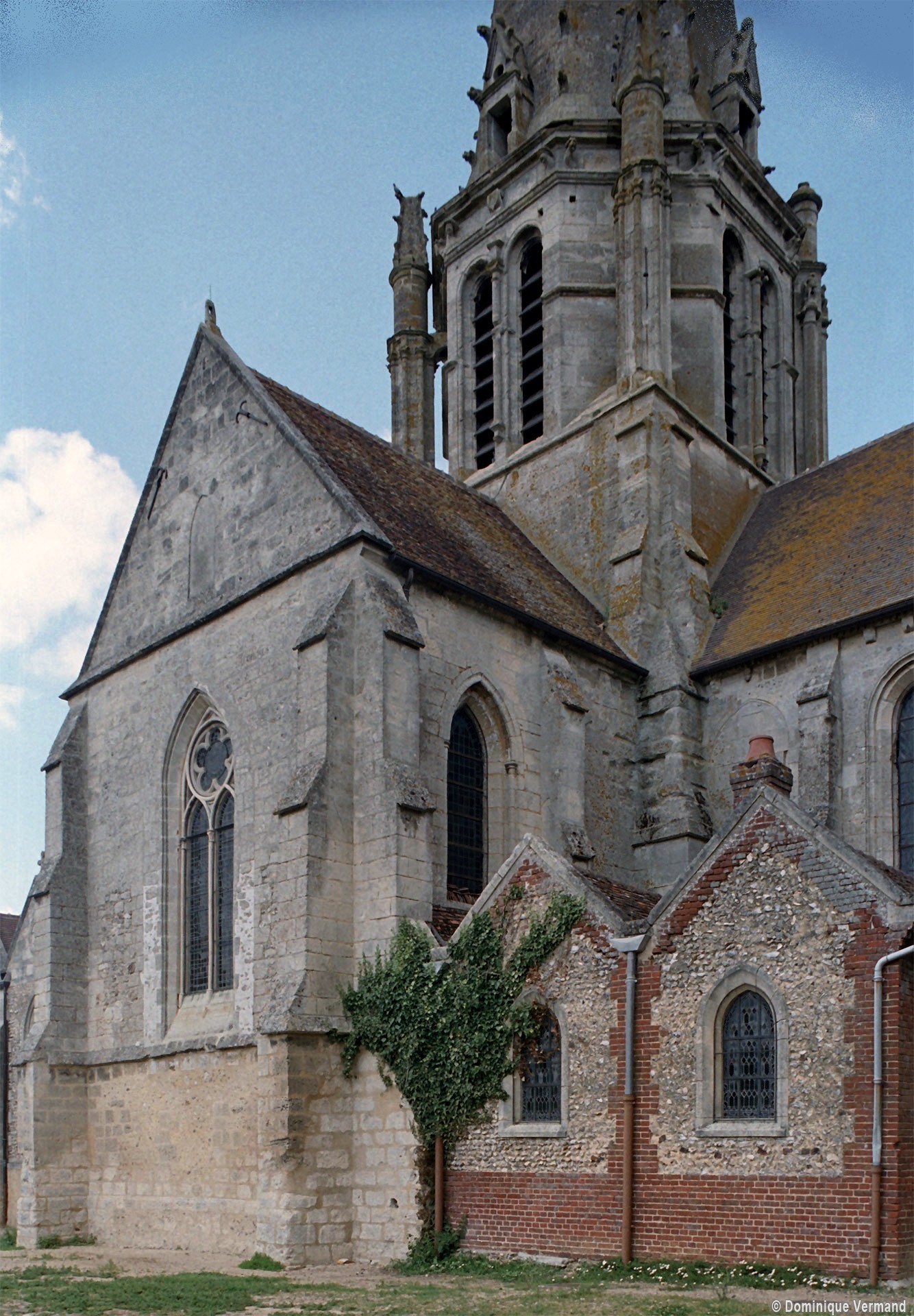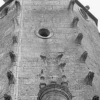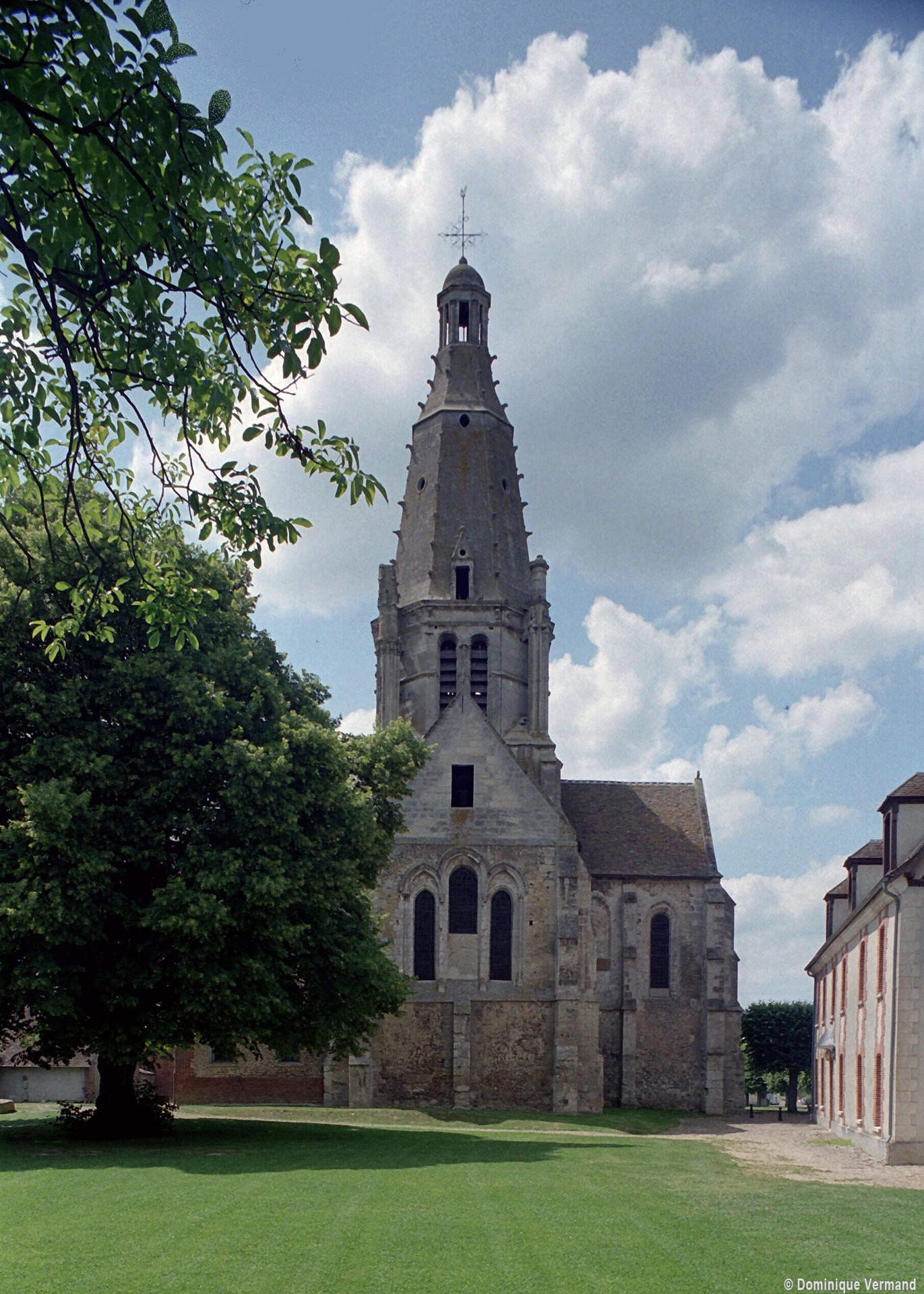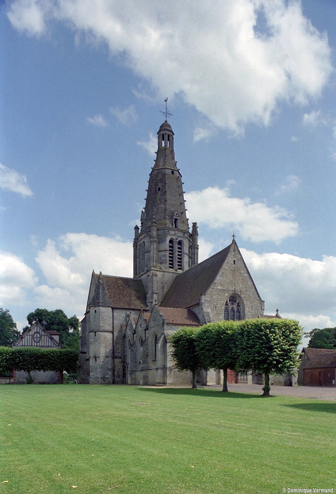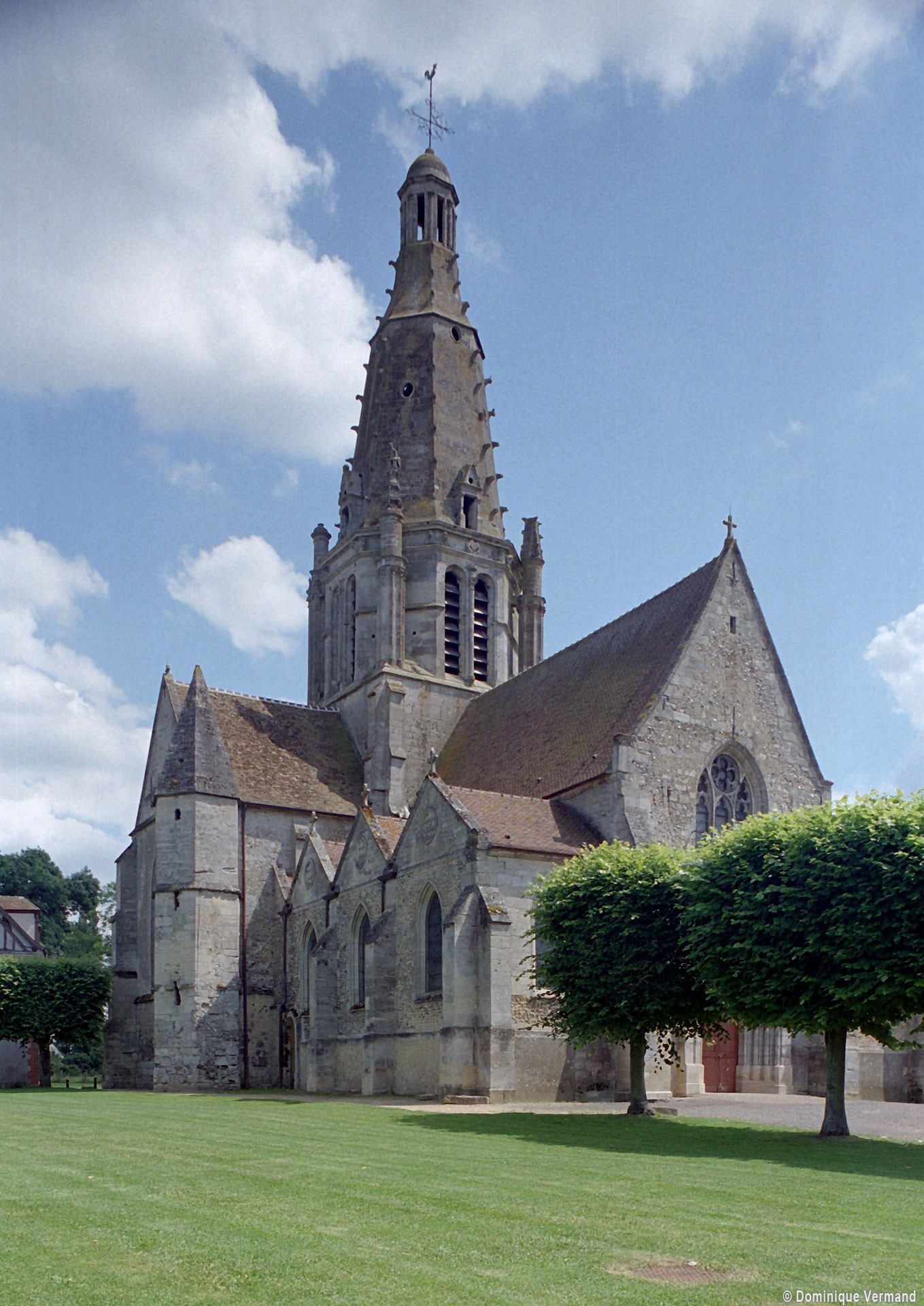 Après la Guerre de Cent ans, l’église fera l’objet d’une reprise totale de sa croisée, dotée désormais de quatre gros piliers circulaires. L’un porte la date de 1450, mais la construction du clocher n’interviendra qu’un siècle plus tard car il s’agit d’une œuvre de style pleinement renaissance, bien que sa conception reste de tradition gothique. Des pinacles de plan circulaire et flanqués de minces colonnettes assurent en effet la transition entre la souche carrée et l’étage octogonal du beffroi tandis que des crochets garnissent les arêtes de la flèche, qui paraît comme brisée dans son élan et a peut-être fait l’objet d’un changement de parti en cours de construction. Pour le reste, les baies en plein cintre, la frise décorée de personnages qui court à la naissance de la flèche et le lanternon qui couronne celle-ci sont bien de la Renaissance. Après avoir fait l’objet d’un voûtement durant la seconde moitié du 15ème siècle, la nef recevra des bas-côtés de style gothique tardif au 19ème siècle, acquérant ainsi son visage actuel.