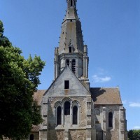 Dédiée aux martyrs soissonnais saint Crépin et saint Crépinien, l’église se signale de loin par la haute et insolite silhouette de son clocher. C’est un édifice d’un grand intérêt, à l’histoire assez complexe. Son plan actuel comporte un chœur à chevet plat, un transept débordant avec clocher sur la croisée et une nef avec bas-côtés. Il est le résultat d’une reconstruction de l’église à partir de la fin du 12ème siècle, avec une possible réutilisation d’une nef unique antérieure.