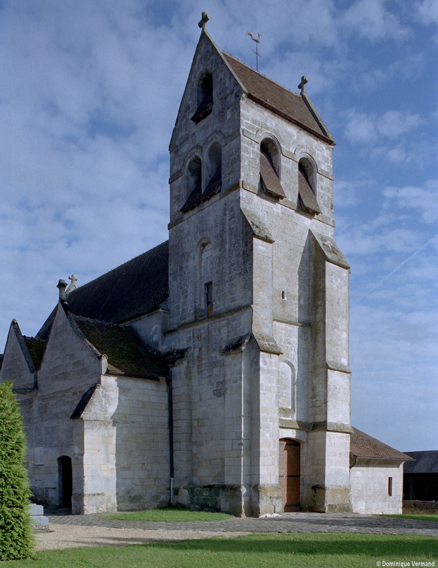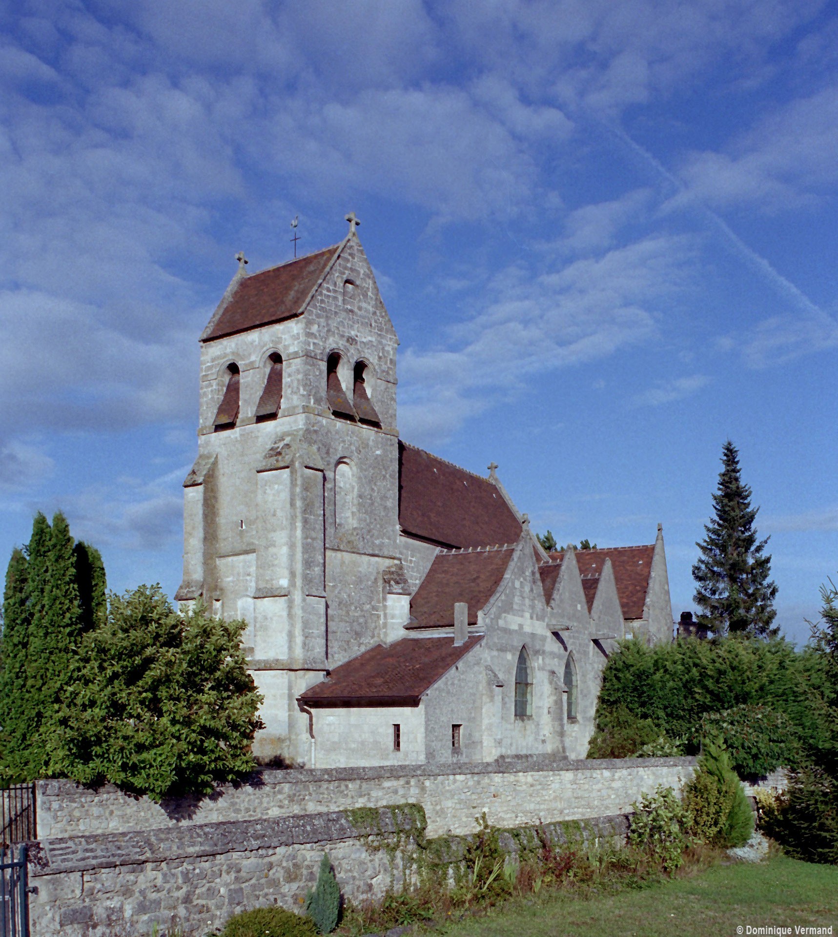 Presque totalement reconstruite au 16ème siècle, l’église Saint-Etienne a conservé une intéressante abside du second quart du 12ème siècle, bien restaurée après les dommages subis lors de la Guerre 14-18. Très simple à l’intérieur, où elle est couverte d’une voûte en cul-de-four, cette abside est remarquablement ouvragée à l’extérieur et constitue un bon exemple d’architecture romane régionale. Elle est épaulée par deux contreforts semi-circulaires terminés en cône allongé et par une petite boule. Un bandeau continu richement travaillé et garni d’étoiles sert d’appui aux fenêtres. Formées de deux rangs de claveaux et soulignées par une moulure biseautée, les trois fenêtres sont garnies de colonnettes avec chapiteaux cubiques, pour la plupart refaits. Au-dessus règne une très belle corniche beauvaisine dont les modillons sont sculptés de personnages grossiers, de têtes d’animaux ou de moulures diverses.