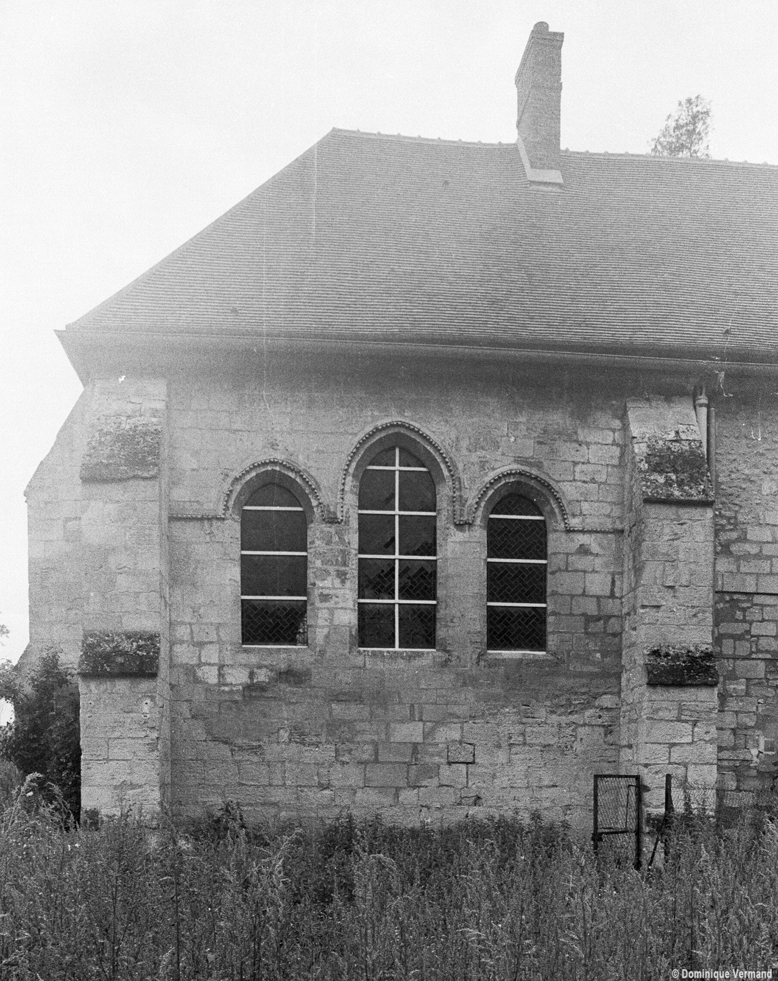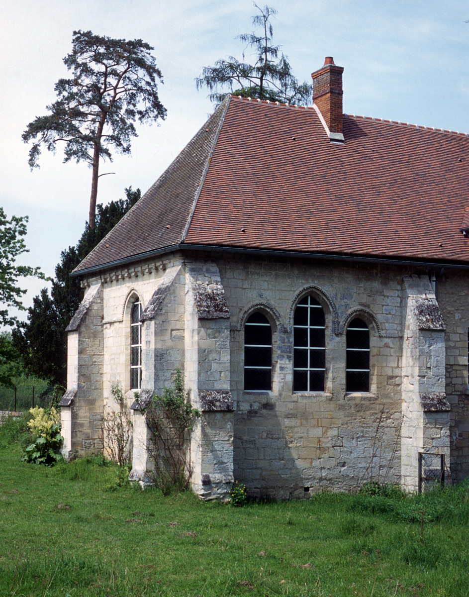 Avec son chevet plat éclairé par un triplet souligné par une moulure à pointes de diamant, il apparaît comme la reproduction réduite et contemporaine (années 1220) de celui de l’abbatiale. Une corniche à modillons orne le mur latéral sud, seul visible aujourd’hui. L’intérieur, privé de sa voûte, n’a plus d’intérêt (2001).
