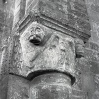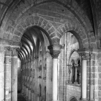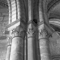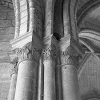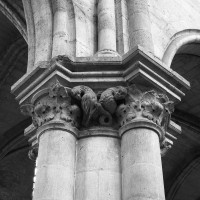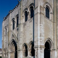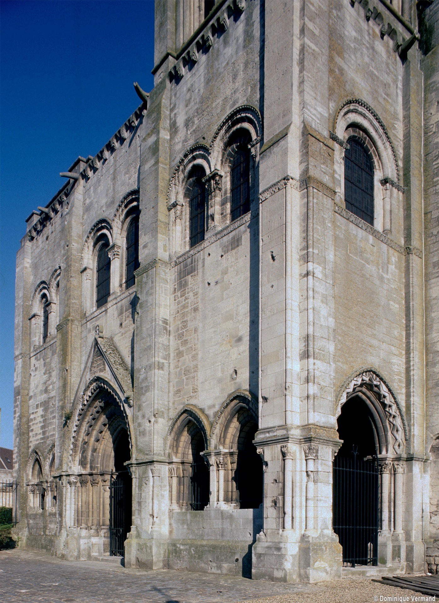 C’est dans les années 1140 que cette première église romane sera dotée d’un narthex monumental, profond d’une travée et constitué de trois vaisseaux, préludant à une reconstruction totale. Son organisation générale – un rez-de-chaussée surmonté d’un étage de tribune et de deux tours symétriques (une seule fut construite) s’inspire de la façade contemporaine de Saint-Denis mais aussi de certains porches d’églises bourguignonnes, clunisiennes elles aussi (Paray-le-Monial, Perrecy-les-Forges).