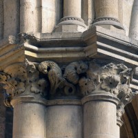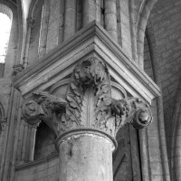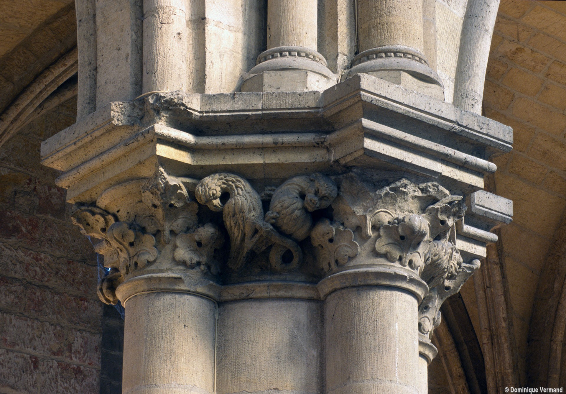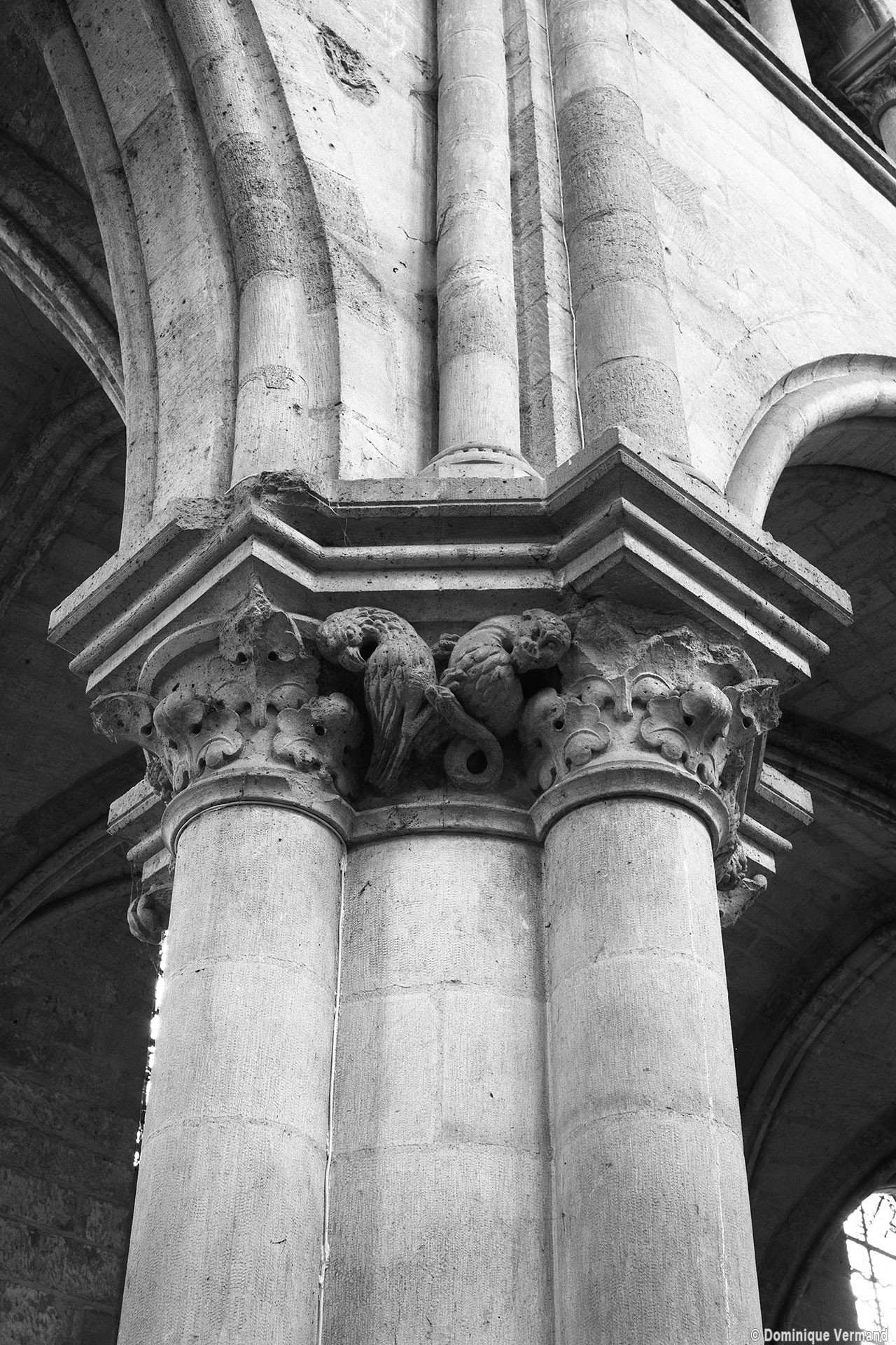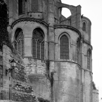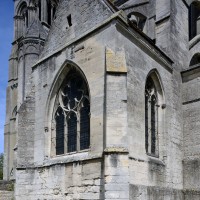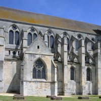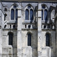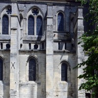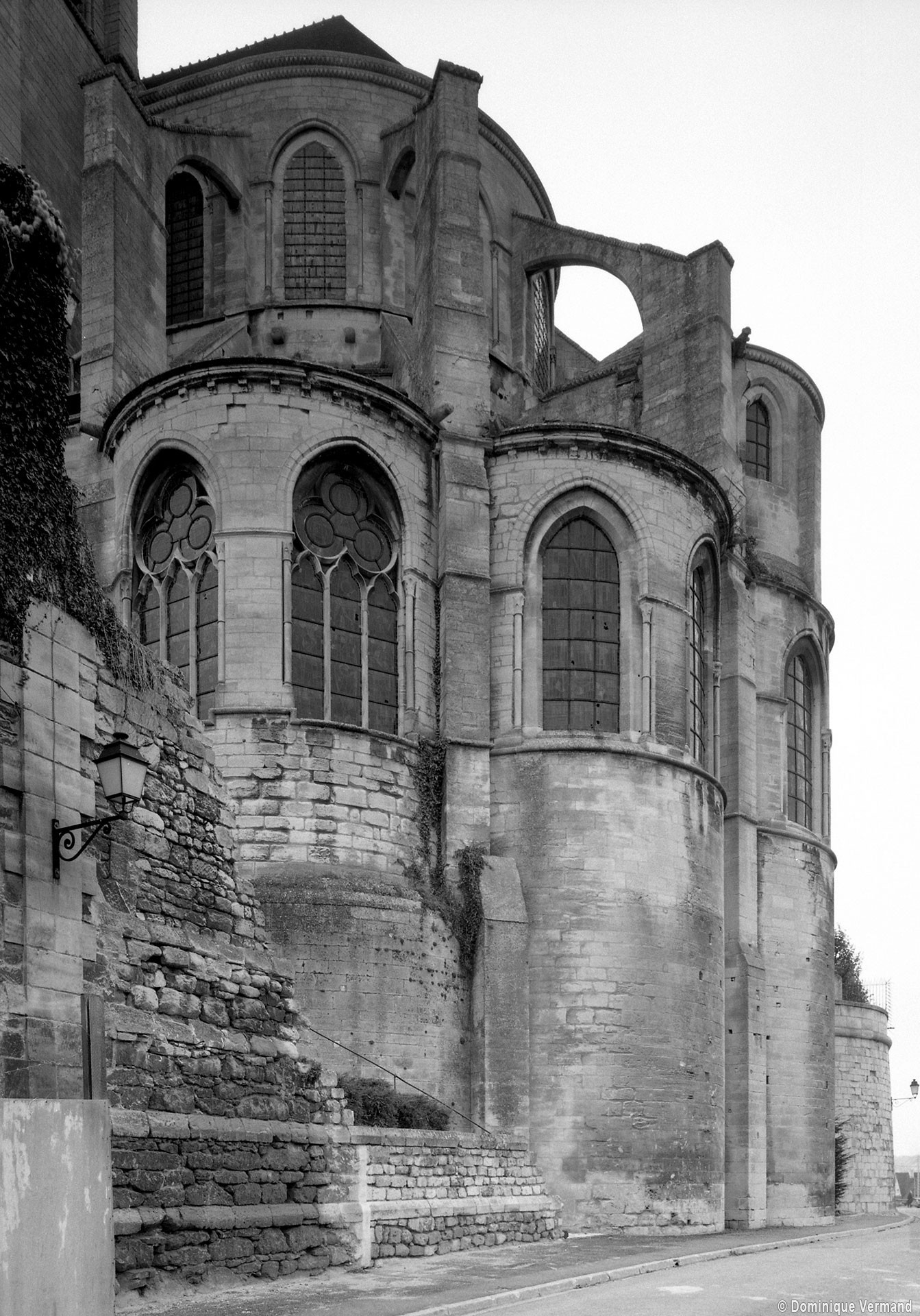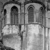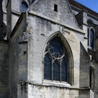 Construites en premier au-dessus d’un impressionnant soubassement que nécessitait la forte pente du terrain, les chapelles rayonnantes, d’un grand raffinement, s’inspirent directement de celles de Saint-Denis (1144) et de Senlis (vers 1155). Le thème de la feuille d’acanthe, omniprésent dans la sculpture des chapiteaux, fait également référence au répertoire décoratif de ces deux monuments précurseurs du gothique.