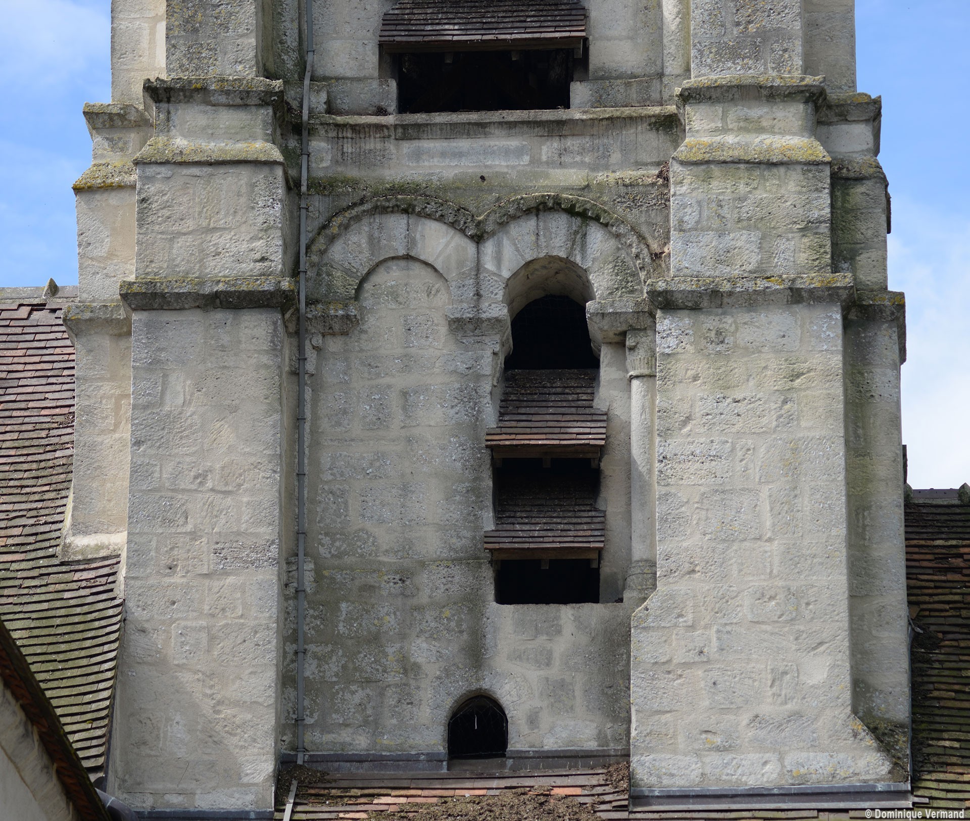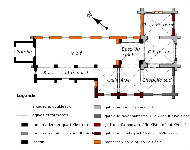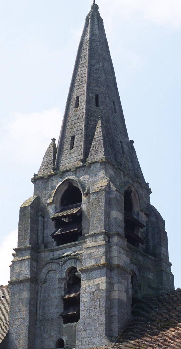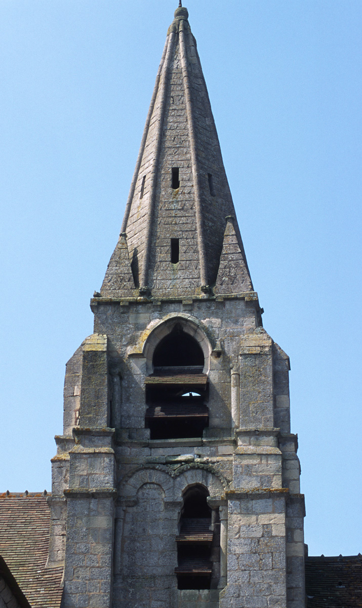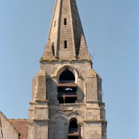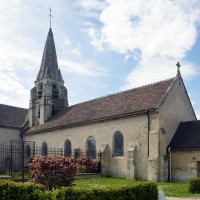Une église romane existait à la fin du 11ème siècle. Il en subsiste la façade avec son petit portail en plein cintre et le clocher, remanié par la suite. A l’intérieur, la base a conservé sa voûte d’arêtes et un tailloir décoré de triangles gravés. A l’extérieur, le premier étage est encore bien lisible, avec ses baies en plein cintre garnies de colonnettes et de billettes. Il est facile de voir que ce clocher roman possédait un second étage comme l’attestent les colonnettes de baies encore en place. Ce clocher appartient à la même famille que celui de Nogent-sur-Oise, le plus spectaculaire de tous. Il sera modifié une première fois vers le milieu du 12ème siècle avec la construction de la flèche octogonale en pierre flanquée de petites pyramides d’angle (on peut en voir de nombreux exemples dans le Valois tout proche), puis au 15ème siècle avec le percement de nouvelles baies au deuxième étage.