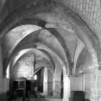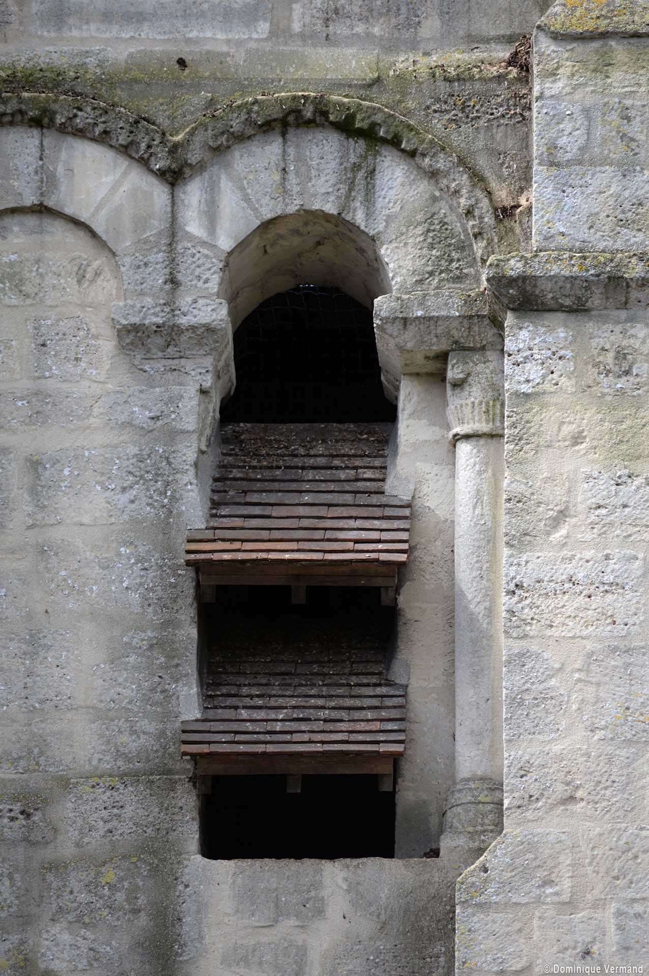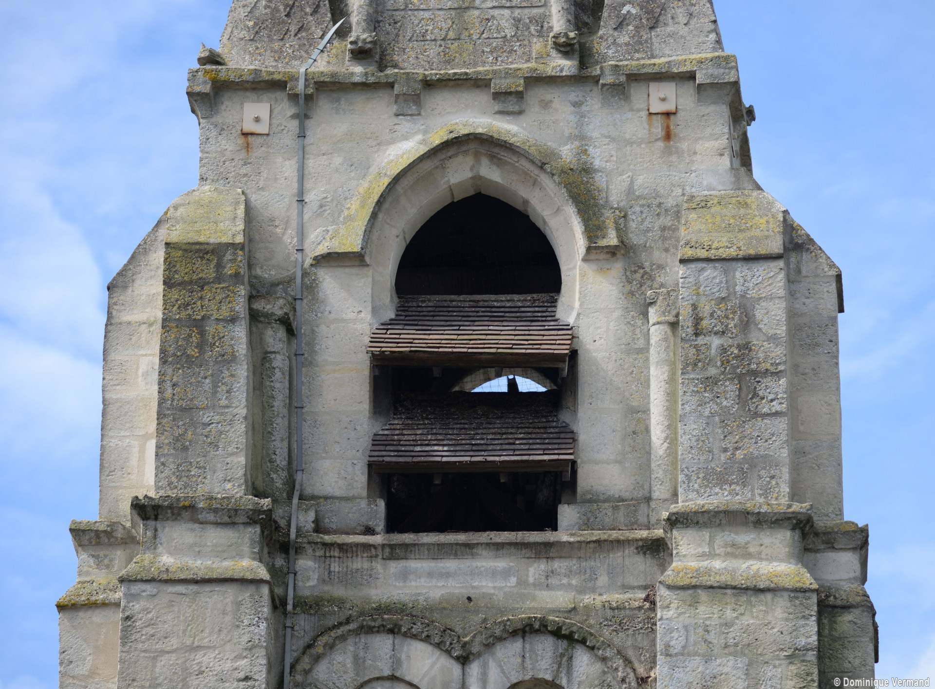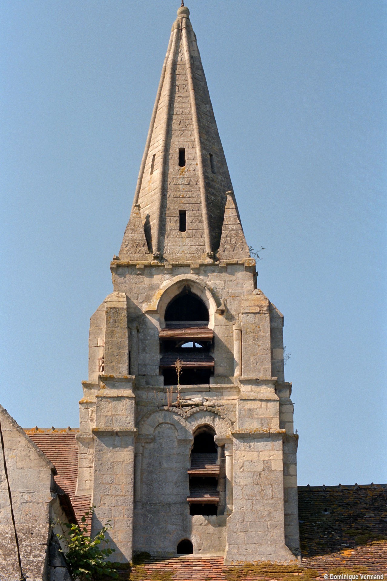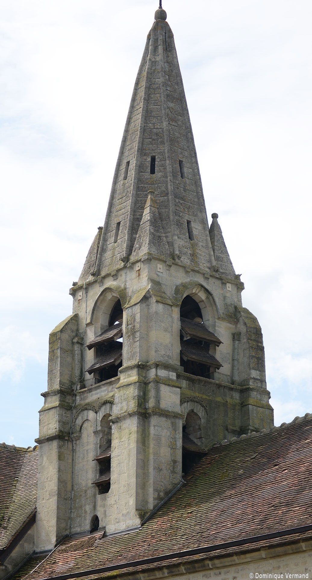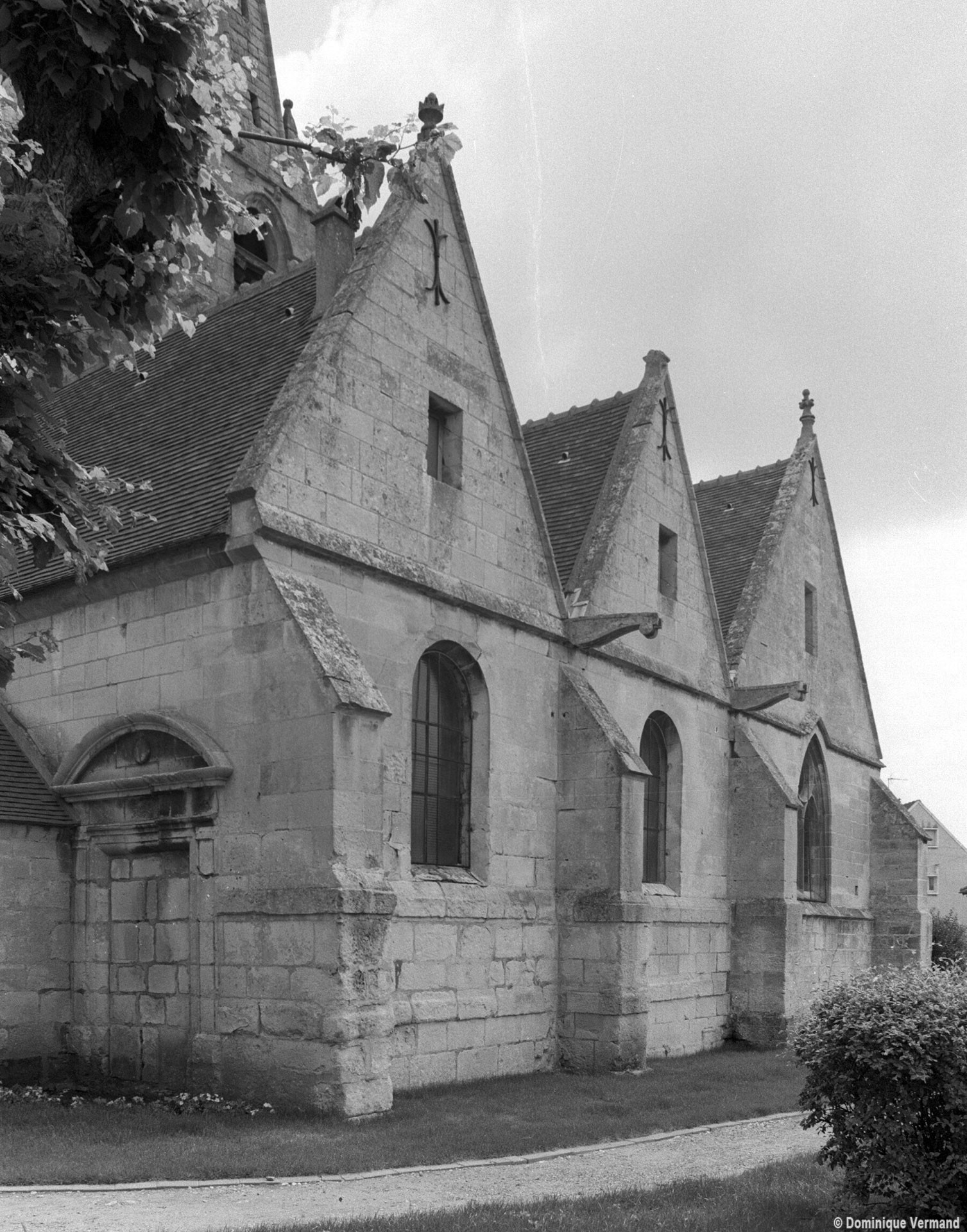 Au 15ème siècle, enfin, la chapelle sud est prolongée de deux travées vers l’ouest. A l’extérieur, l’adoption de deux toitures en bâtière bien individualisées marque le souci d’une continuité visuelle par rapport à la chapelle existante, continuité qui se retrouve dans le bandeau soulignant la base des pignons et dans l’ouverture rectangulaire ajourant ceux-ci (2002).