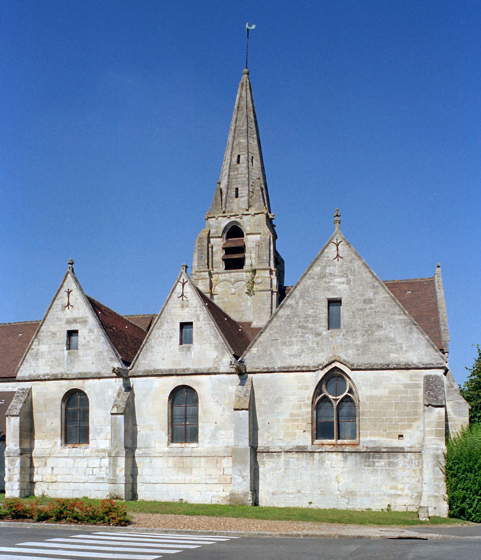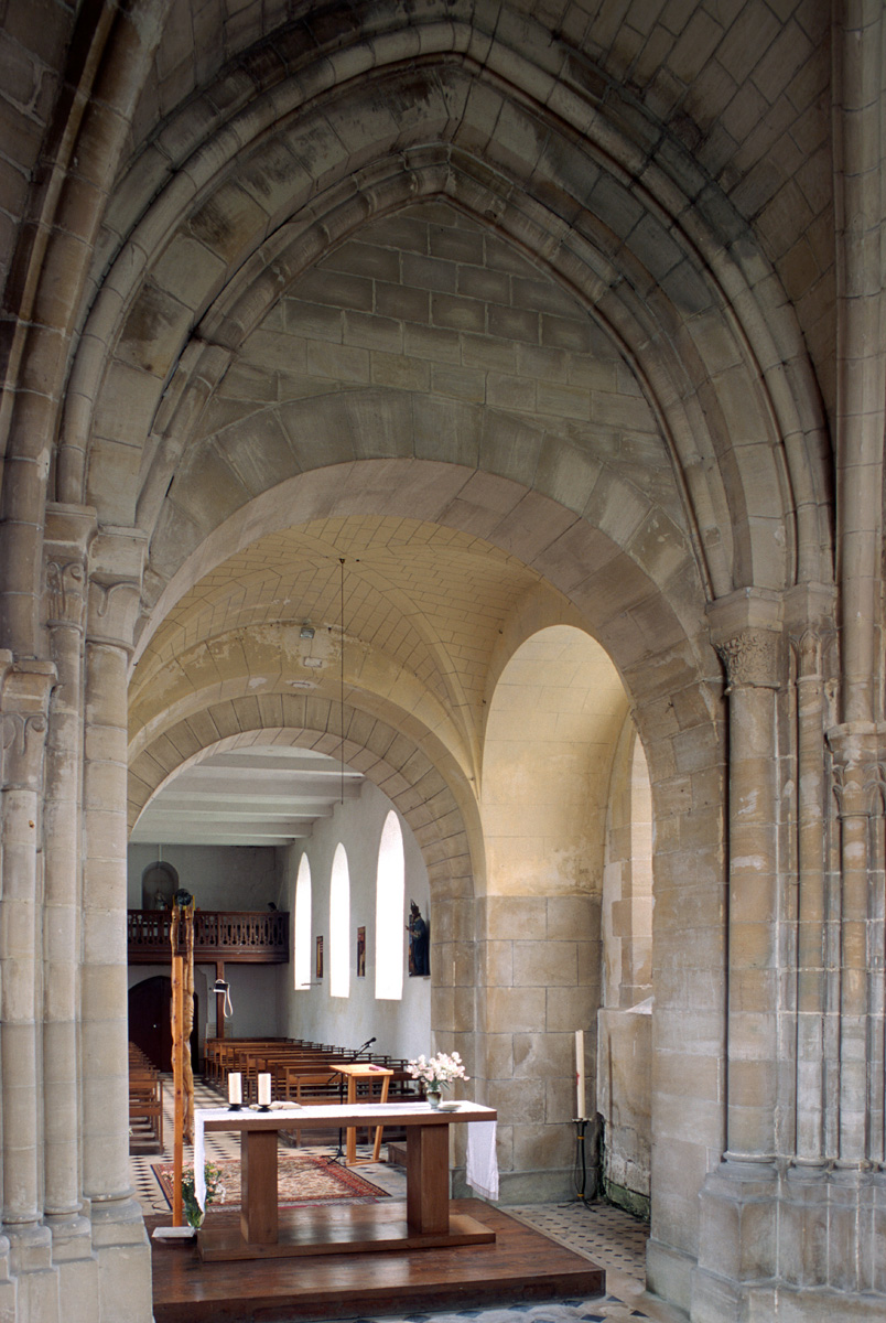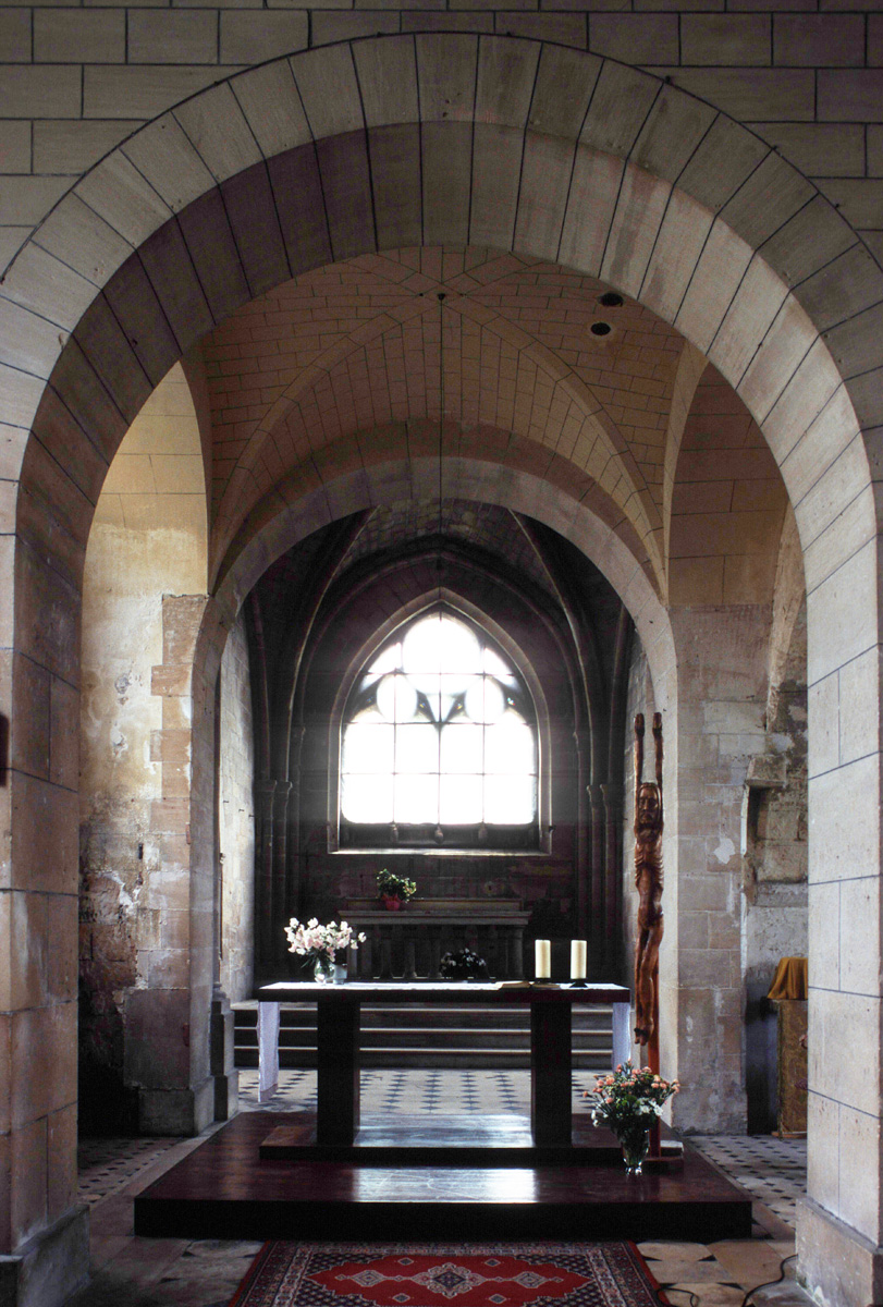 Le choeur roman, sur lequel rien n’est connu, sera remplacé dans les années 1170 par le choeur actuel, à chevet plat. Sa voûte d’ogives, les colonnes et colonnettes qui la reçoive, la sculpture des chapiteaux (cependant très restaurés) le situe dans la famille architecturale fortement influencée par la cathédrale de Senlis.