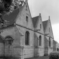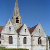 Fin 13ème ou début 14ème siècle, ce choeur sera flanqué au sud d’une chapelle éclairée par deux fenêtres (l’une est bouchée) dont le réseau à profil prismatique et constitué de deux lancettes surmontées d’une rose est caractéristique de l’époque. Un siècle plus tard, c’est au tour du côté nord de se voir adjoindre une chapelle. Ses deux fenêtres – on en profite pour refaire également celle du choeur – comportent déjà un réseau flamboyant mais les profils présentent encore des éléments toriques, bon exemple d’une période peu représentée dans l’Oise.