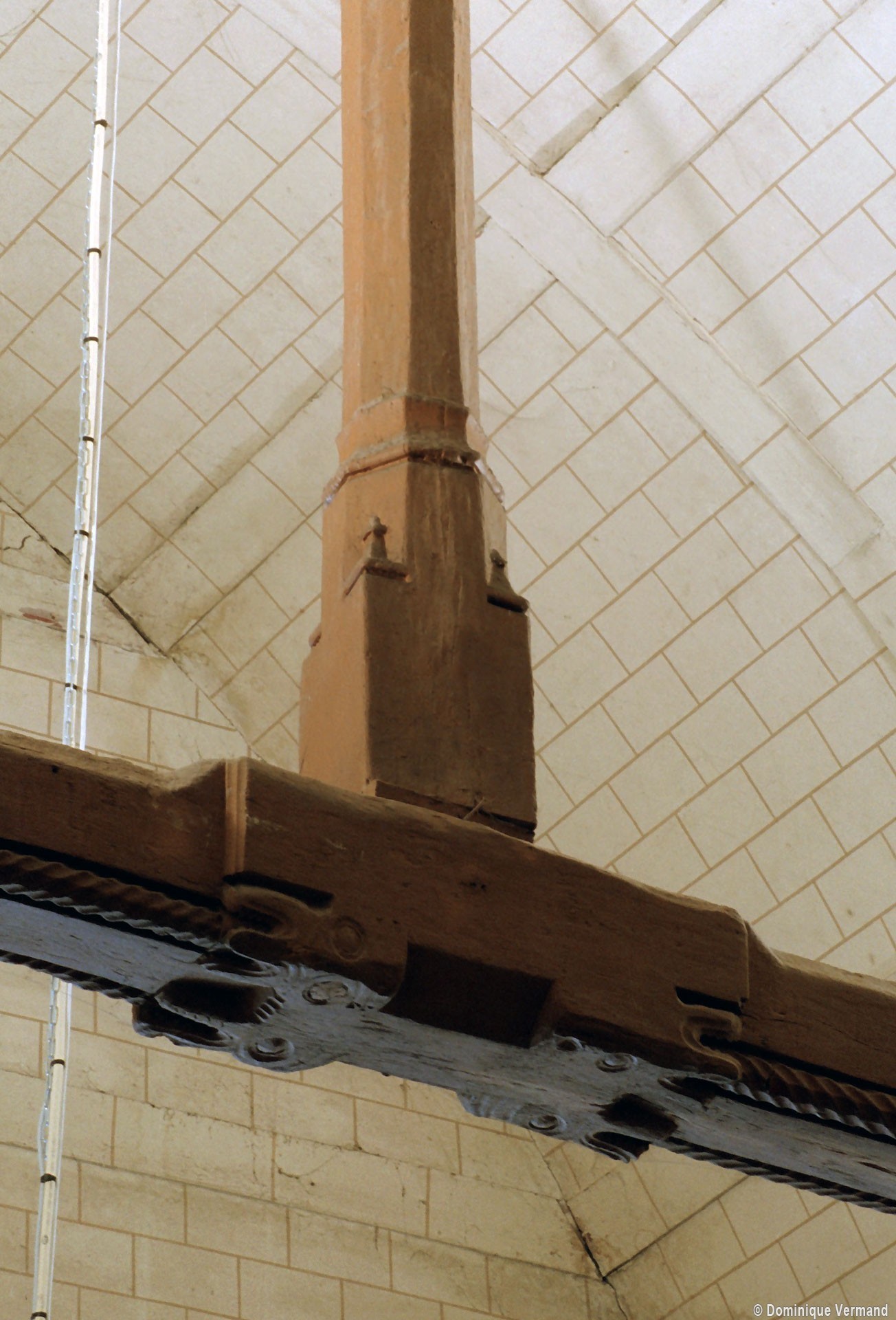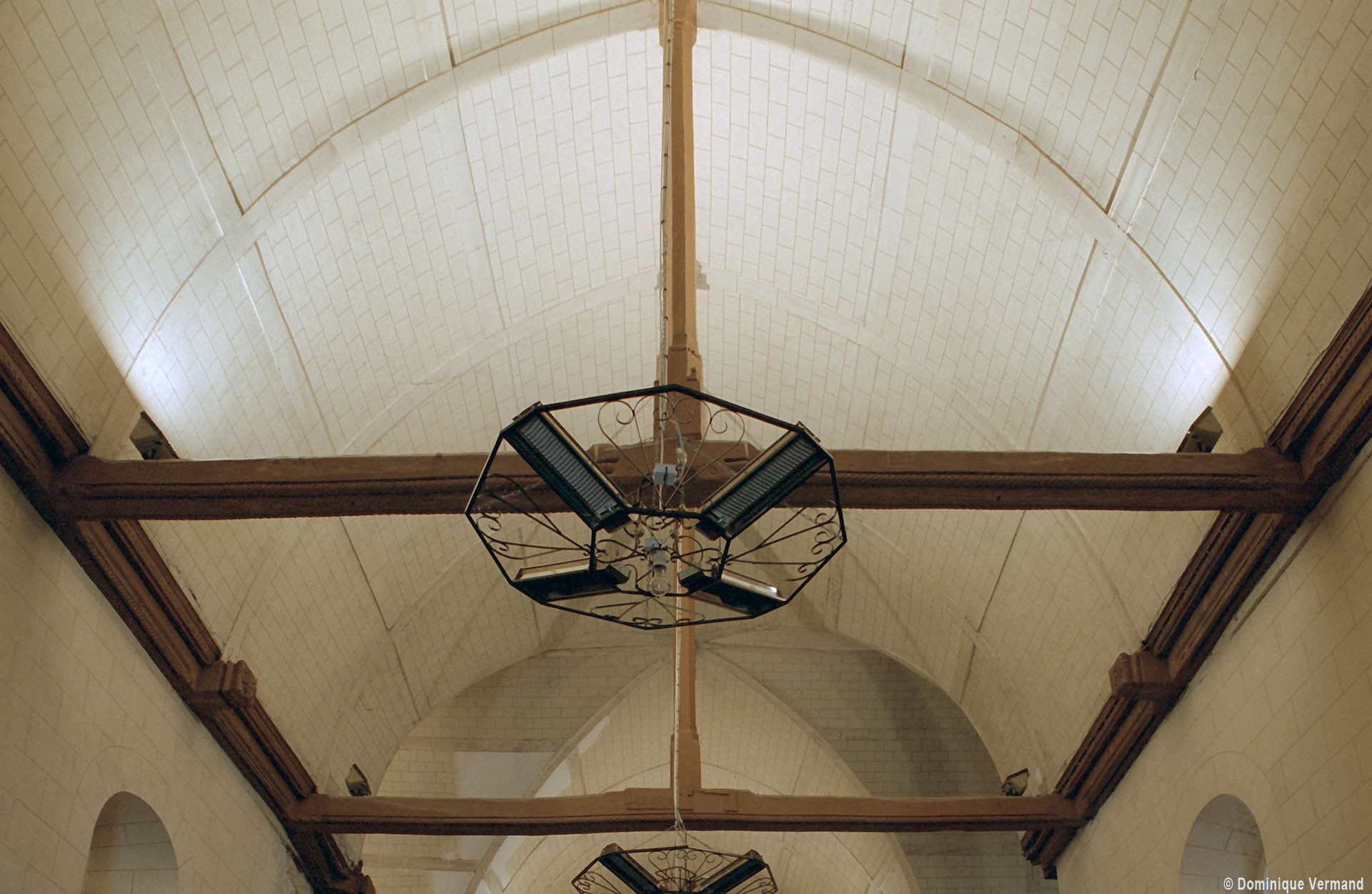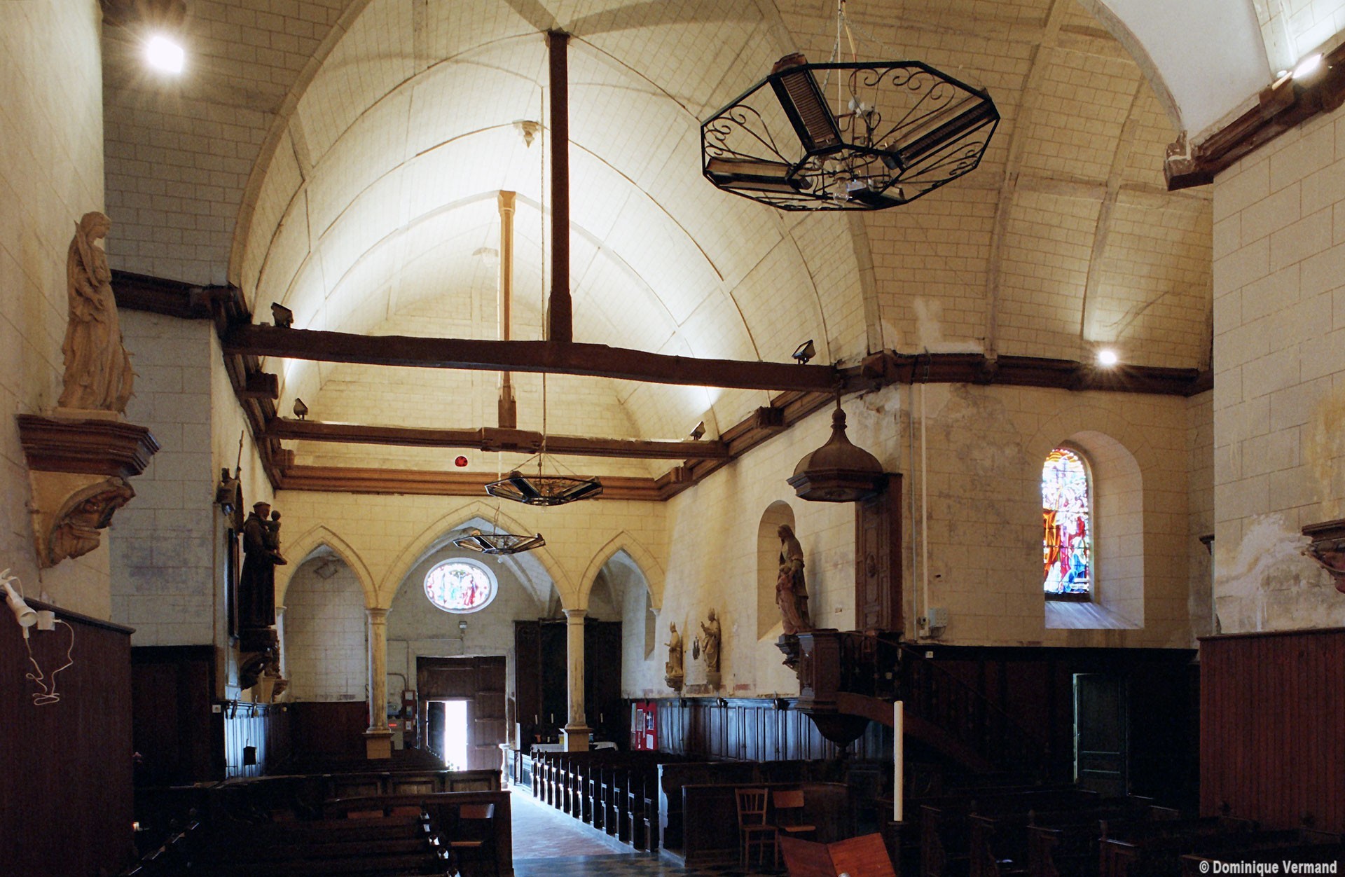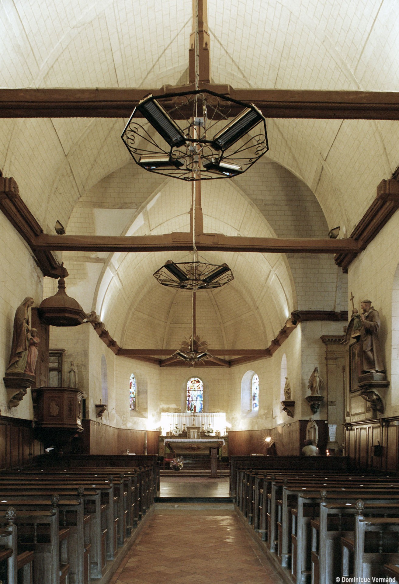 Contemporaine de la construction, cette charpente est reçue sur une sablière continue décorée de motifs torsadés et de blochets. Des entraits avec poinçon soulagent le berceau dans la nef, l’abside et – ce qui explique le dispositif des doubles fenêtres – l’extrémité des croisillons. Cette charpente rappelle fortement celle de l’église toute proche d’Achy. A l’entrée de l’église se remarque une intéressante cuve baptismale néo-gothique en bronze avec une représentation de saint Jean-Baptiste (2007).