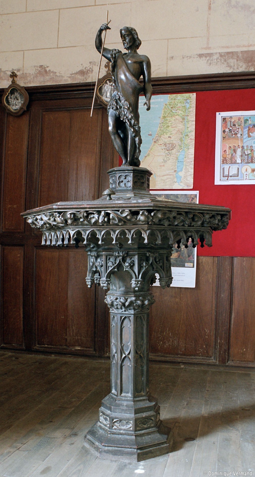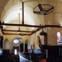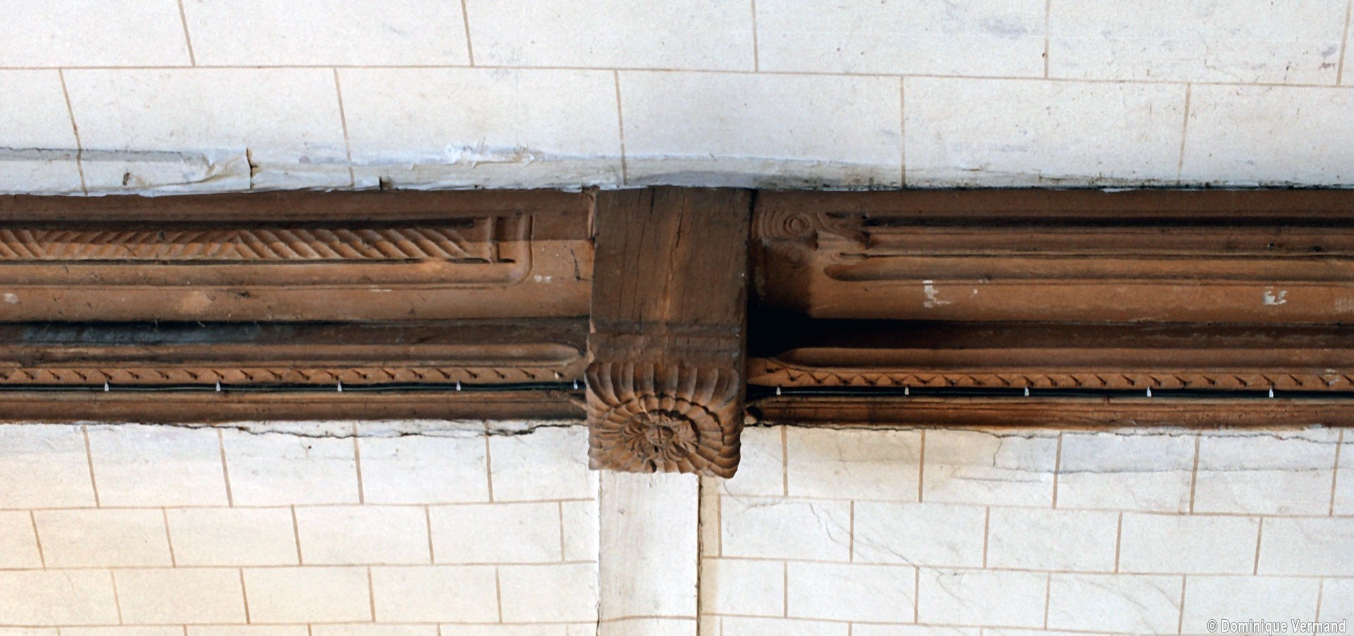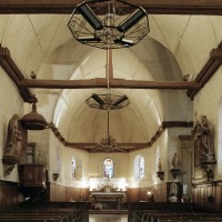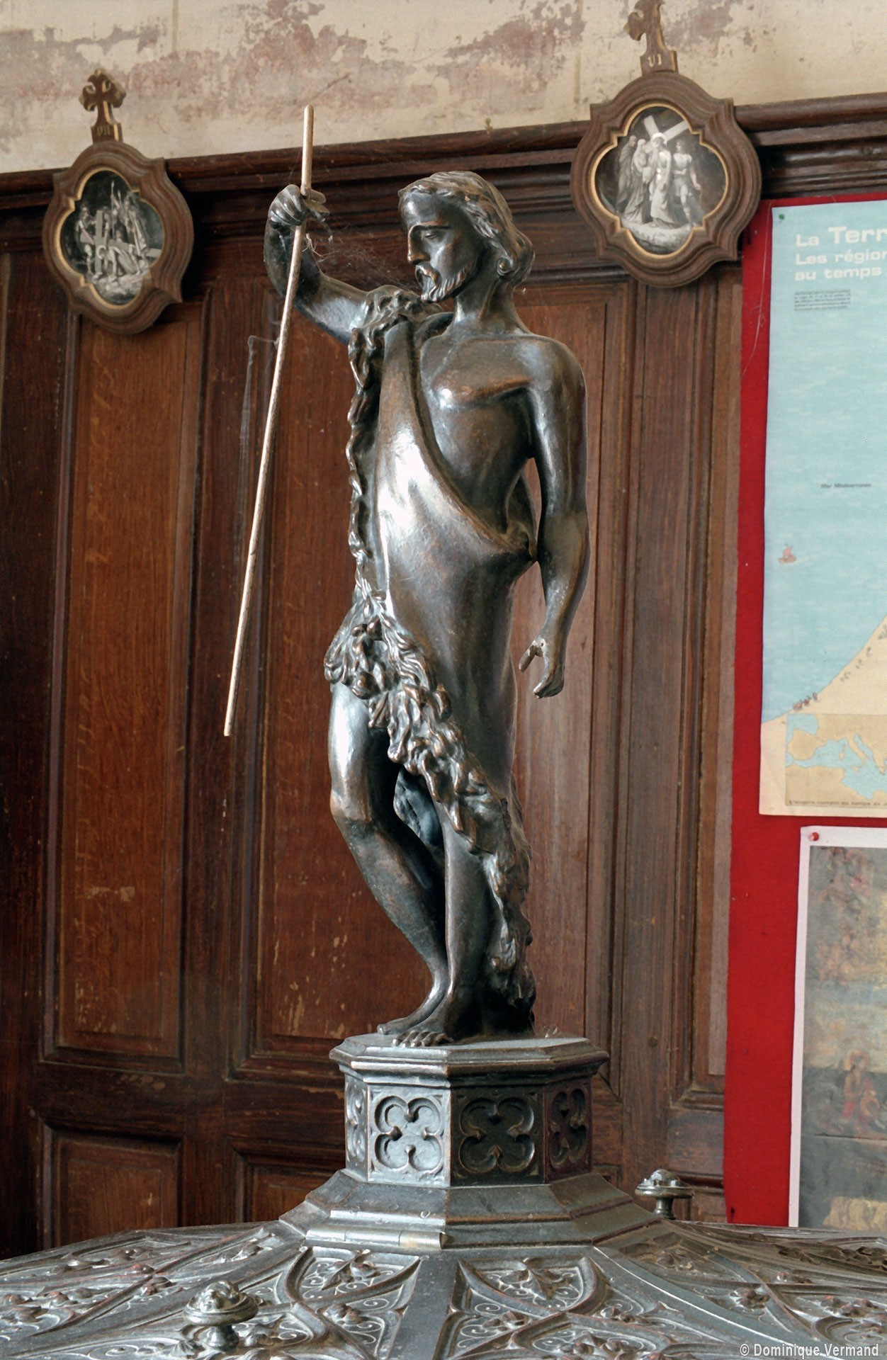 Contemporaine de la construction, cette charpente est reçue sur une sablière continue décorée de motifs torsadés et de blochets. Des entraits avec poinçon soulagent le berceau dans la nef, l’abside et – ce qui explique le dispositif des doubles fenêtres – l’extrémité des croisillons. Cette charpente rappelle fortement celle de l’église toute proche d’Achy. A l’entrée de l’église se remarque une intéressante cuve baptismale néo-gothique en bronze avec une représentation de saint Jean-Baptiste (2007).