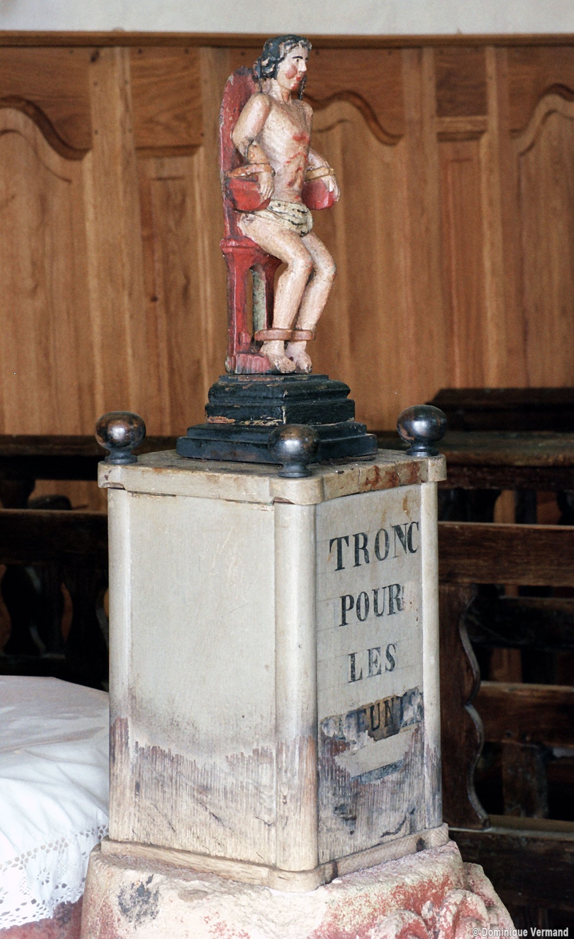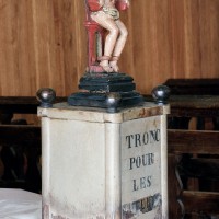 Le choeur abrite un magnifique autel baroque et un petit tronc, avec la représentation touchante d’un martyr, accueille les fidèles comme les visiteurs à l’entrée de l’église (2007).