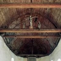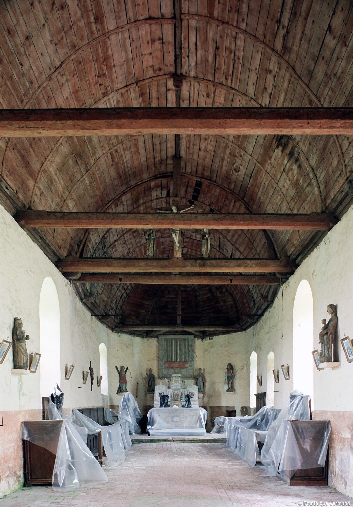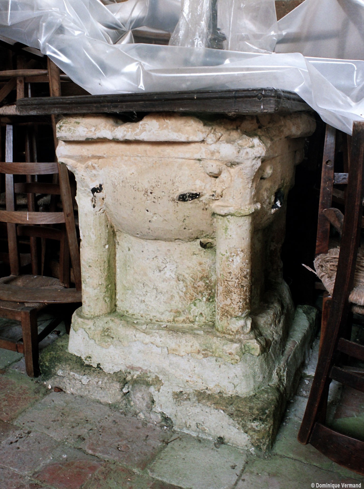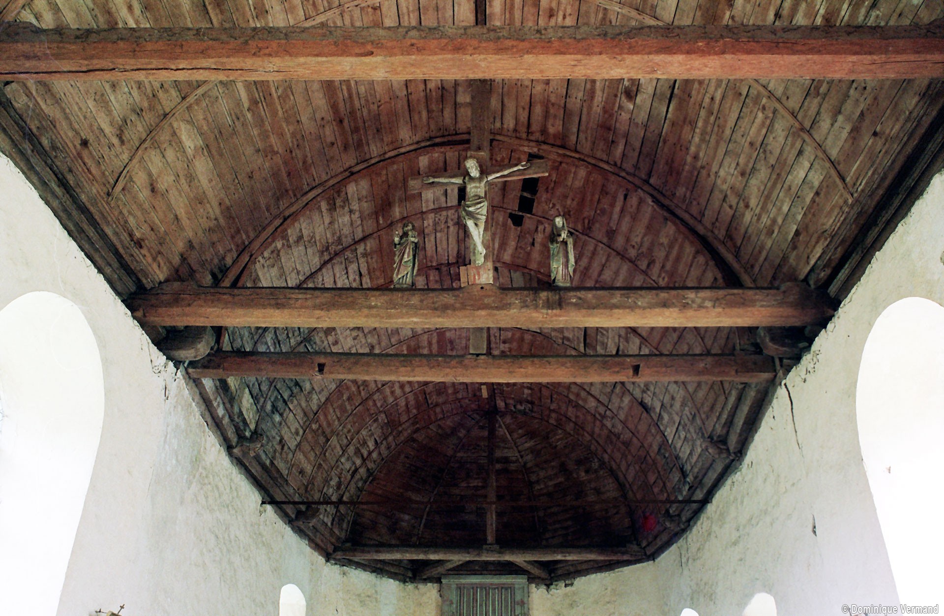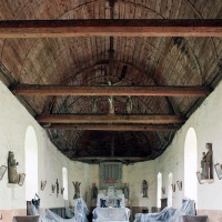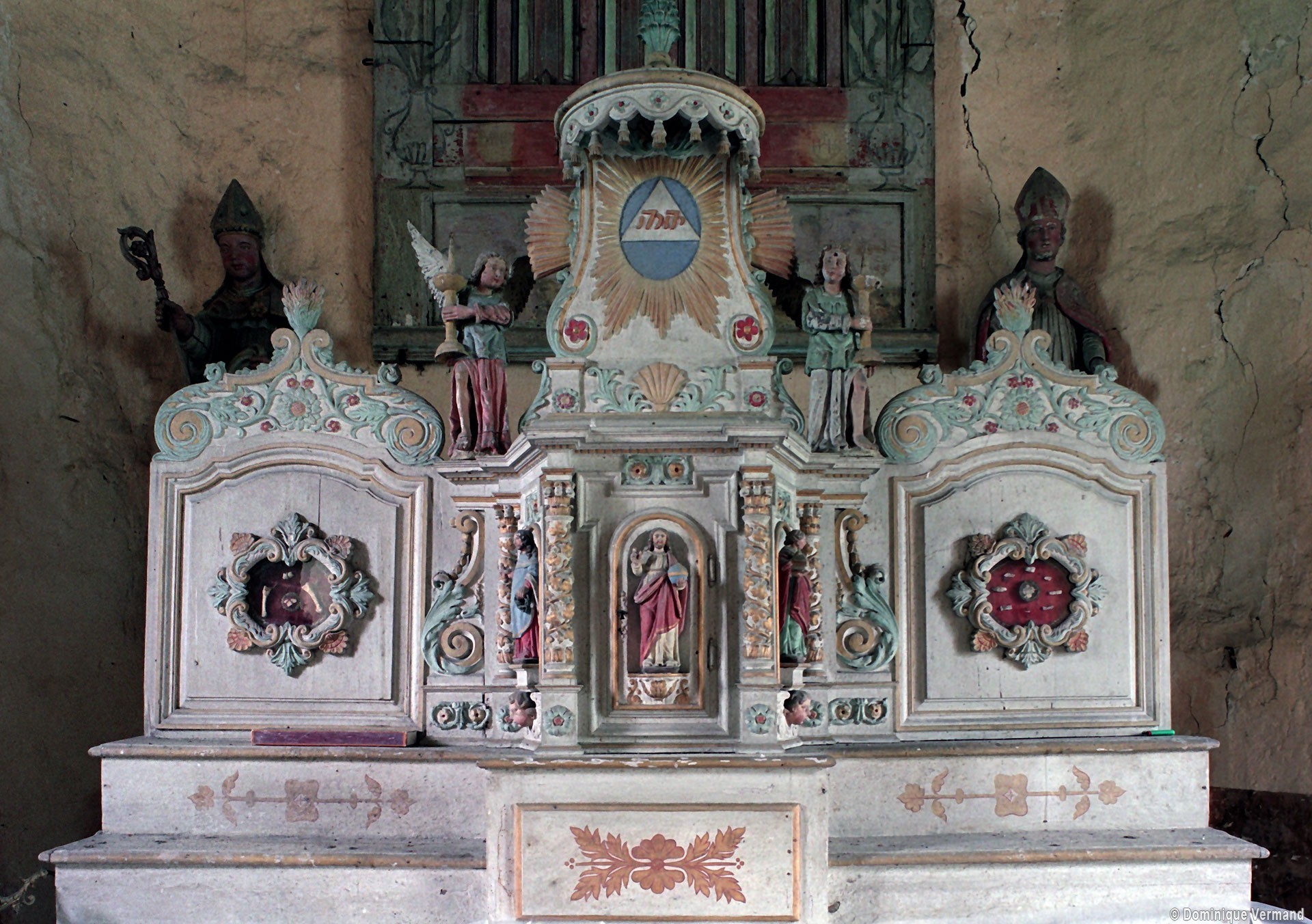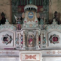 L’intérêt de l’église réside surtout dans son riche mobilier, tout à fait surprenant dans une si modeste église de campagne : cuve baptismale en pierre, du début du 13ème siècle, au gros fût central flanqué de quatre colonnettes avec chapiteaux à crochets; rare Vierge à l’Enfant assise, en bois, de la fin du 12ème siècle; nombreuses statues d’art populaire du 16ème au 18ème siècles; petit bénitier de style gothique tardif; charmant retable d’autel polychrome au décor baroque, daté 1717 (2007).