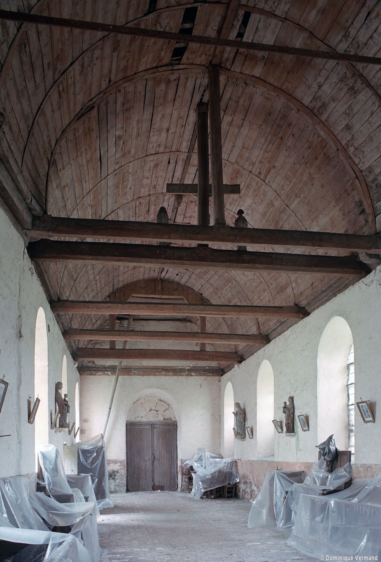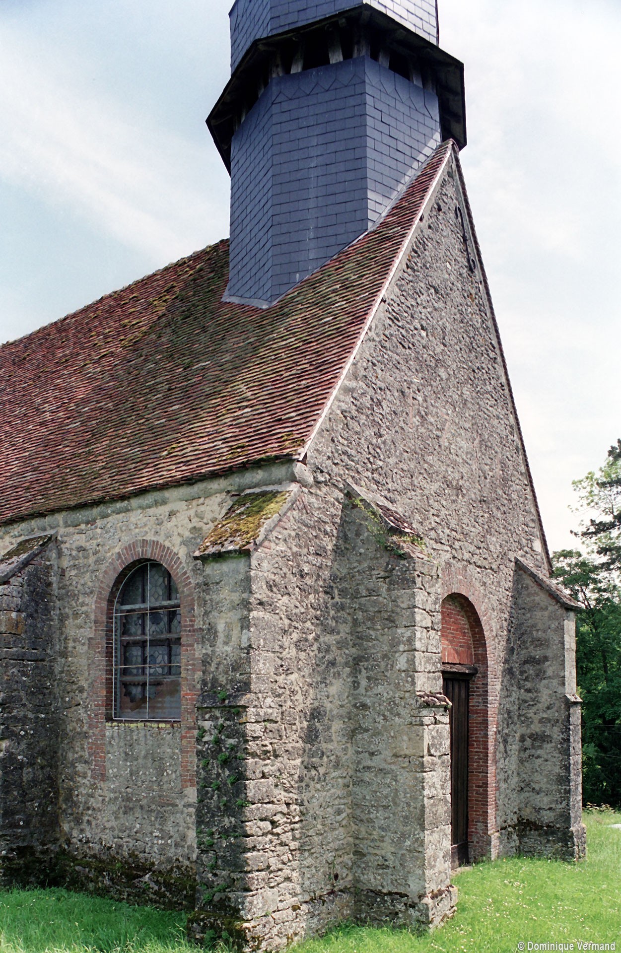 Bâti en moellons de grès, Saint-Germain est un édifice très simple constitué d’un vaisseau unique que termine une abside à trois pans. Malgré l’absence de caractères bien marqués, il peut être attribué principalement aux 16ème (choeur) et 17ème siècles (nef) d’après les charpentes en carène qui recouvrent chacune de ces deux parties, avec de possibles vestiges du 11ème siècle au mur est du choeur. Dotée de deux entraits avec poinçon et de blochets sculptés de têtes et d’un blason, la charpente du choeur est beaucoup plus travaillée.