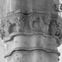 Construit le premier vers la fin du 16ème siècle, celui du sud est divisé en deux travées carrées voûtées d’ogives. La travée de l’ouest correspond au clocher, reçu par une très belle pile ondulée implantée à l’aplomb de la clef de l’arcade sud de la croisée, bel exemple de juxtaposition de deux campagnes de travaux. Le chapiteau qui la couronne, formant frise, est orné d’un masque, de sirènes et de feuilles. Le clocher est une tour assez massive et ses baies associent les formes brisées du gothique tardif et en plein cintre de la Renaissance. Une haute flèche en bois recouverte d’ardoises le couronne.