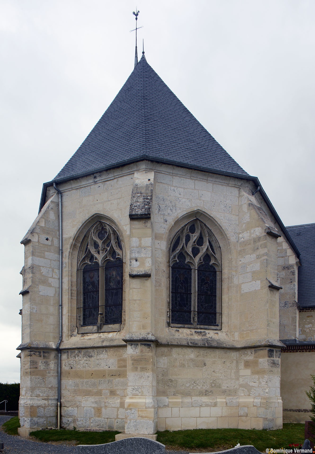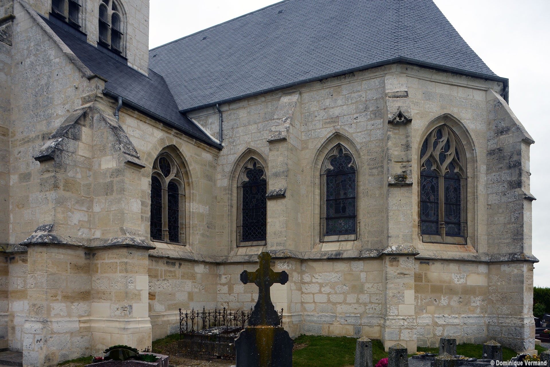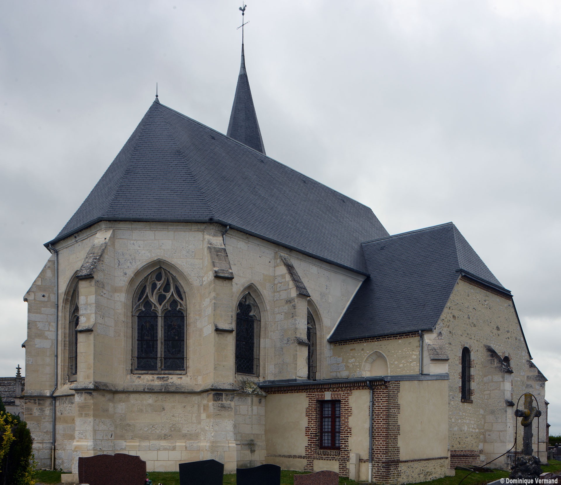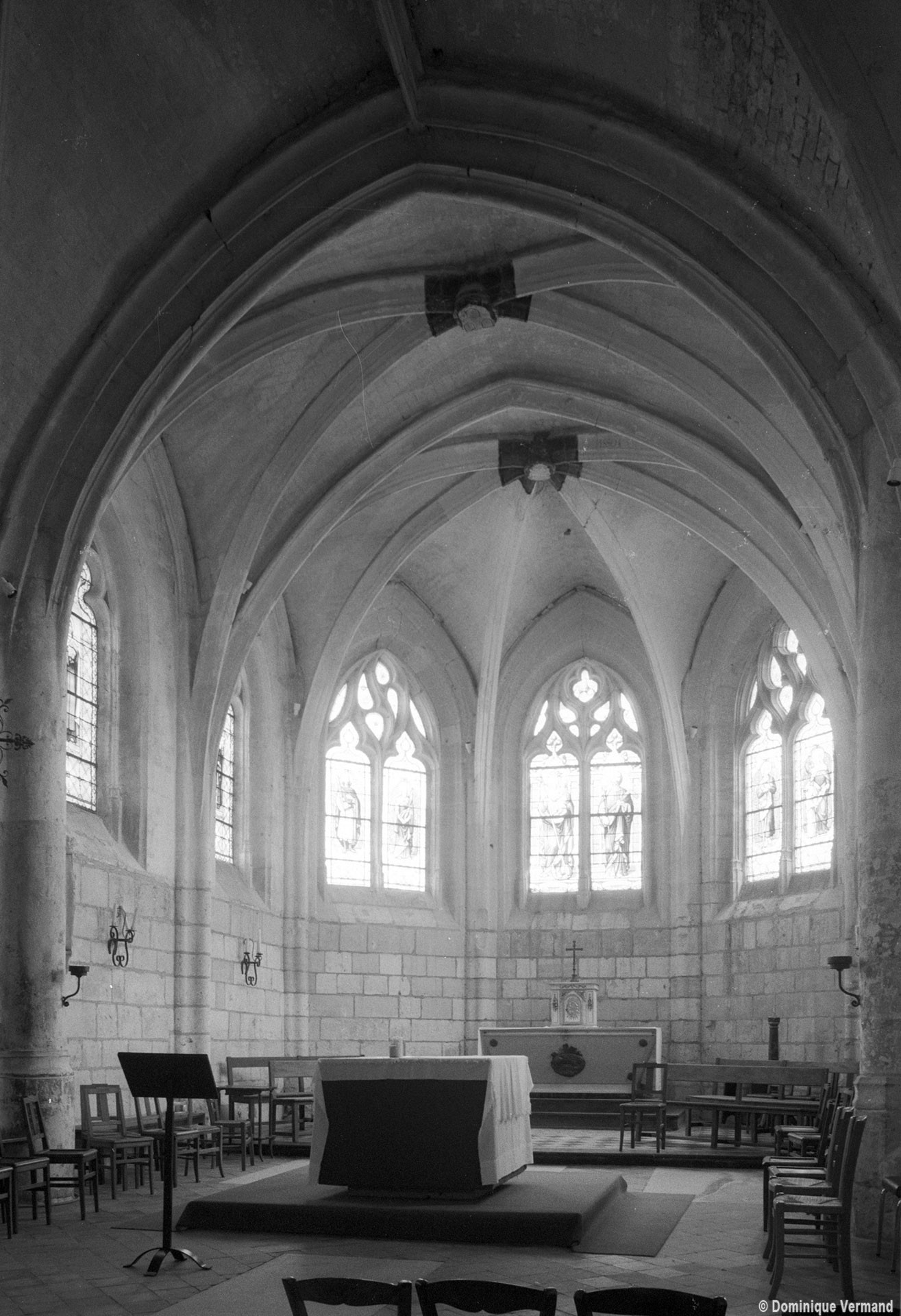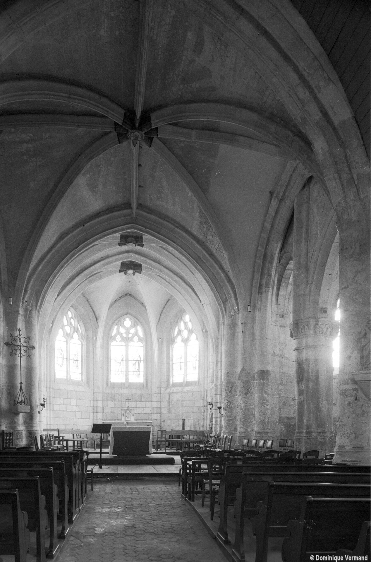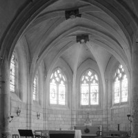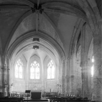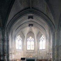 La croisée et le choeur pentagonal sont de 1550 comme l’atteste la date inscrite sur une ogive du choeur. La voûte de la croisée comporte deux ogives supplémentaires qui relient la clef des arcs d’encadrement. Les fenêtres ont conservé leur délicat réseau flamboyant. Les bras du transept, prévus dès l’origine comme le montre l’existence des arcades nord et sud de la croisée, ne seront réalisés que plus tard.