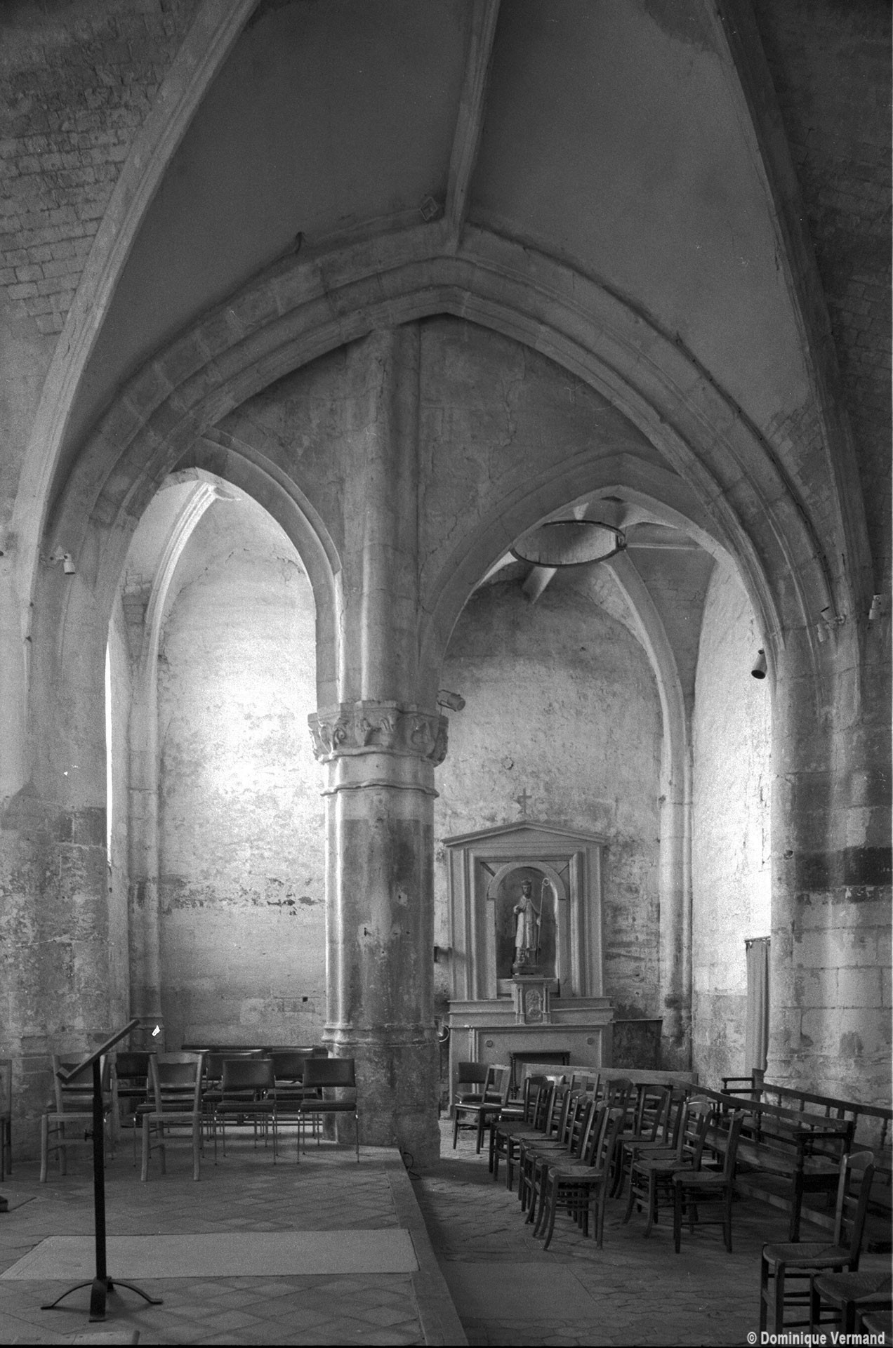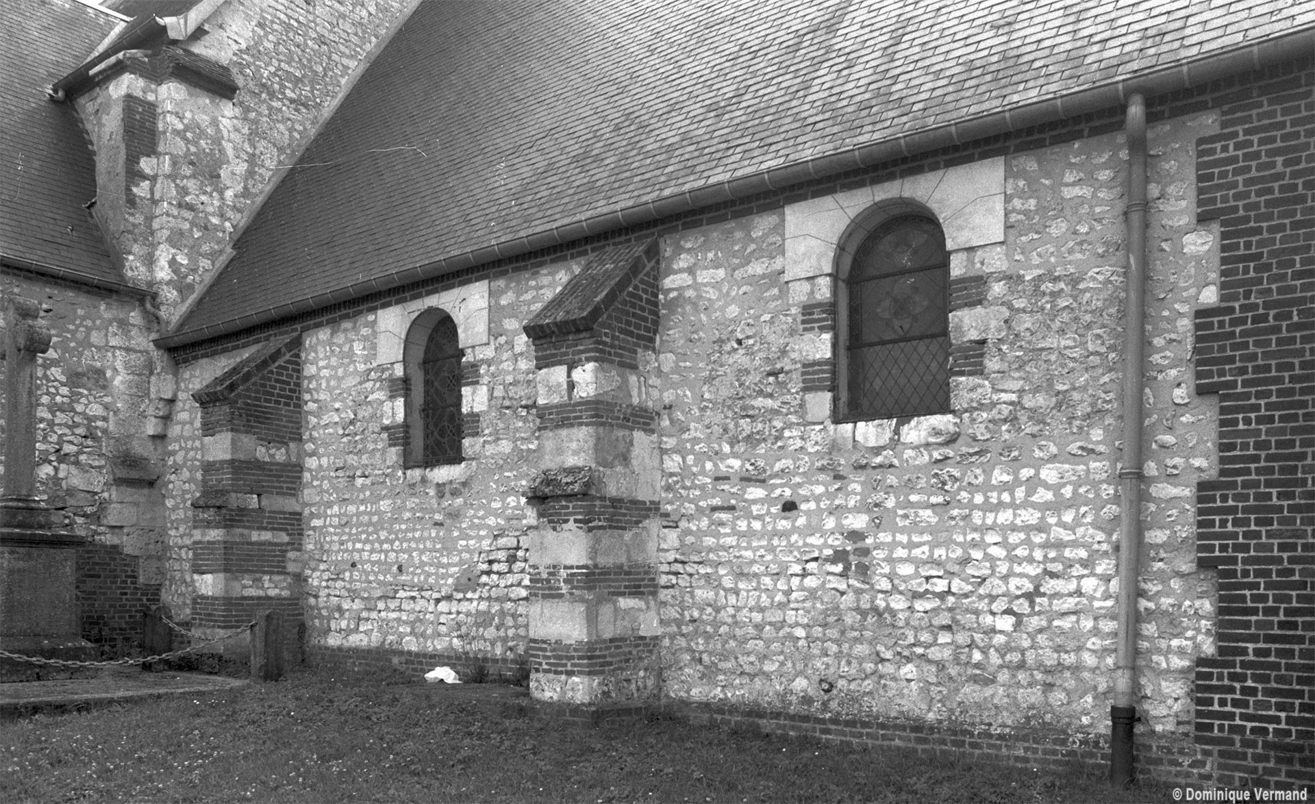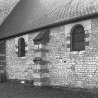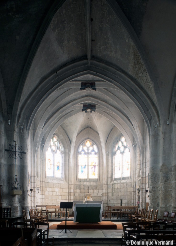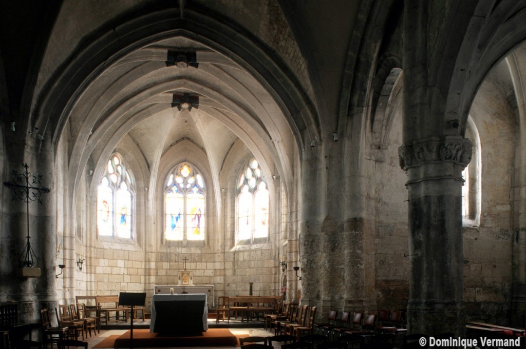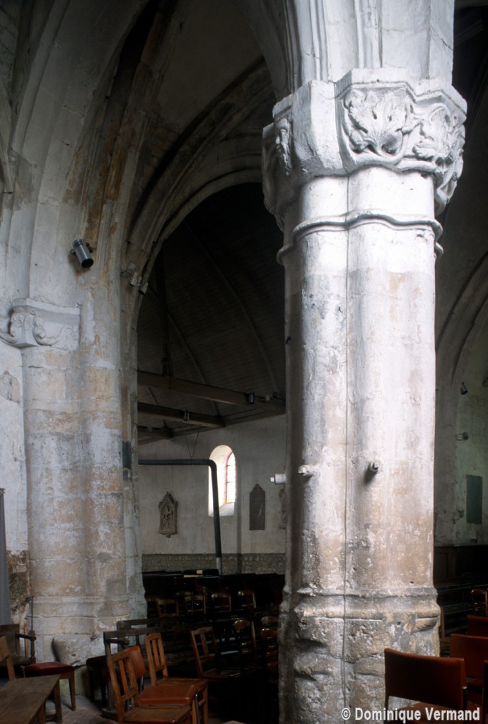 C’est un édifice très hétérogène. Une nef unique existait au 11ème siècle comme en témoignaient, avant les dernières restaurations, le mur nord, bâti en petites pierres crayeuses disposées en assises bien régulières, et où se lisaient des fenêtres sans doute romanes.