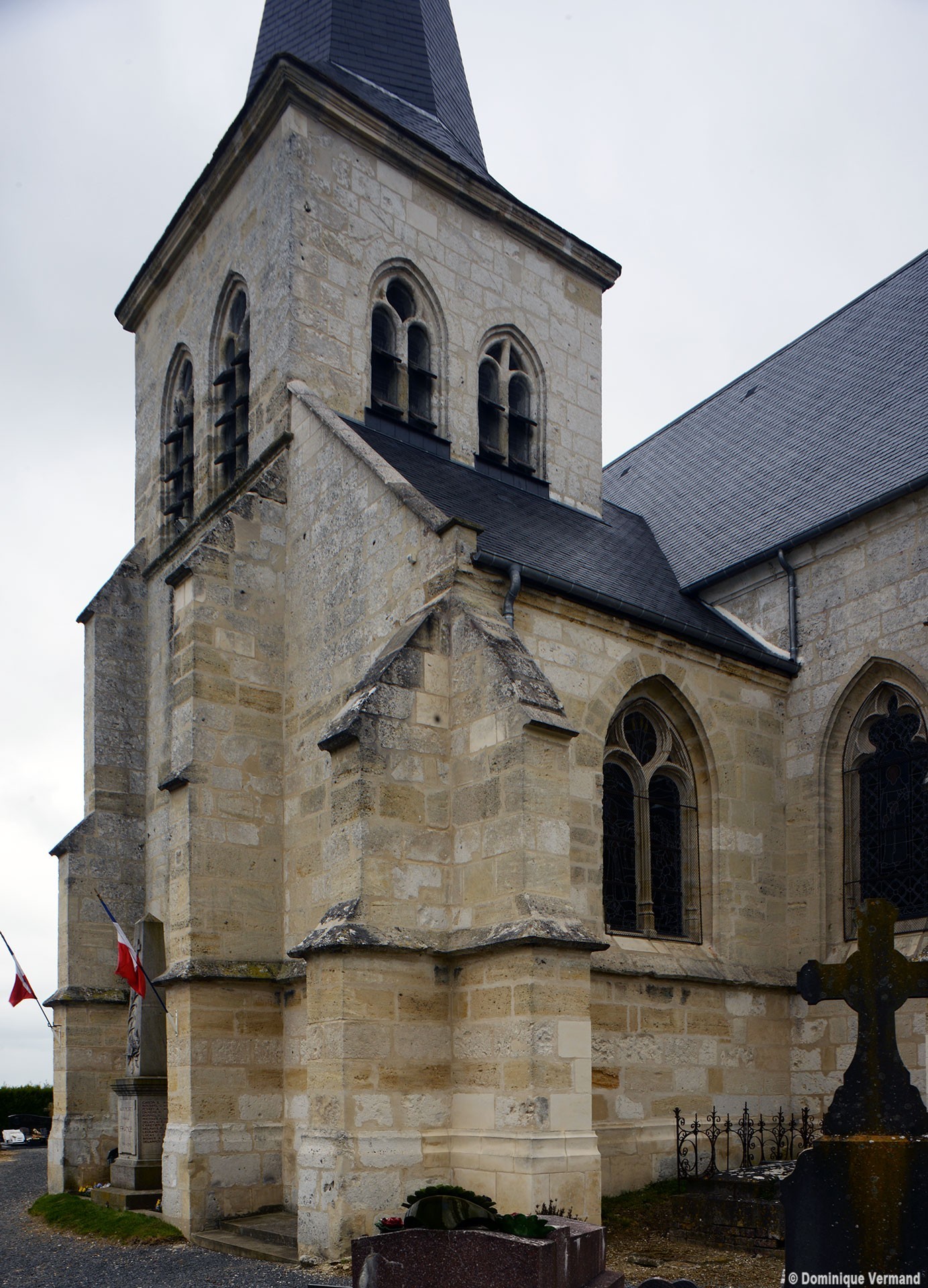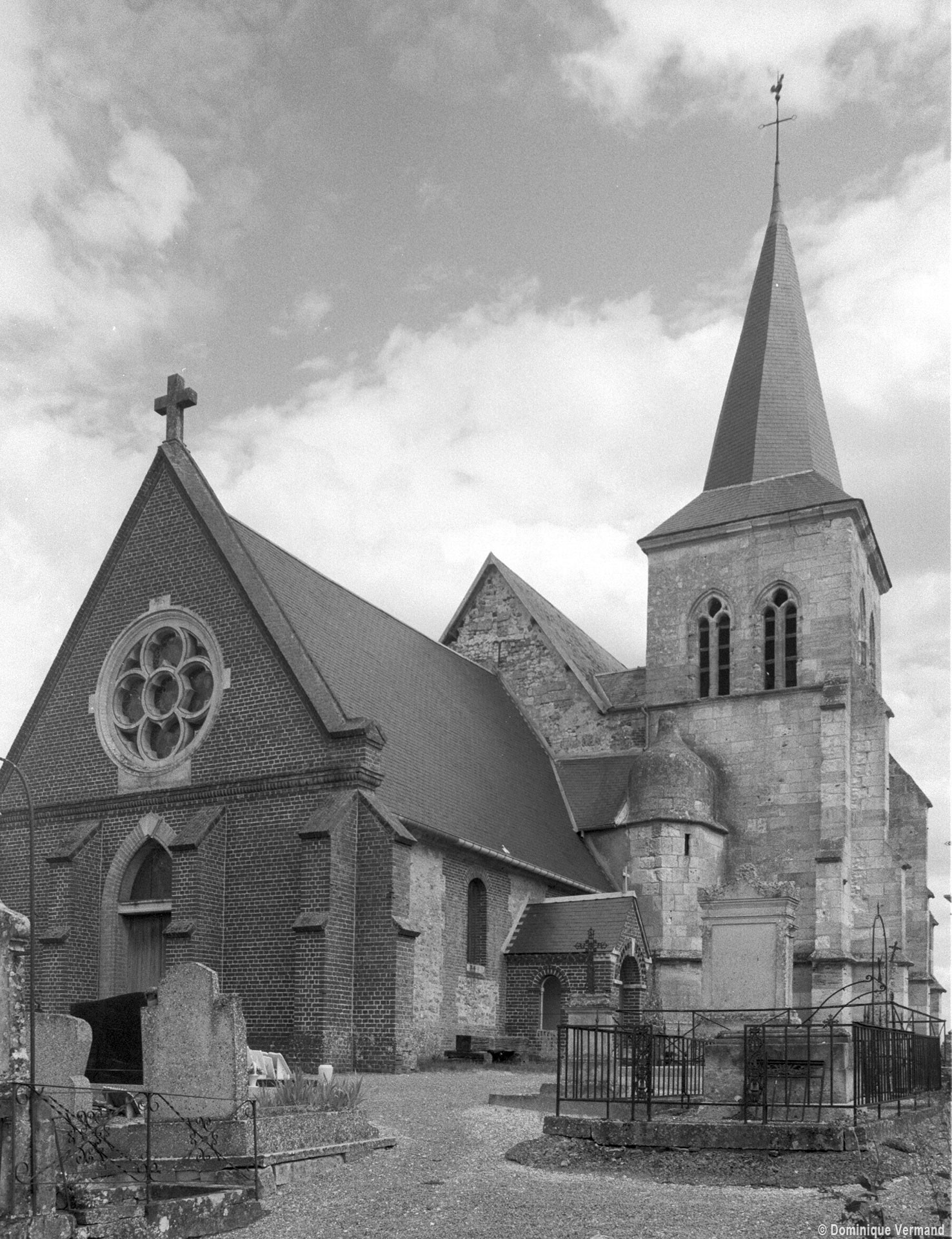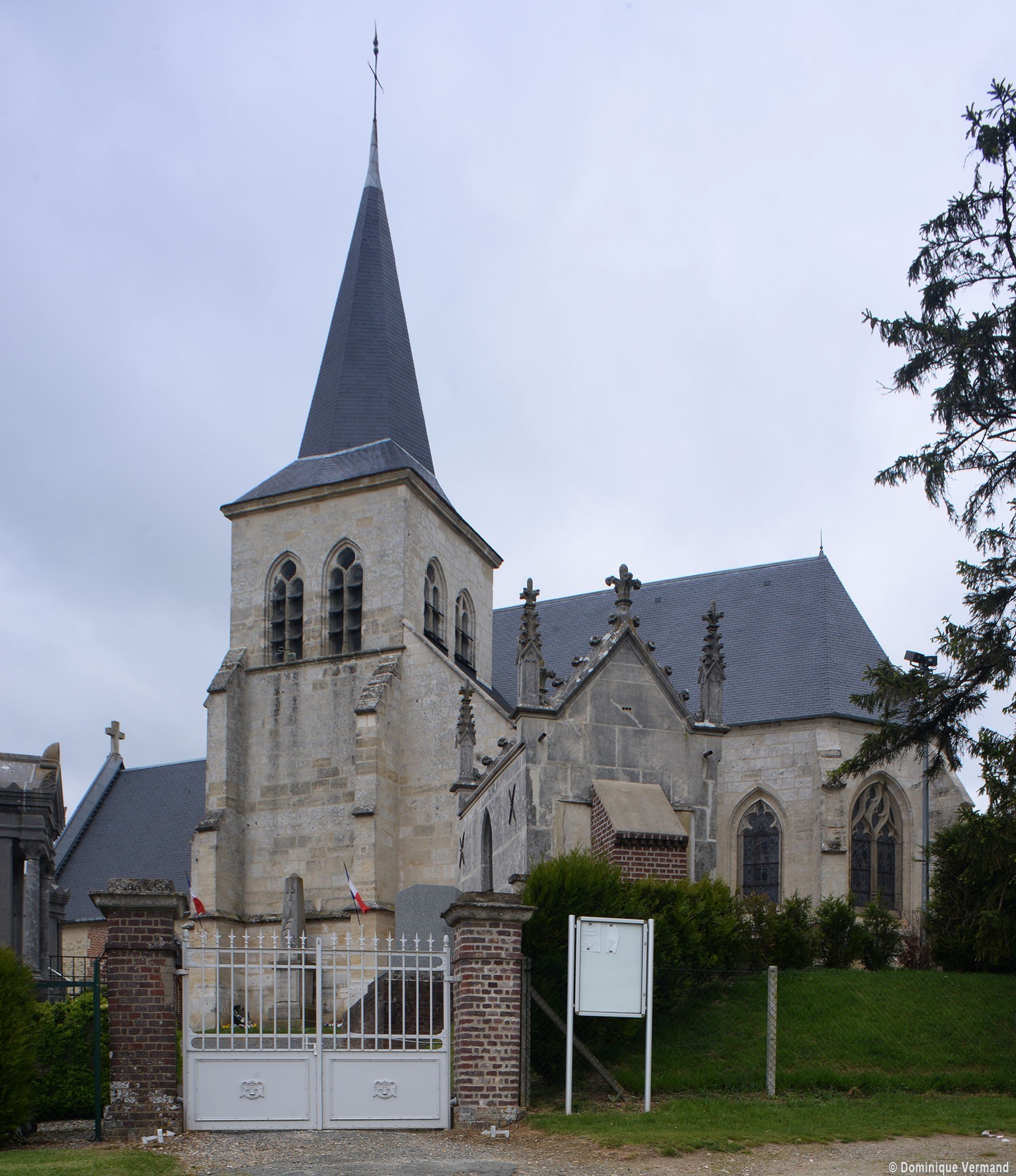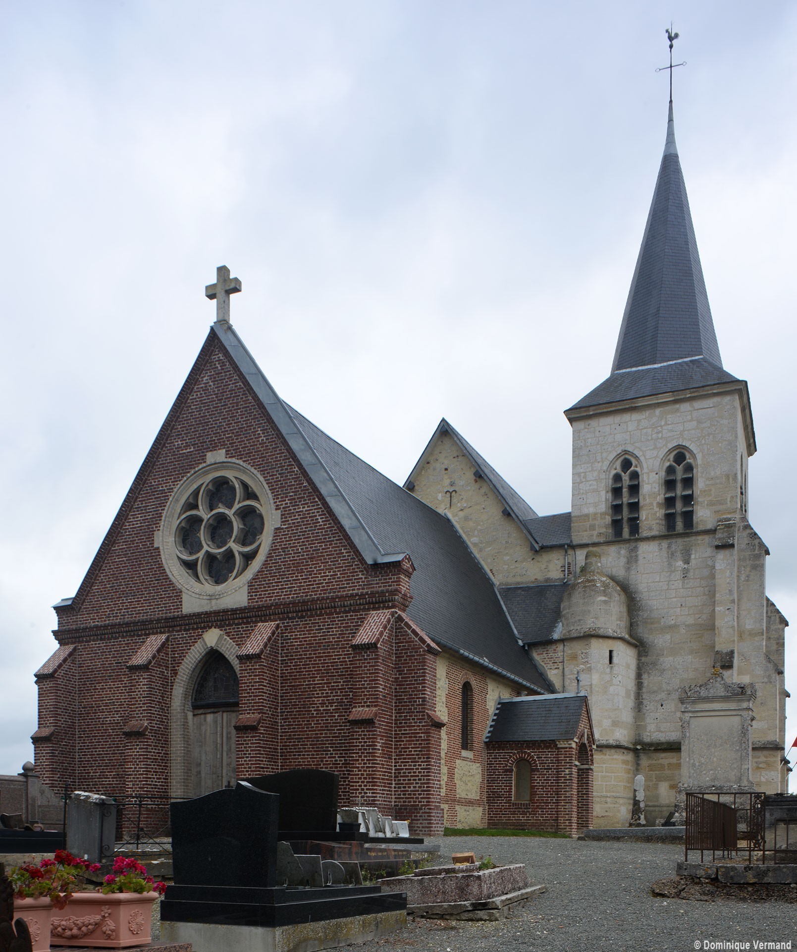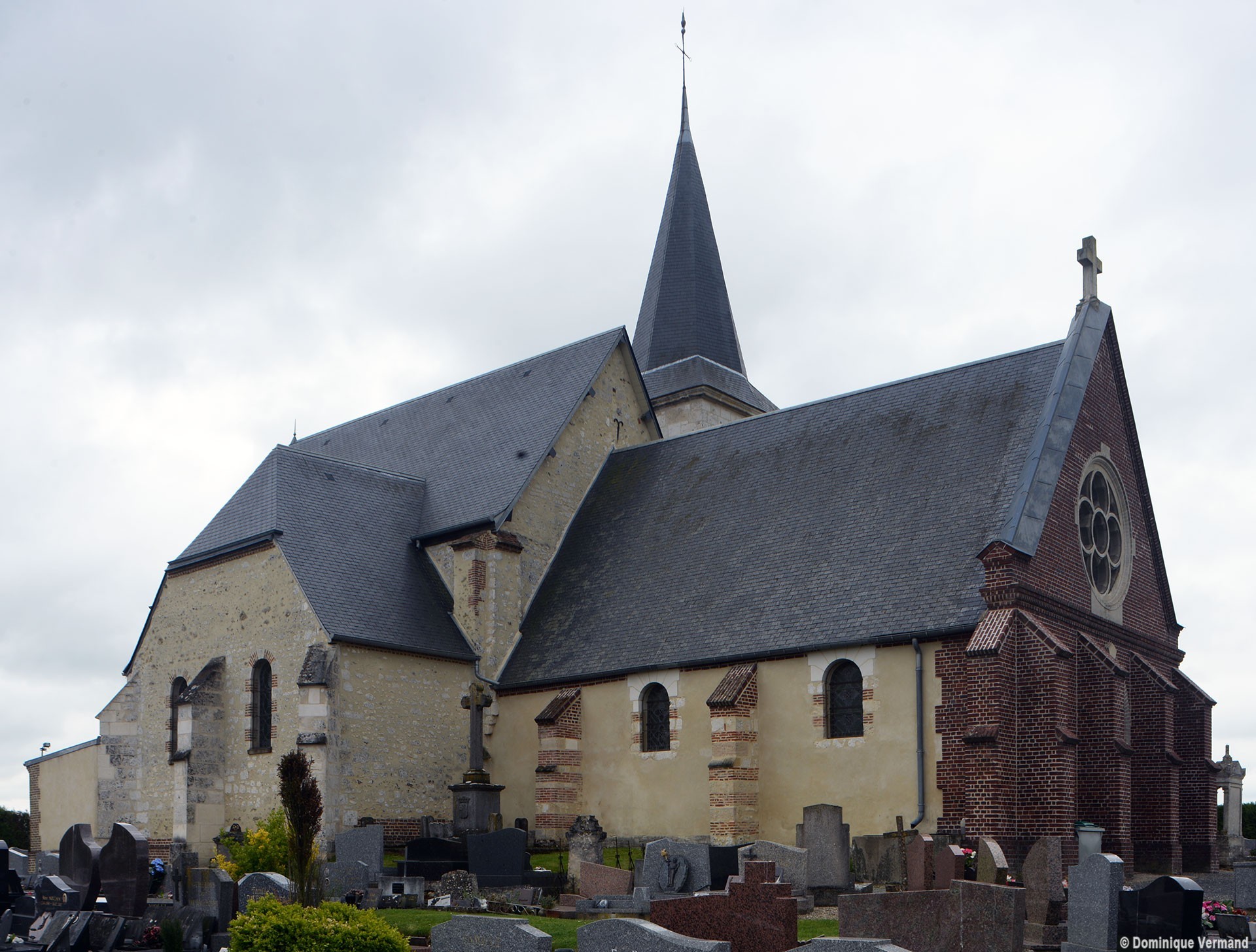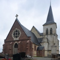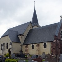 Enfin, on doit au 19ème siècle la reconstruction, également en brique et pierre, de la façade (percée d’une rose avec un vitrail contemporain) et du porche. Le mobilier conserve deux petits autels en bois des 17ème (croisillon sud) et 18ème siècles (croisillon nord) (1998, modifié 2017).