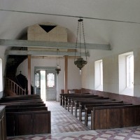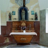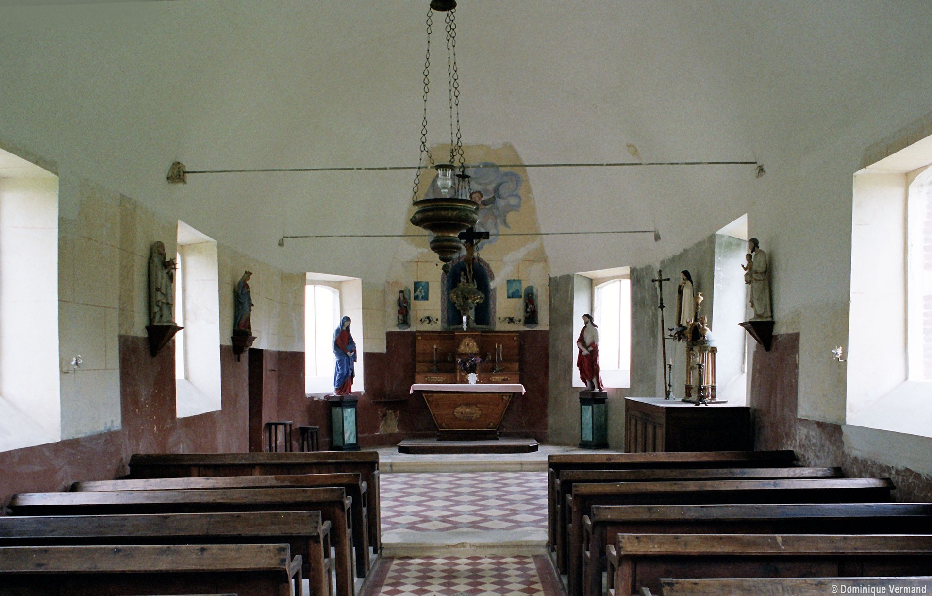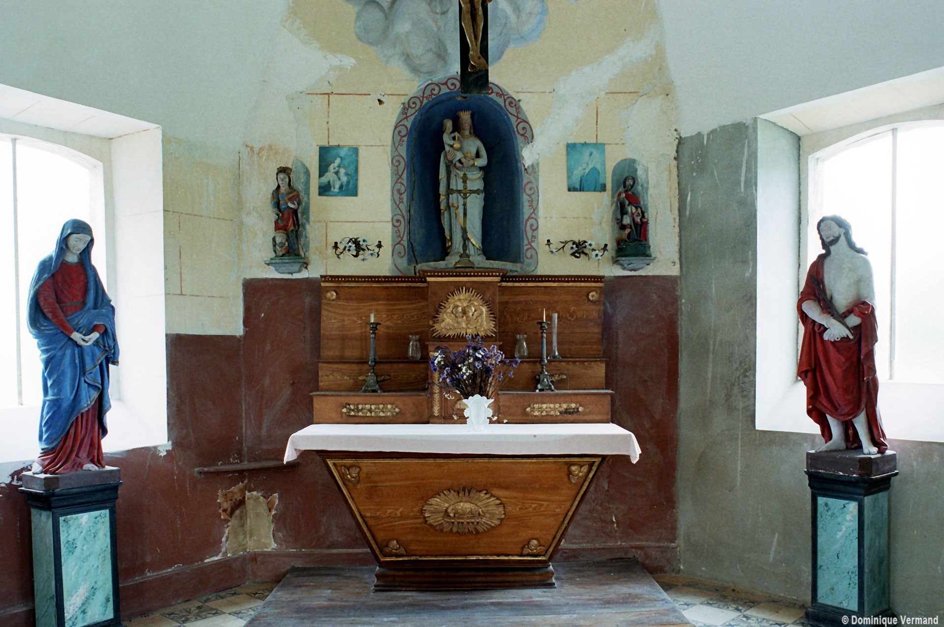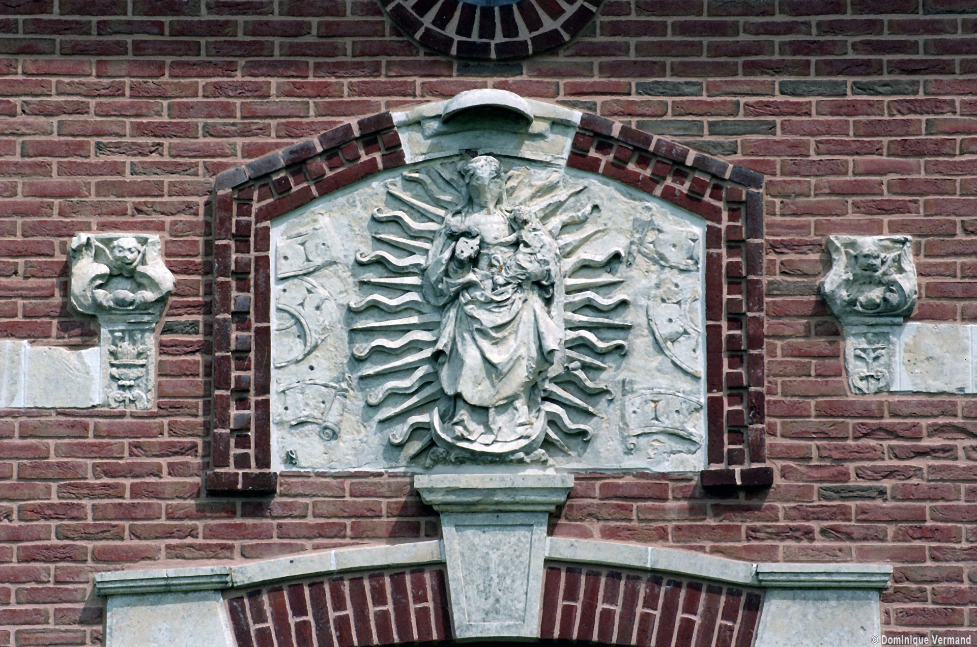 Edifiée principalement en briques, elle est éclairée par des fenêtres rectangulaires dont le cintre très surbaissé, avec clef en pierre, est caractéristique de l’époque. Le portail est traité de la même manière. L’intérêt de l’édifice réside dans le bas-relief en pierre inséré au-dessus du portail, dans un encadrement en briques. Il représente la Vierge à l’Enfant (les visages ont malheureusement été bûchés), entourée d’une gloire et posant les pieds sur un croissant de lune, intéressant témoignage de sculpture baroque (2007).