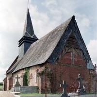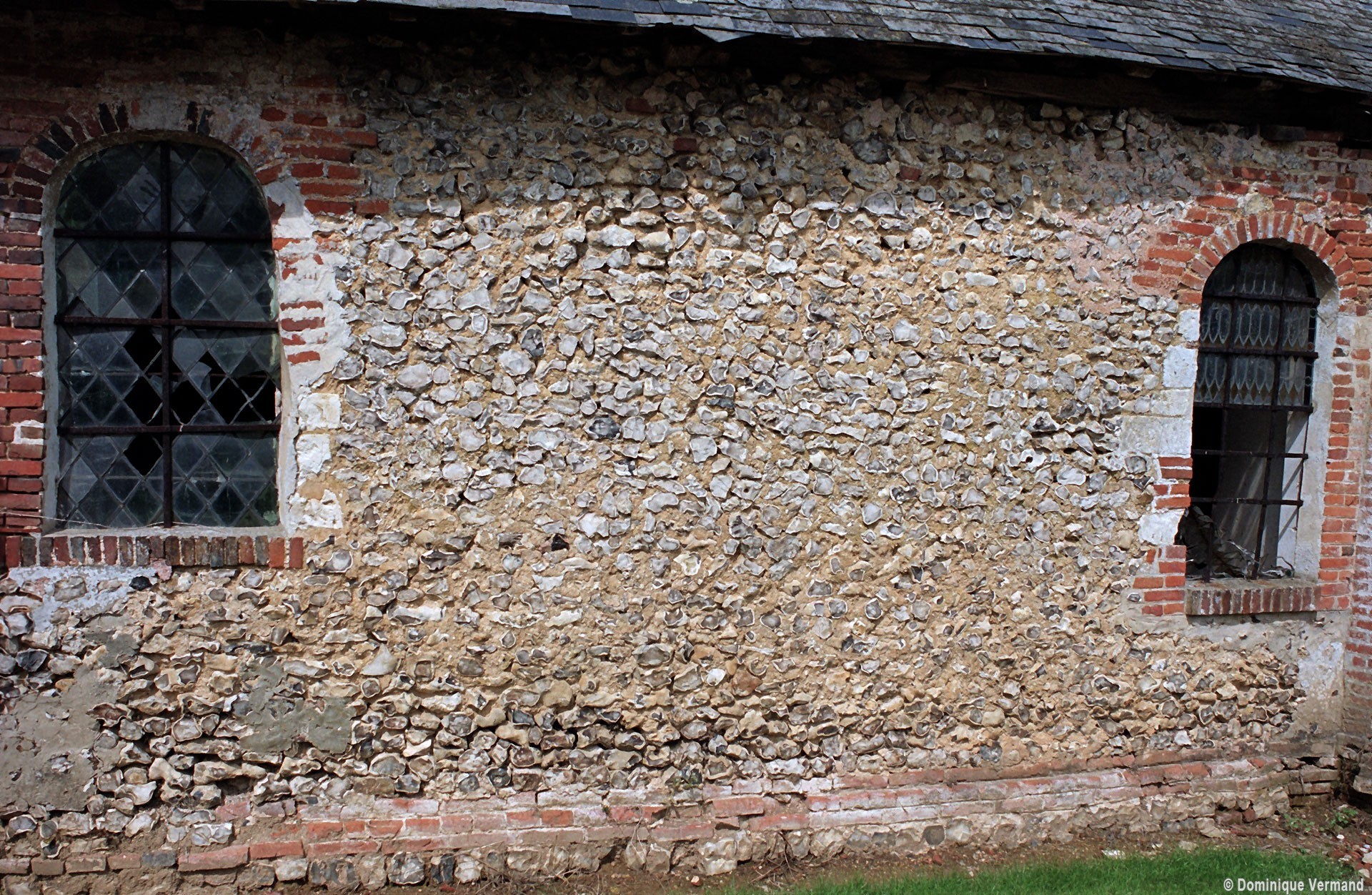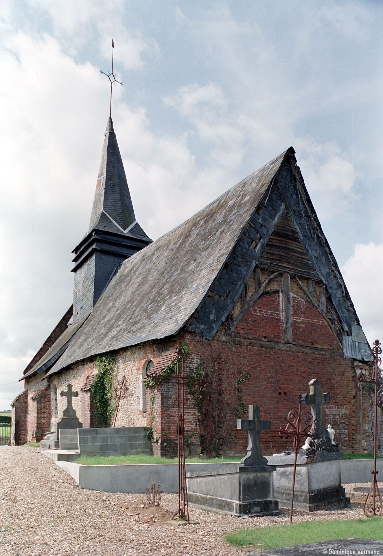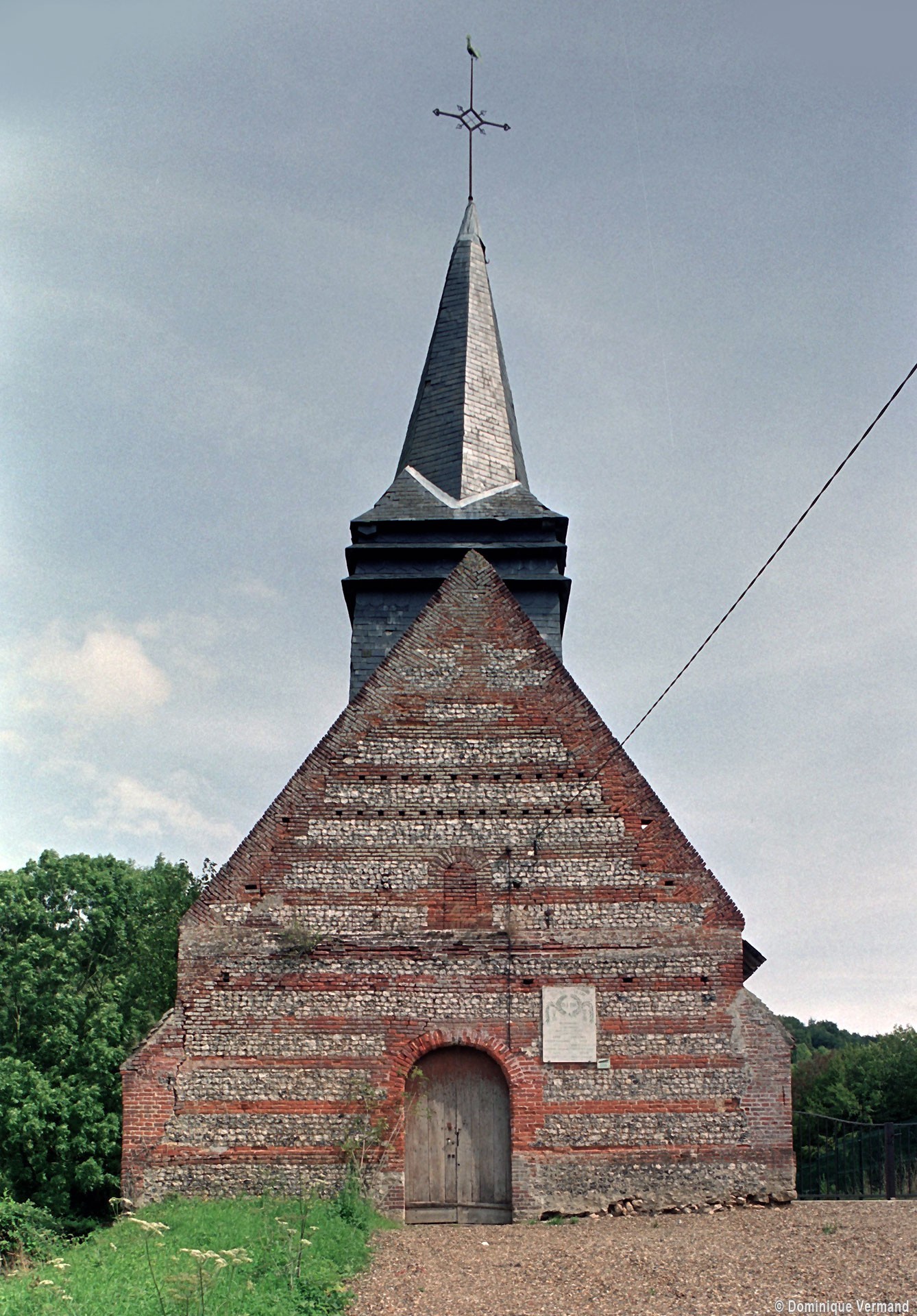Bâtie à l’écart du village, la petite église Saint-Lambert est réduite depuis bien longtemps à une simple nef. Assez dégradée, elle est, à l’image de bien d’autres édifices de ce type, difficile à dater avec certitude. La maçonnerie à base de silex est peut-être ancienne, mais toutes les ouvertures, comme les contreforts, sont des réfections. La façade, que domine un clocher en charpente et ardoises, est mieux caractérisée avec son alternance de silex et de briques, disposés en bandes horizontales.