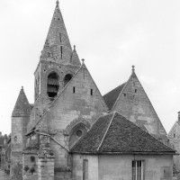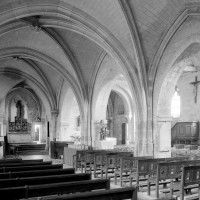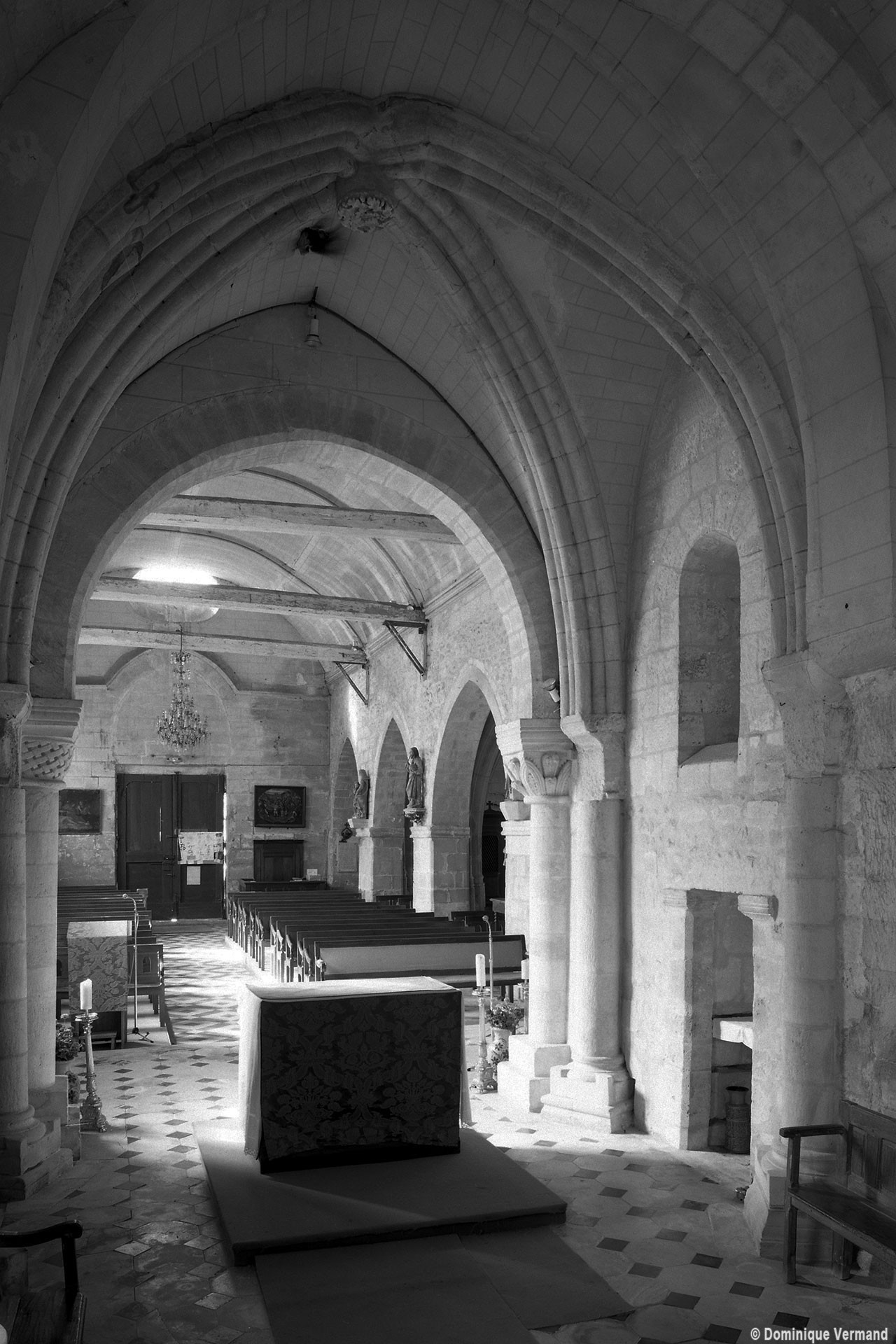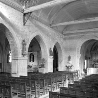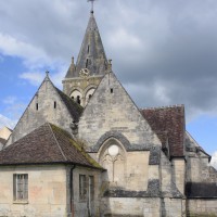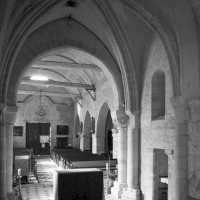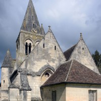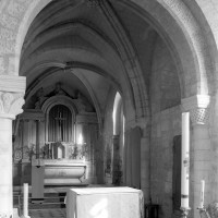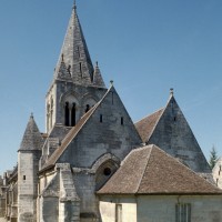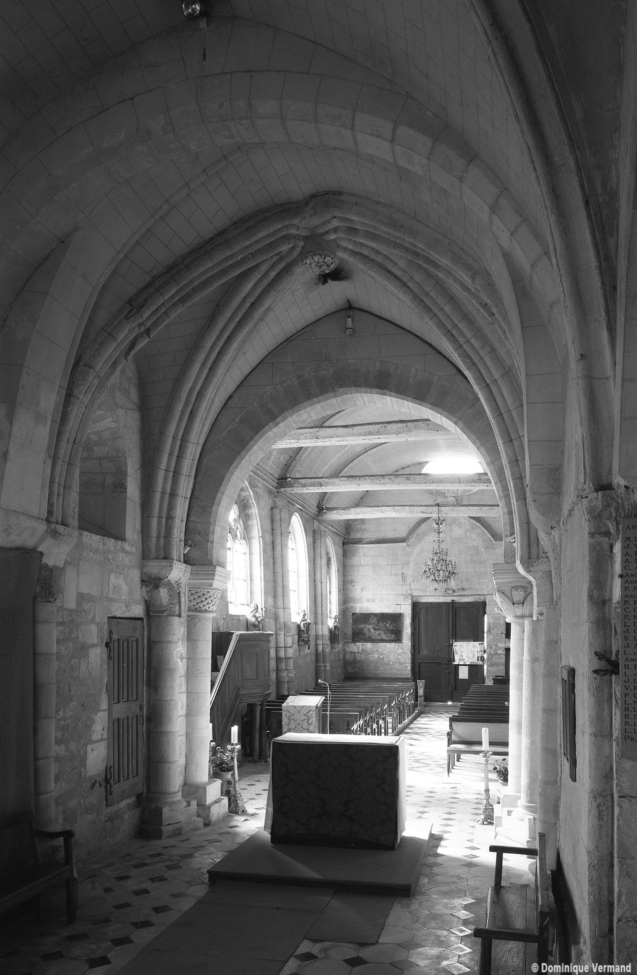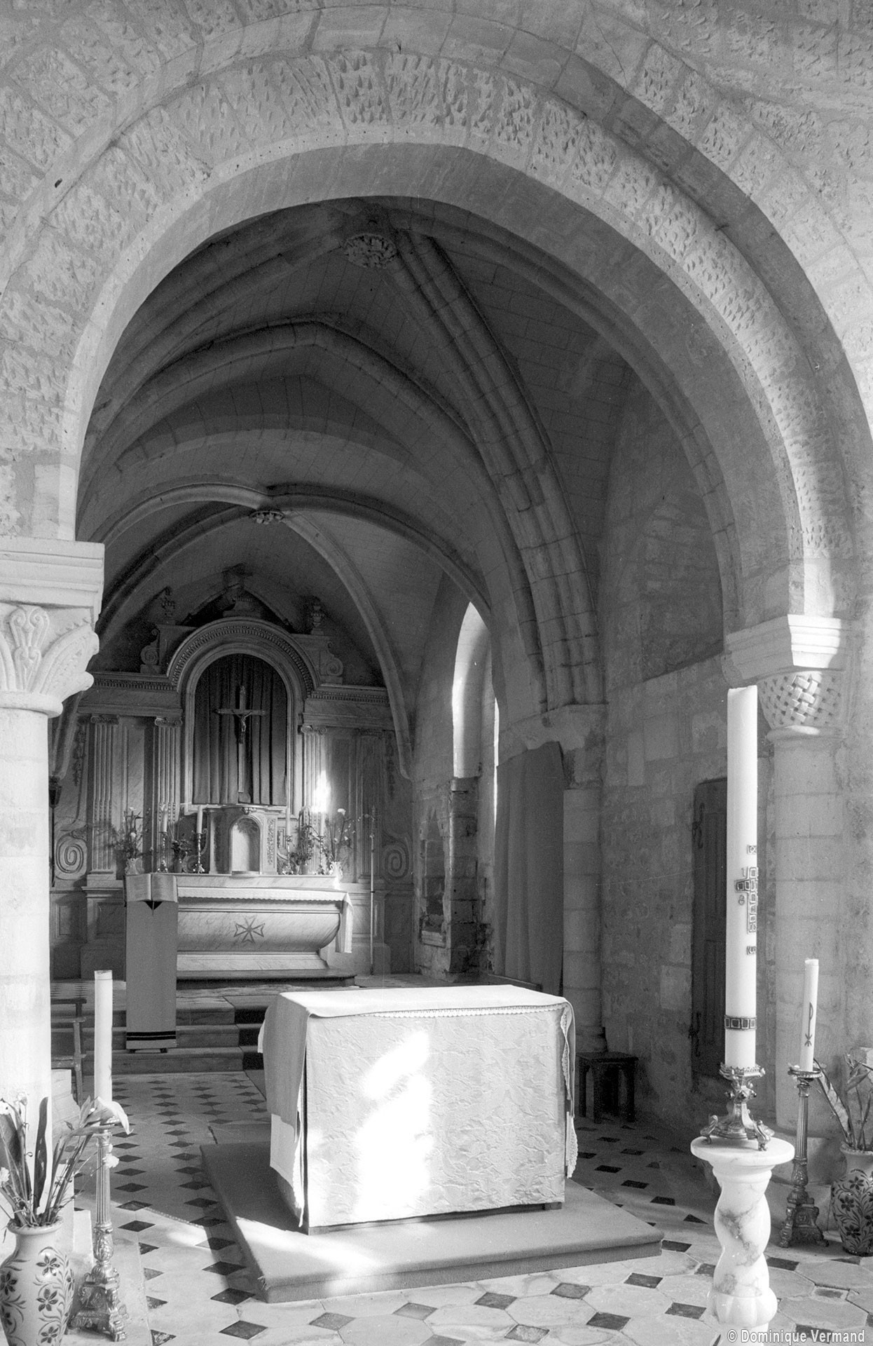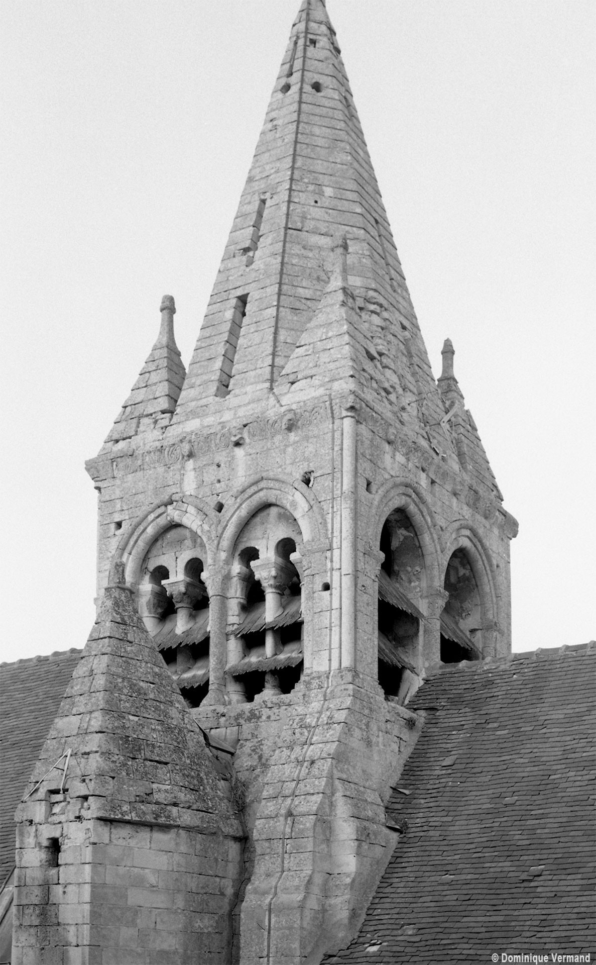L’église du début du 12ème siècle comprenait, comme à Saint-Vaast-de-Longmont, une nef unique, une travée de choeur portant le clocher et une abside en hémicycle aujourd’hui disparue. A peine achevée, la travée du clocher était voûtée d’ogives comme le prouvent les colonnes relancées dans les maçonneries portant la tour. Les voûtains ont été refaits – ils étaient autrefois très inclinés – mais les ogives sont bonnes et la maladresse avec laquelle elles ont été appareillées comme leur largeur considérable incitent à dater cette voûte des années 1120, ce que confirment les deux chapiteaux conservés, dont un se retrouve d’ailleurs très semblable dans le choeur contemporain de Morienval.