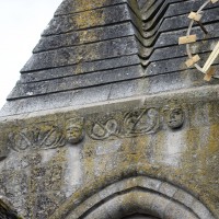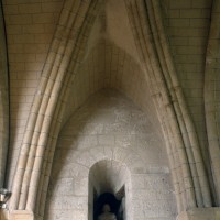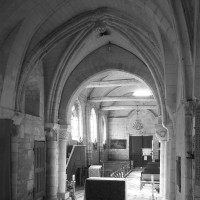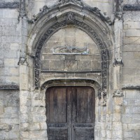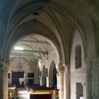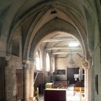 Par suite du succès du pèlerinage, l’église fut agrandie vers la fin du 14ème siècle avec la reconstruction du choeur, doublé en outre vers le nord pour répondre à un bas-côté établi dès le 12ème siècle comme l’attestent les arcades subsistantes. Malheureusement bouchées, les deux fenêtres situées à l’est témoignent d’une précoce et timide apparition de formes flamboyantes. Aux 15ème et 16ème siècles, une seconde nef, dédiée à saint Jean-Baptiste, est établie à l’emplacement de ce bas-côté et la nef romane est dotée d’une nouvelle façade et de larges fenêtres à réseau flamboyant.