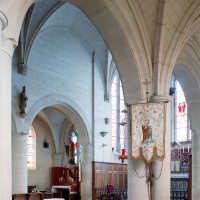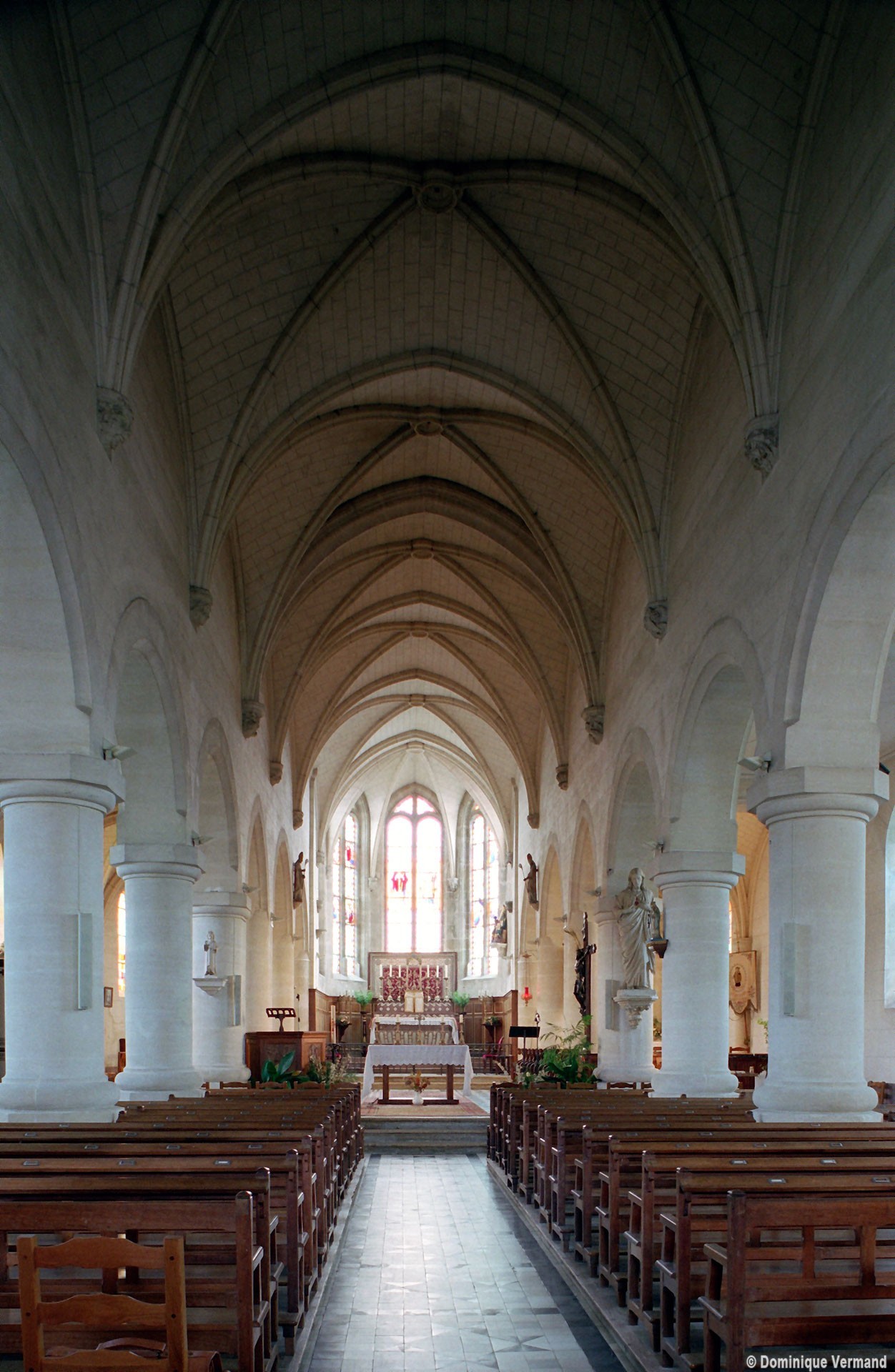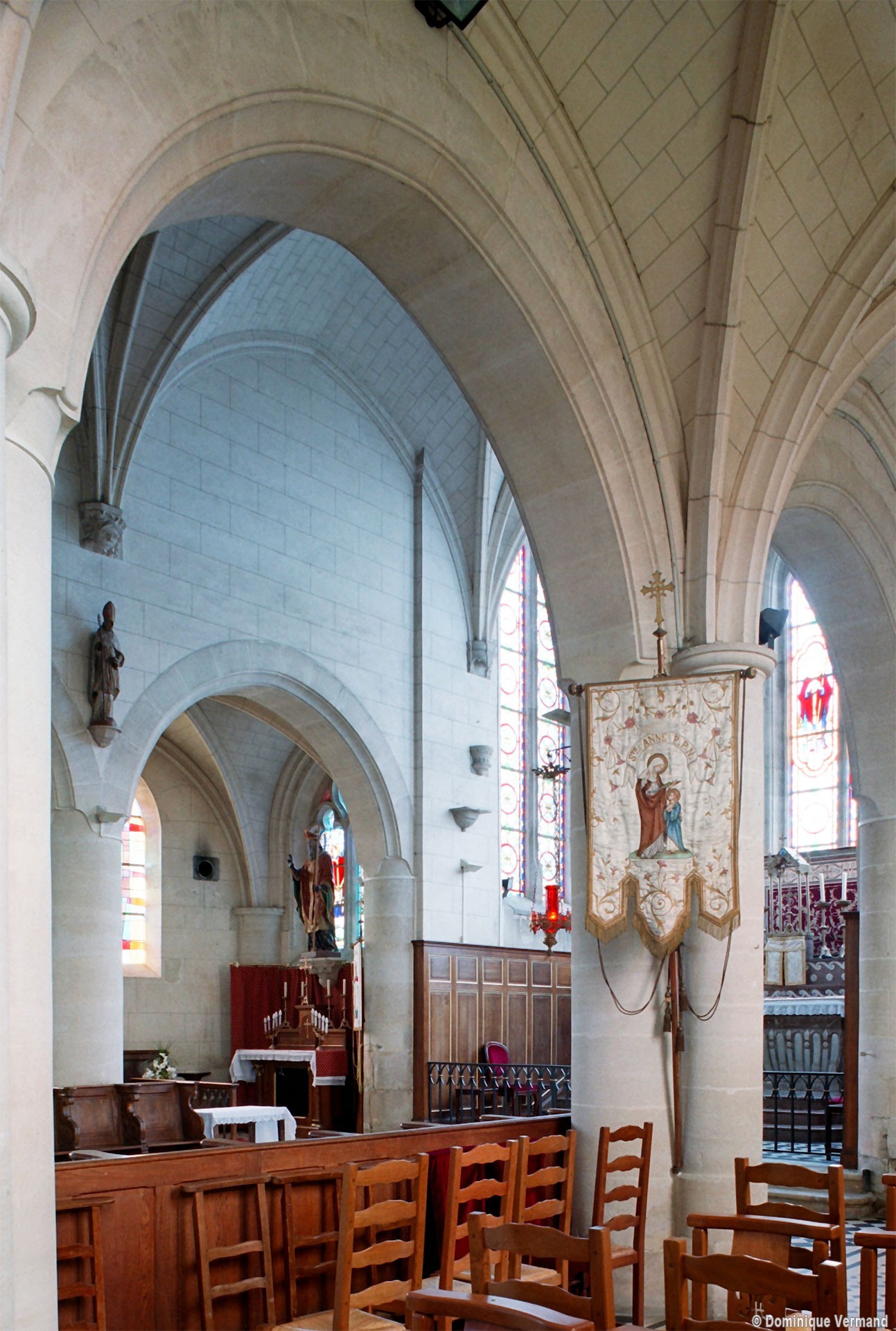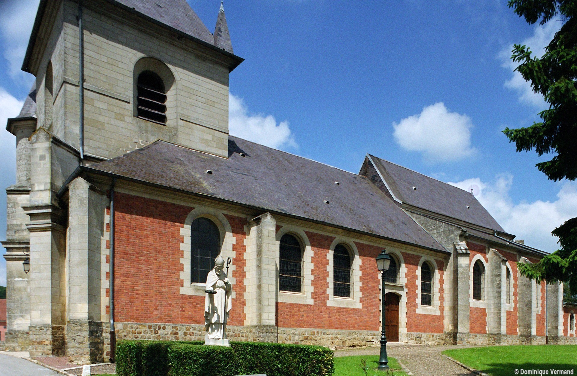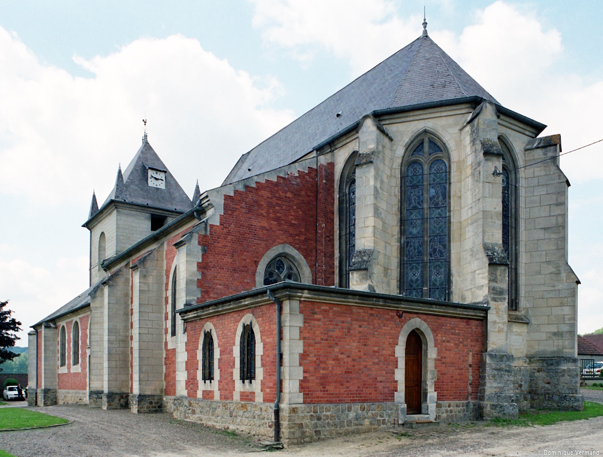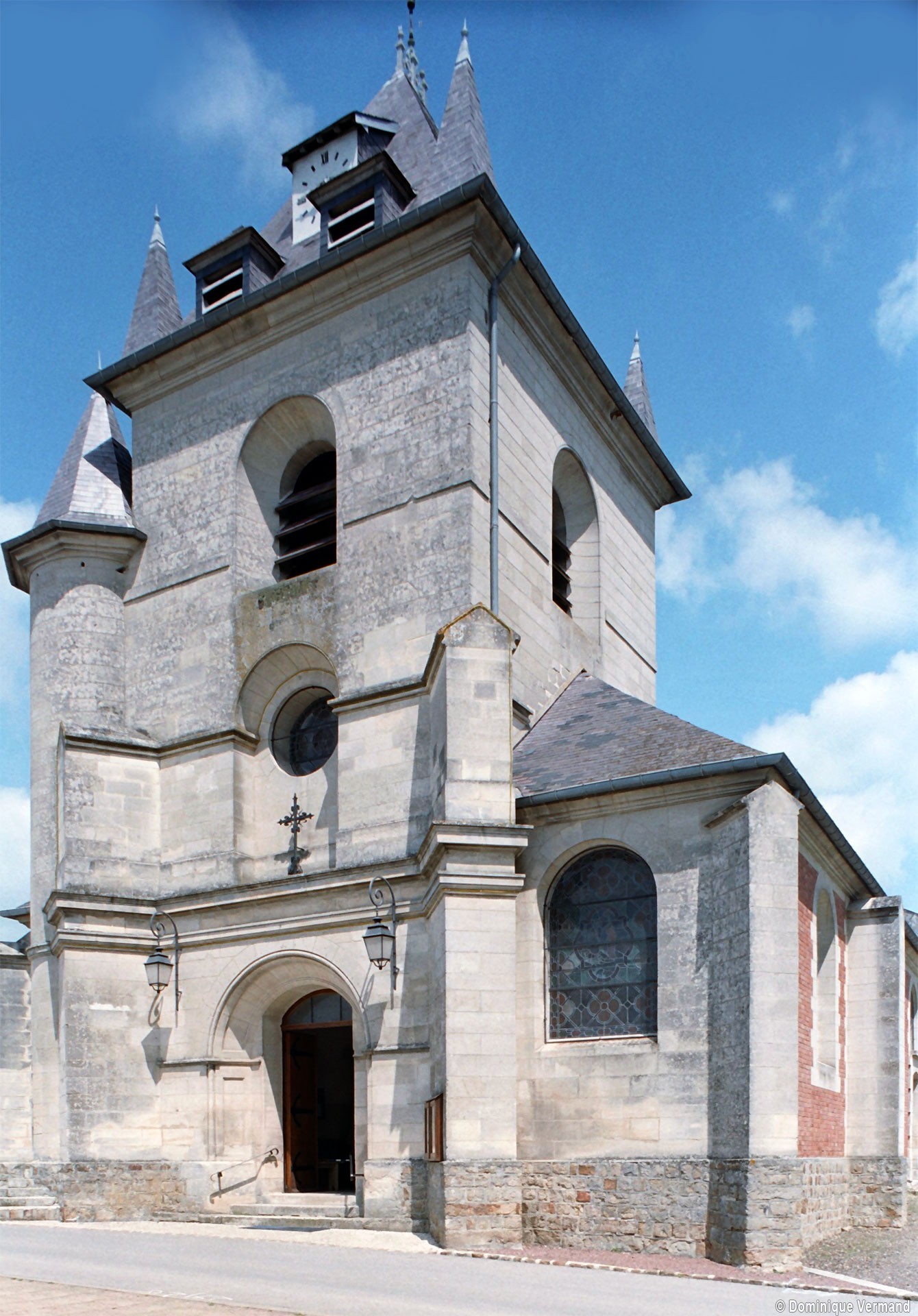 Presque totalement détruite en 1918, l’église paroissiale a été rebâtie à l’identique. Dominée par un puissant clocher porche évoquant le précédent, qui avait été construit en 1619, elle comporte une nef de quatre travées, avec bas-côtés, et un long choeur de trois travées, également avec bas-côtés, qui s’achève par une abside pentagonale. Le choeur était la partie la plus ancienne et appartenait au 16ème siècle.
