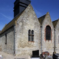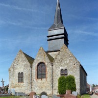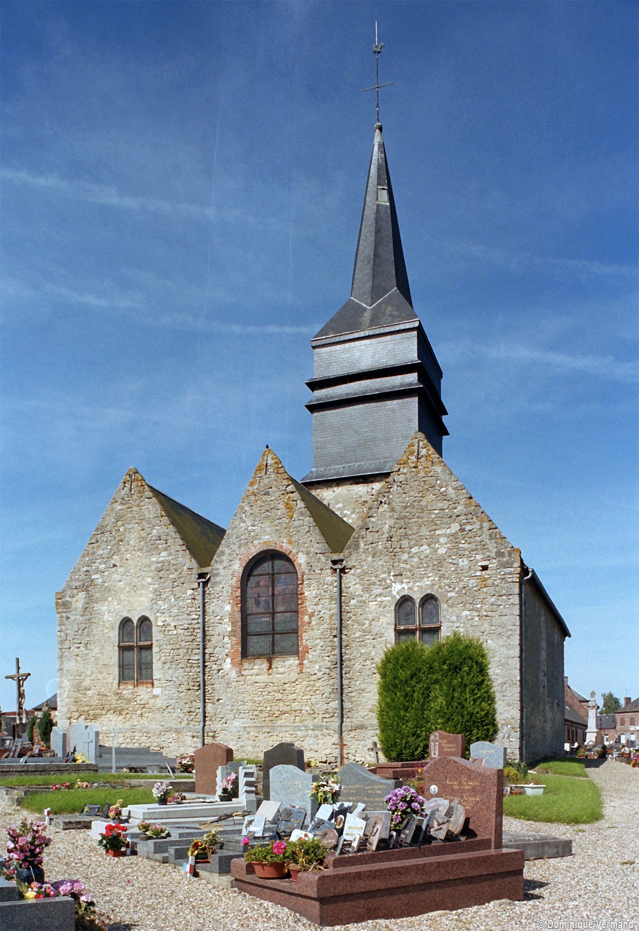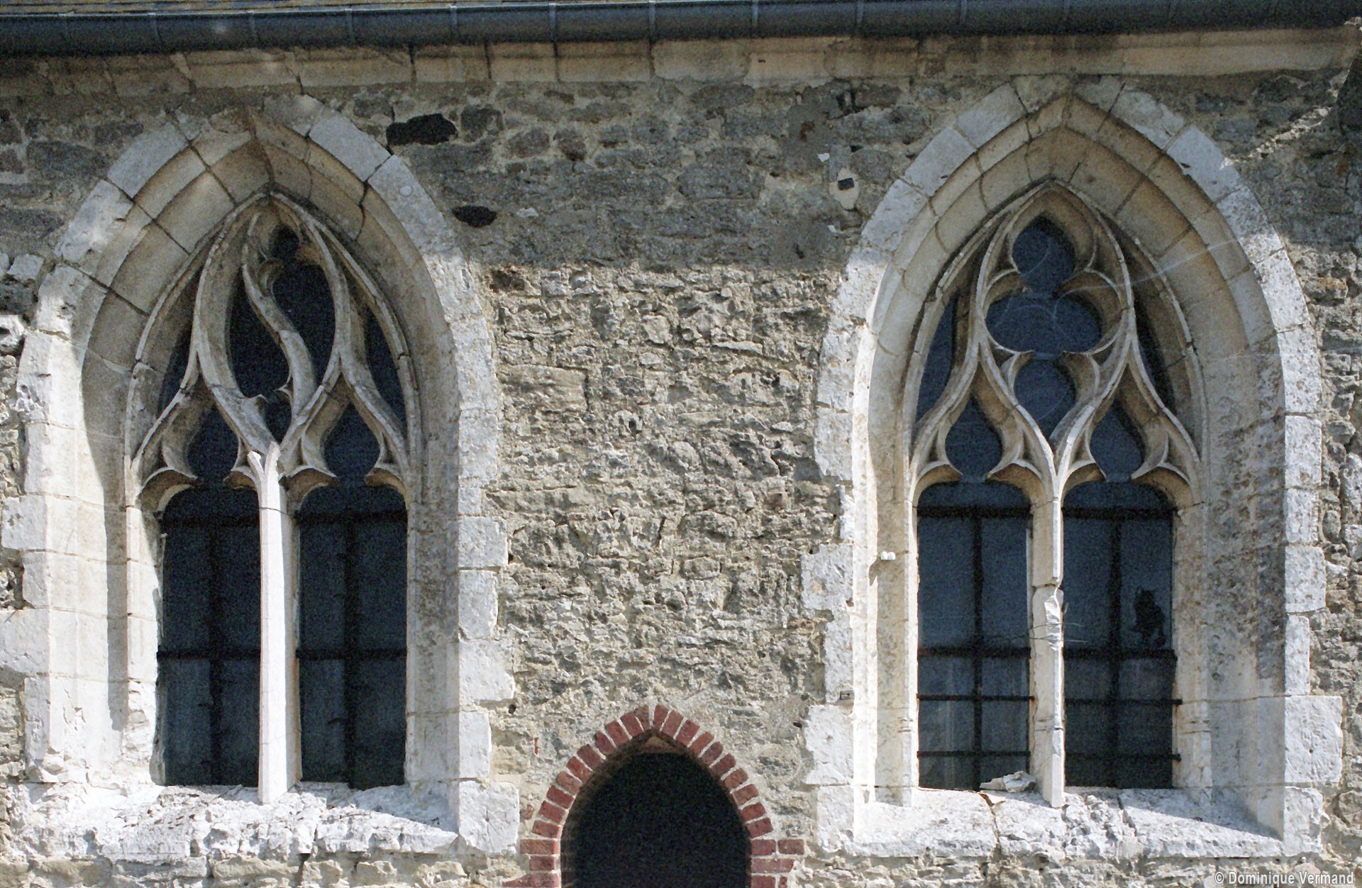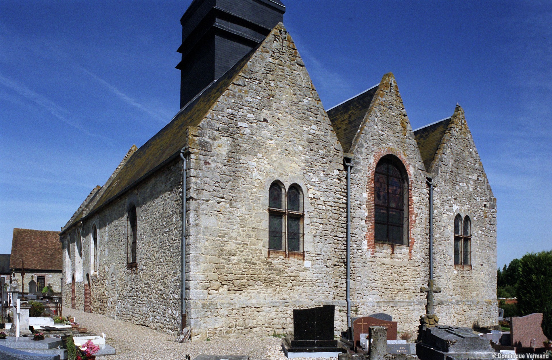 Tout au plus peut-on suggérer que le transept est d’origine ancienne et que sa croisée formait peut-être lanterne car un étage en maçonnerie avec fenêtres en plein cintre subsiste au-dessus. Il sert de base à l’actuel clocher en charpente et ardoises. Le choeur qui faisait suite a dû être allongé lorsque furent construites les deux chapelles qui le flanquent de chaque côté. Bien que très refaites, les deux fenêtres qui éclairent celles-ci à l’est sont d’un type – une double lancette recoupée par un meneau horizontal – qui se retrouve à Hodenc-en-Bray et Hannaches et sont, peut-être, du 14ème siècle. Dédiée à saint Prix, la chapelle nord était réservée au châtelain de Goulancourt tandis que celle du sud, consacrée à saint Nicolas, était celle du seigneur de la paroisse.