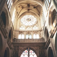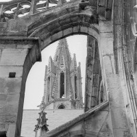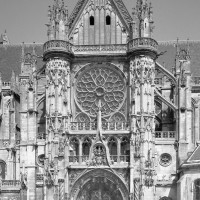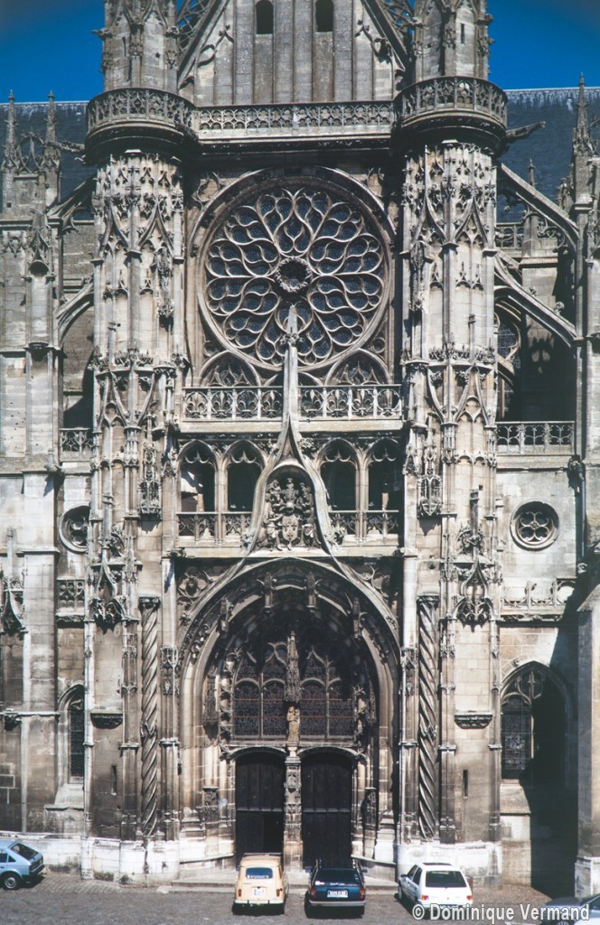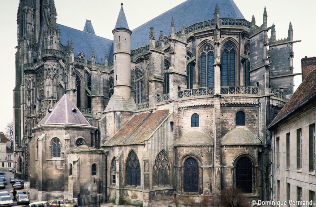 De dimensions relativement modestes, la cathédrale Notre-Dame a été commencée vers 1153 et était pratiquement achevée lors de la consécration de 1191. Elle sera profondément remaniée aux 13ème et 16ème siècles. Si elle ne possède donc pas l’harmonieuse homogénéité de Noyon ou de Laon, ses contemporaines, ou le gigantisme de Paris, Chartres, Reims ou Amiens, elle n’en reste pas moins un témoin essentiel de l’architecture gothique à ses débuts et de la complexité de ses sources, dont elle a su réaliser une synthèse harmonieuse et cohérente. Si l’on ajoute que son portail occidental est l’un des chefs d’oeuvre de la sculpture gothique du 12ème siècle, que la flèche bâtie au milieu du 13ème siècle n’a pas son pareil en terme de hardiesse et d’élégance et, enfin, que le transept reconstruit par Martin Chambiges au 16ème siècle compte parmi les oeuvres exemplaires de son époque, on conviendra que la cathédrale Notre-Dame est bien l’édifice majeur que commandait l’importance de Senlis au Moyen Age.