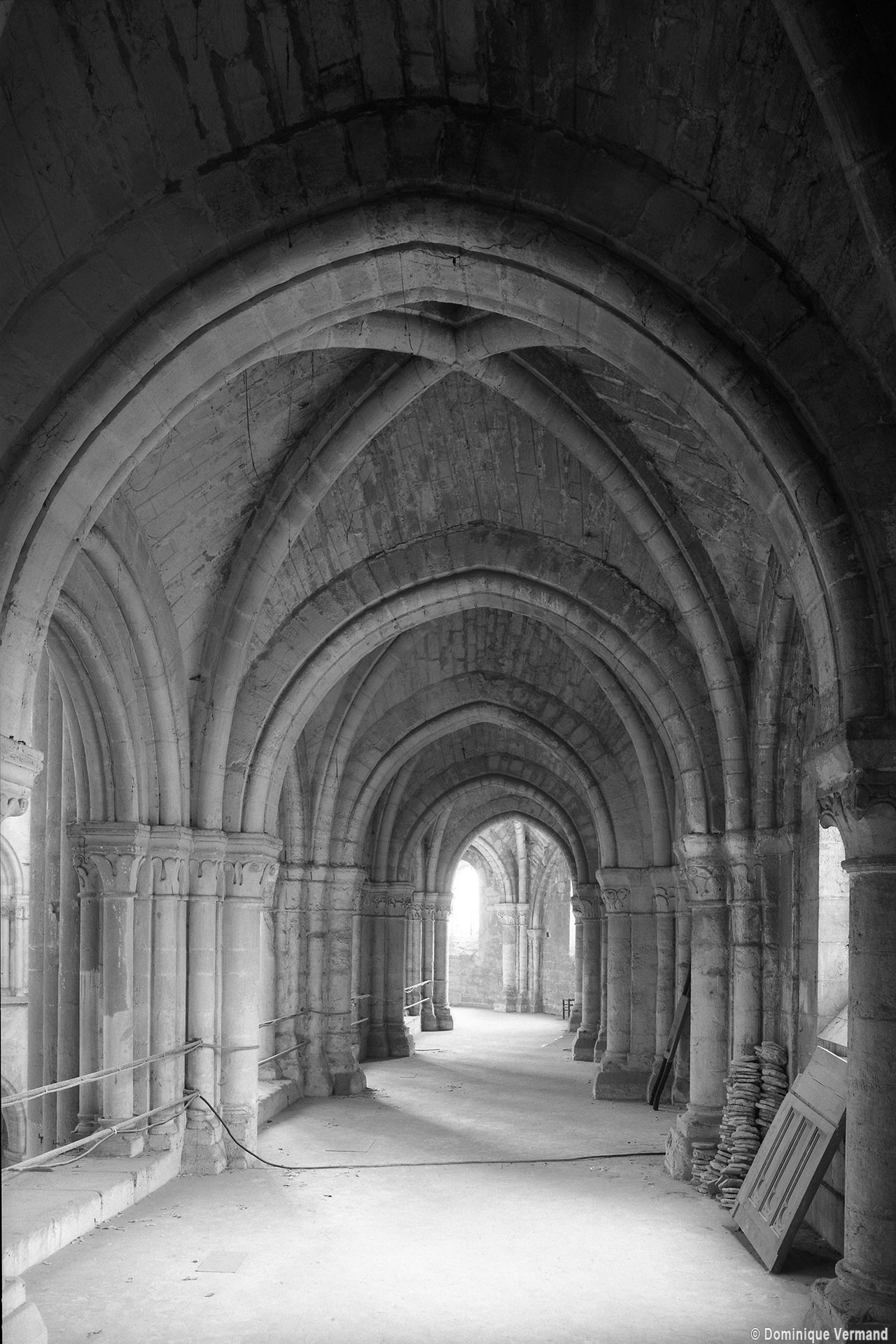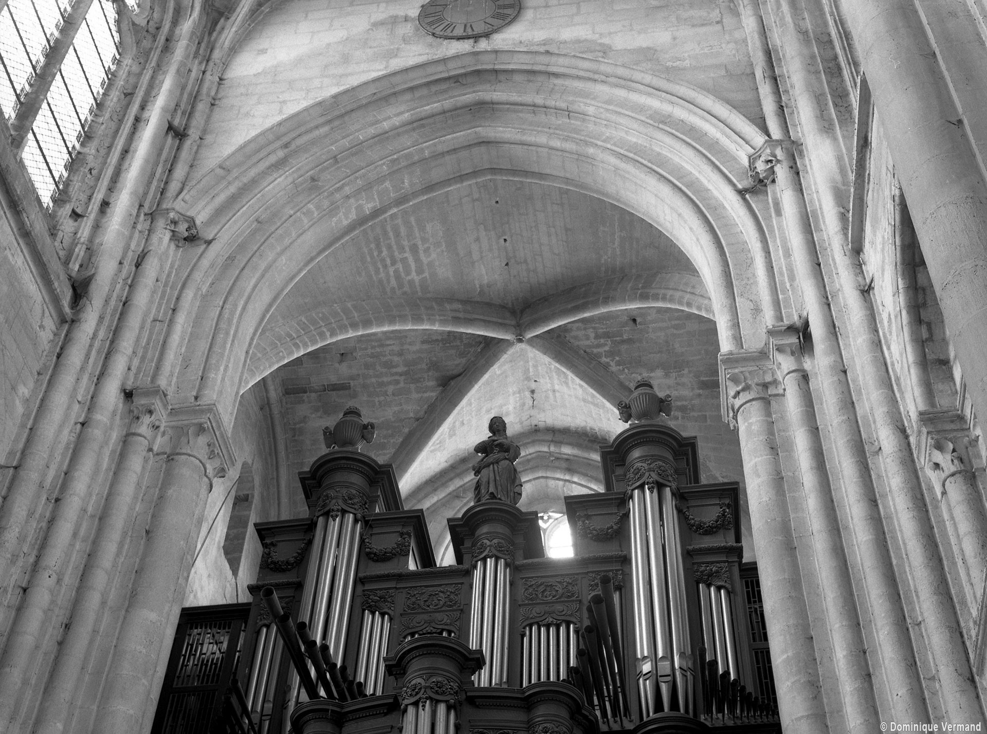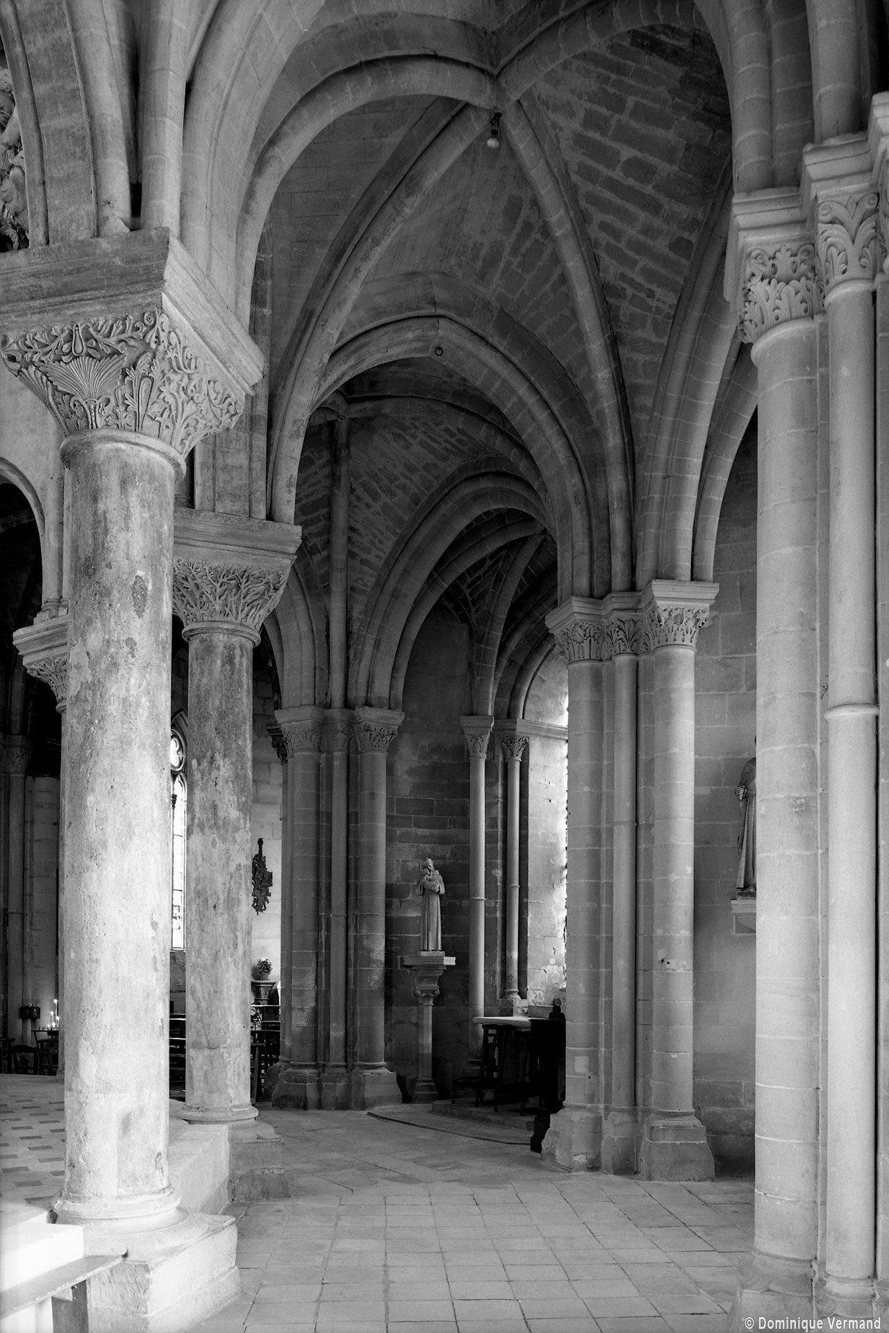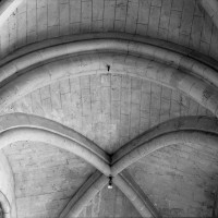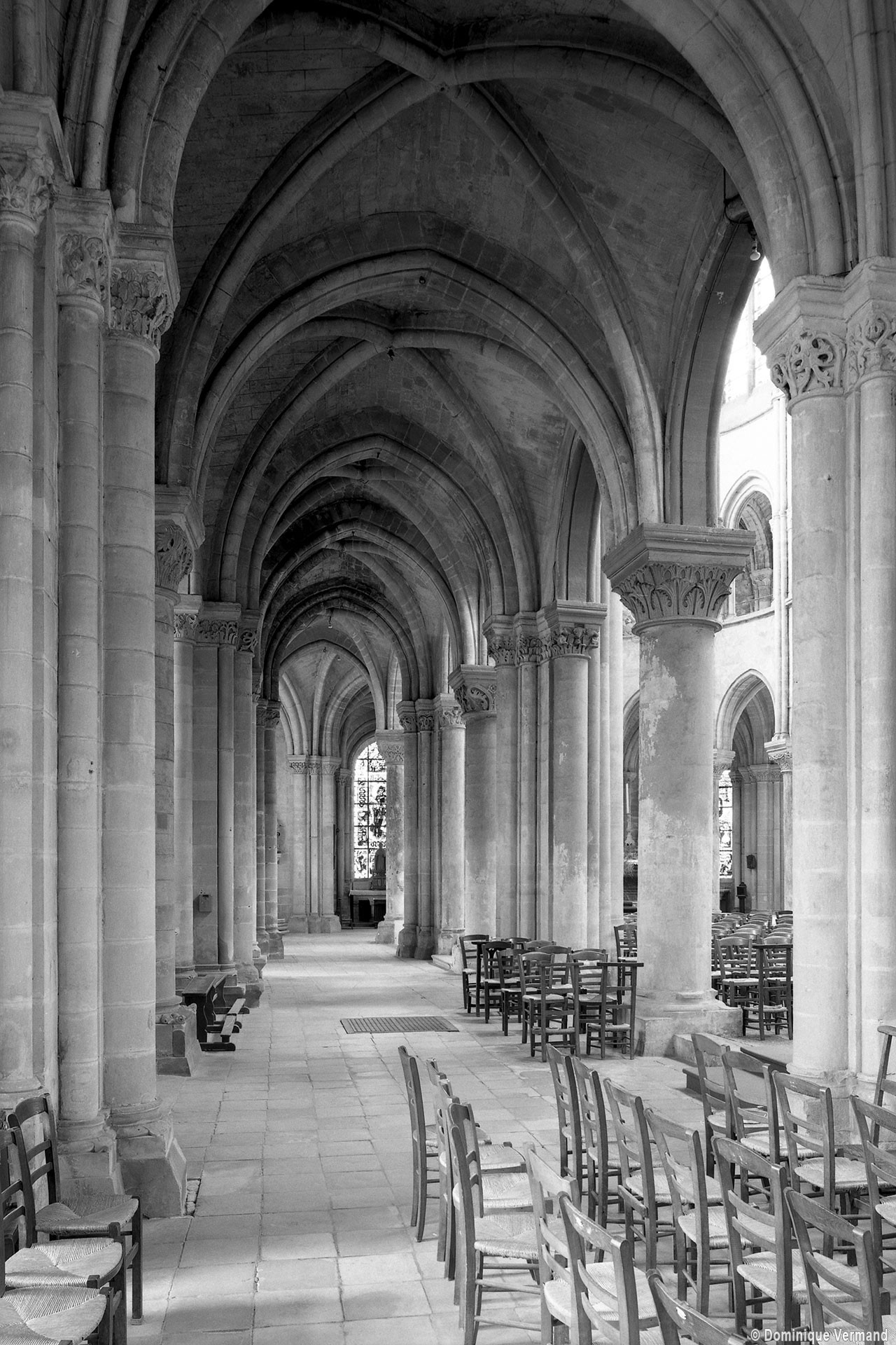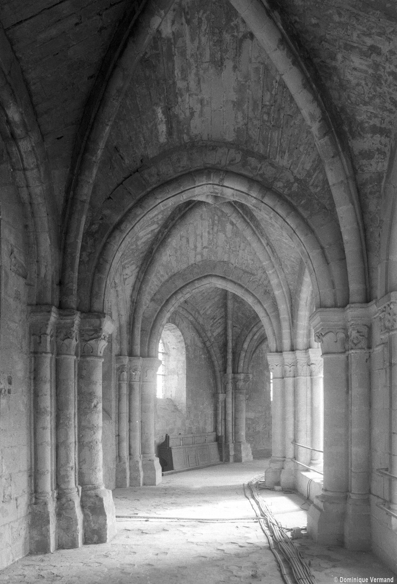 Si l’on excepte les trois premières travées, dotées de piles plus fortes – en raison de la présence des tours – et de voûtes quadripartites, la nef s’étendait en une perspective continue de cinq travées double couvertes de voûtes sexpartites en correspondance avec une alternance de piles fortes, composées de colonnes et de colonnettes, et de piles faibles, composées d’une simple colonne. Ce parti se voit encore très bien dans le choeur actuel.