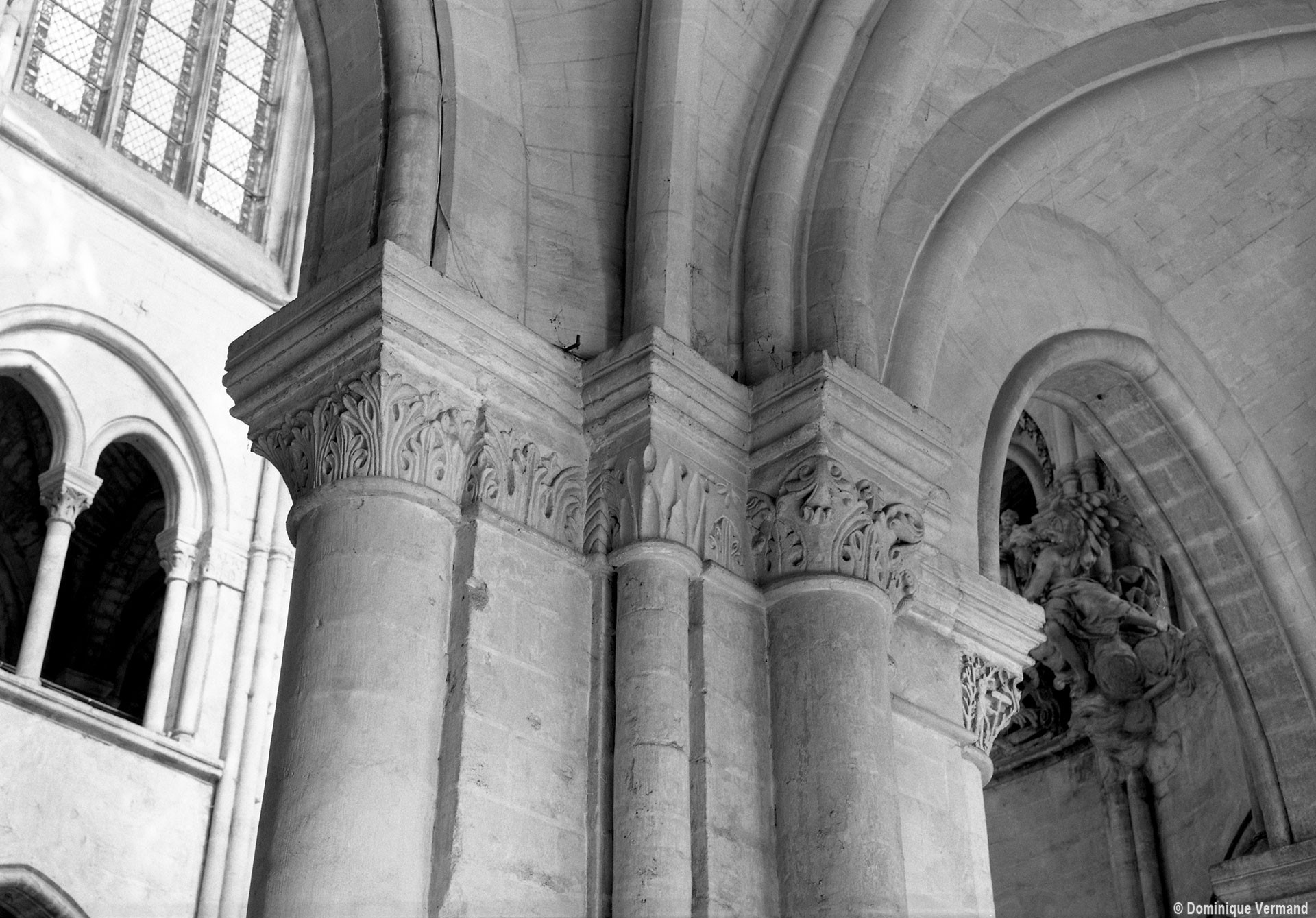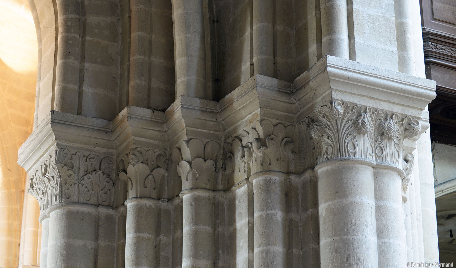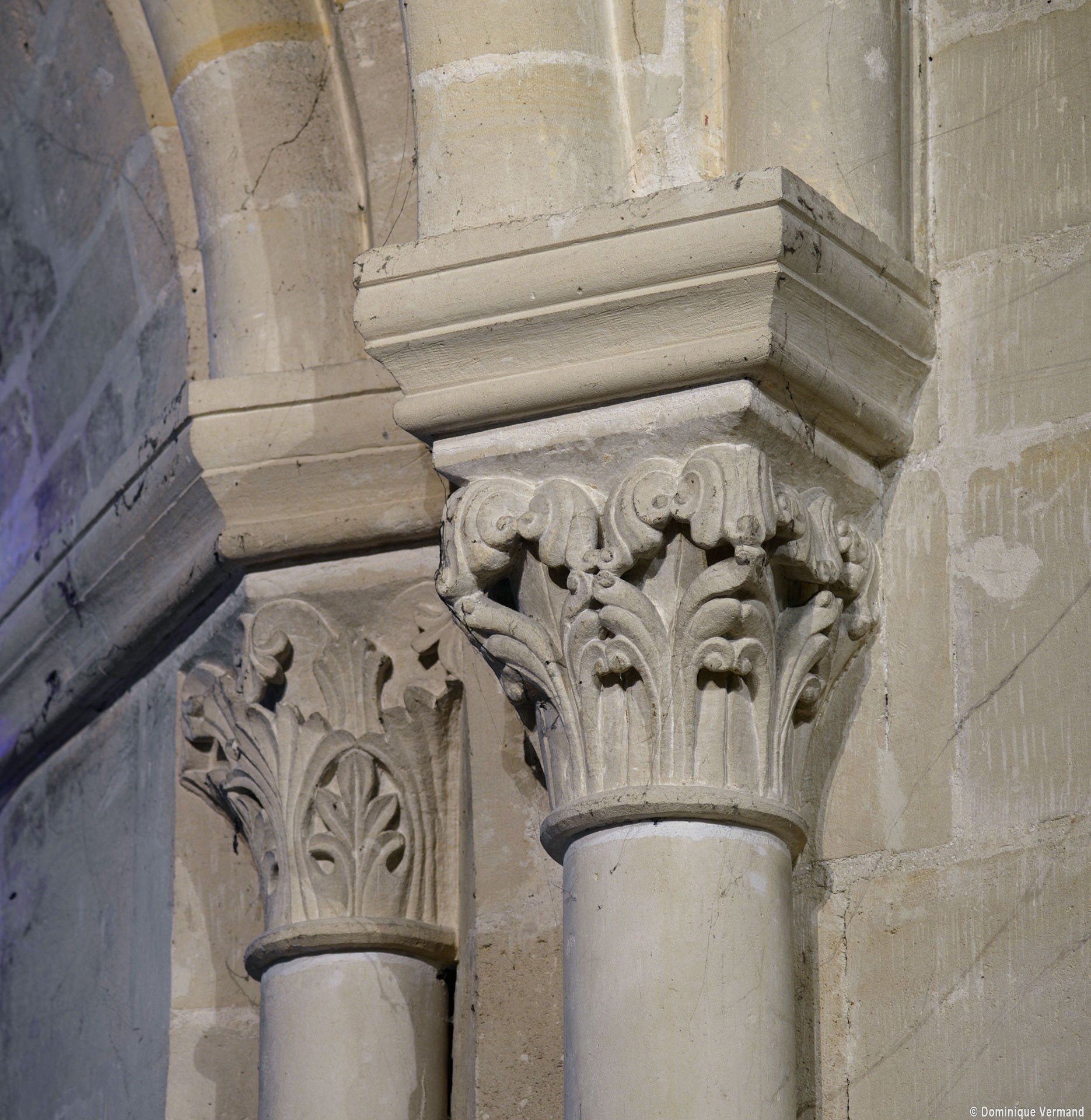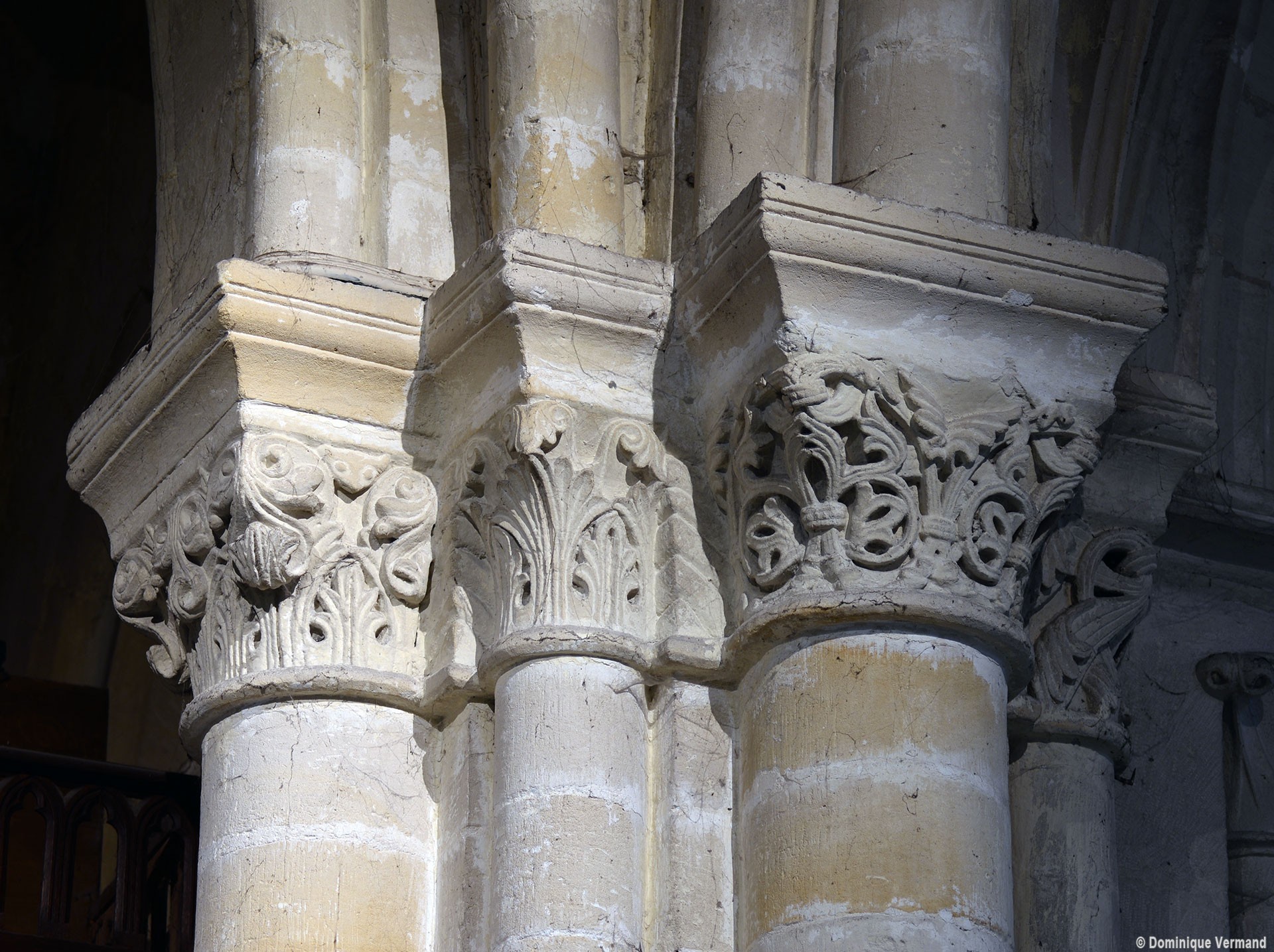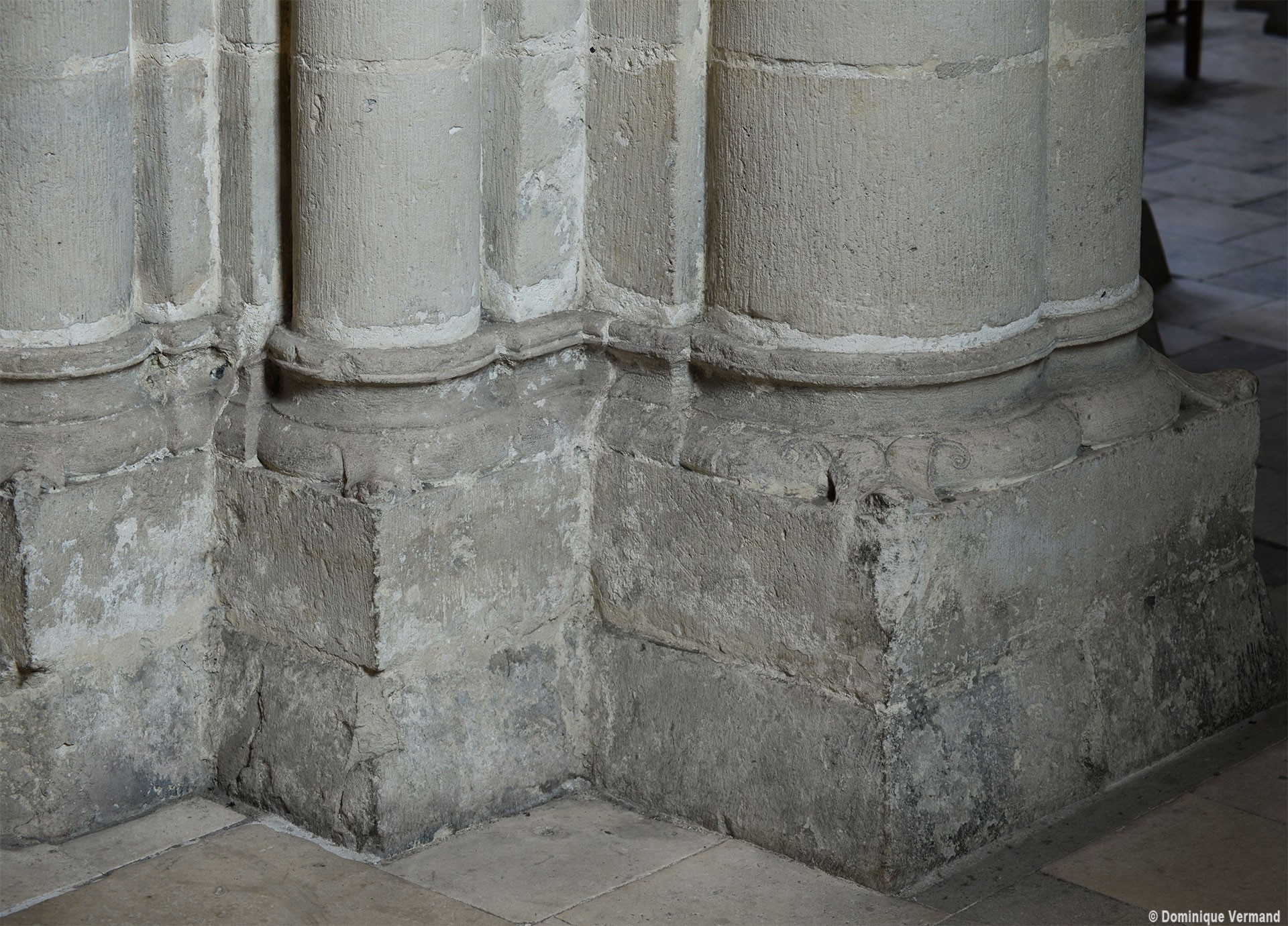 Le choeur du 12ème siècle : les chapiteaux et les bases des parties basses