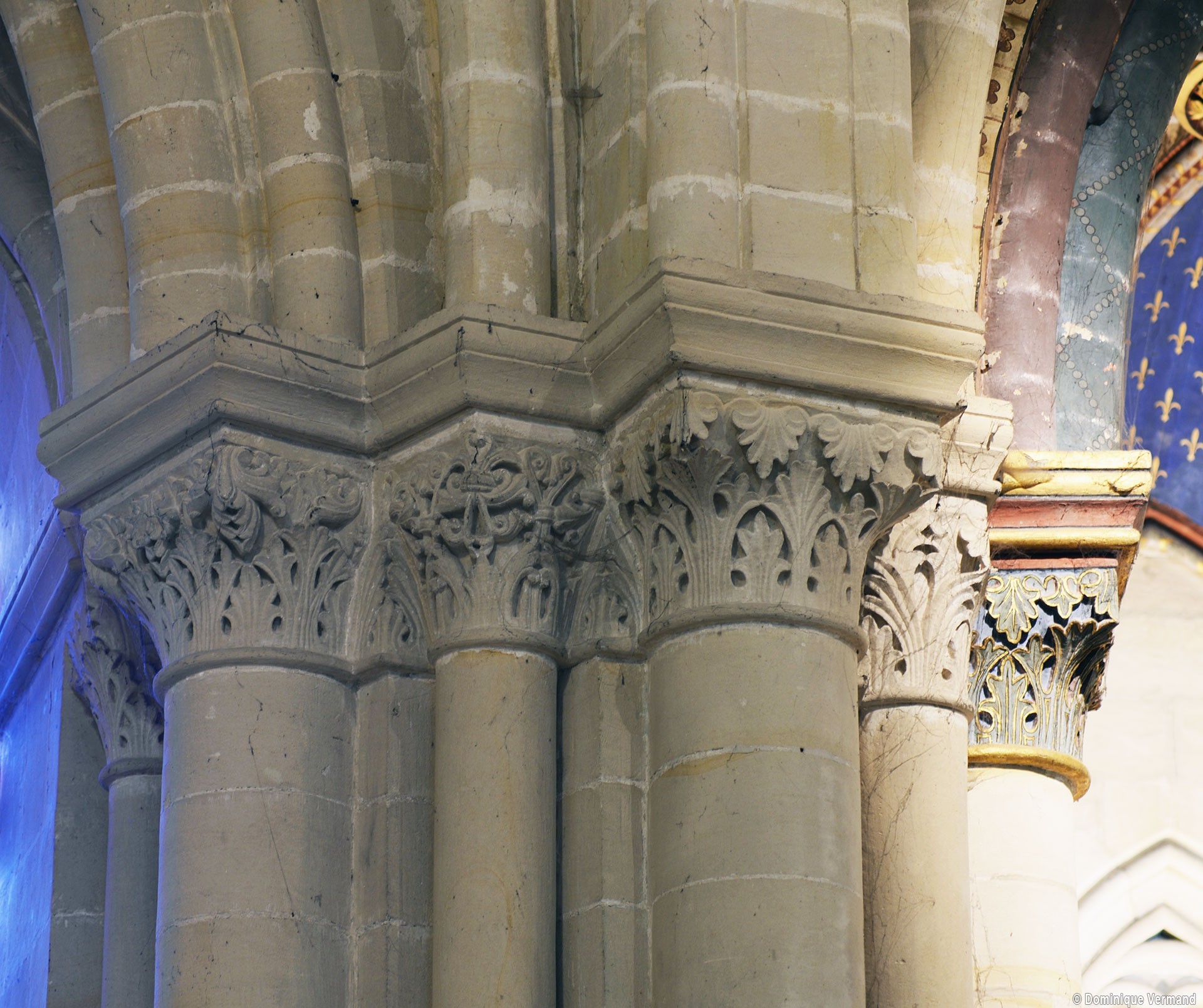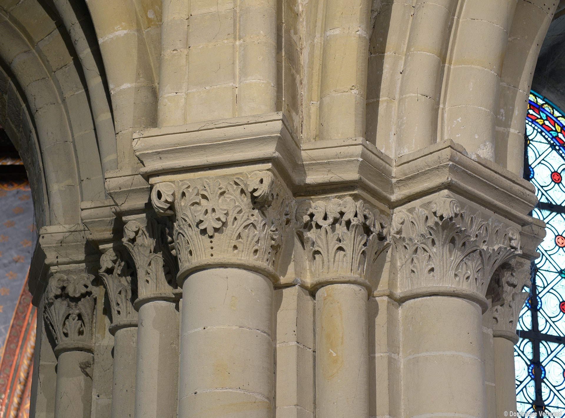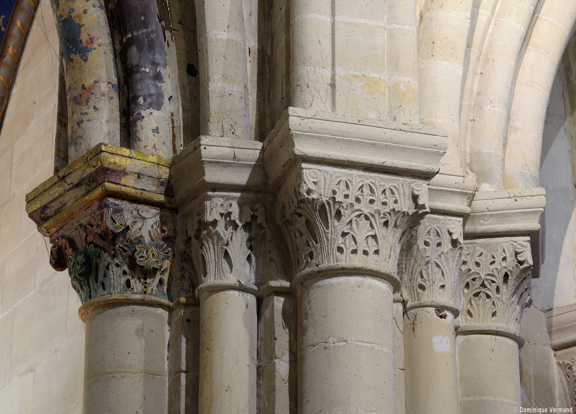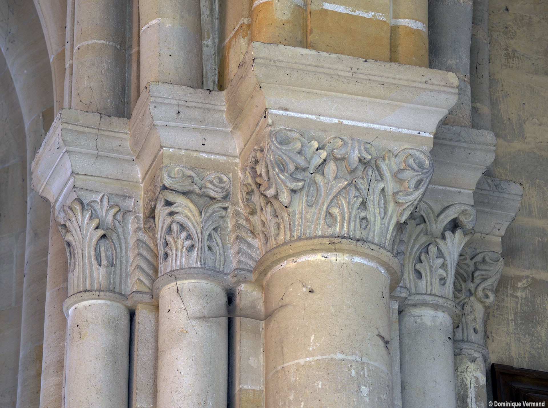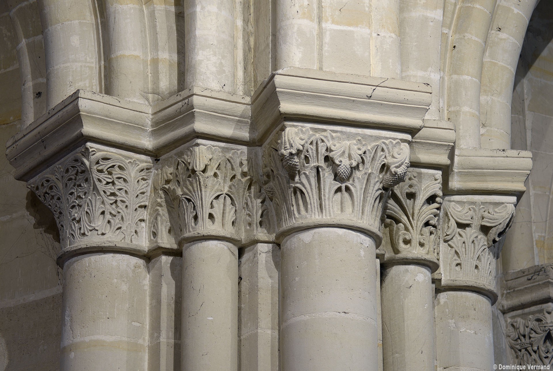 Le choeur du 12ème siècle : les chapiteaux et les bases des parties basses