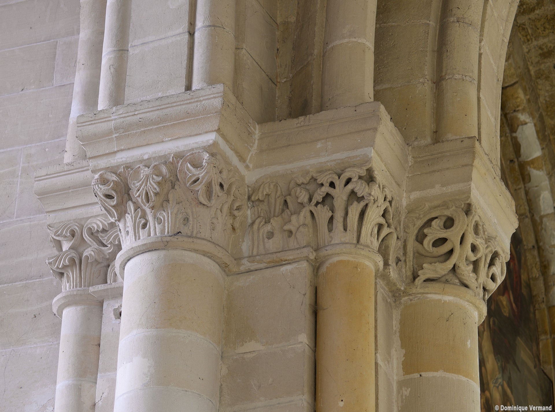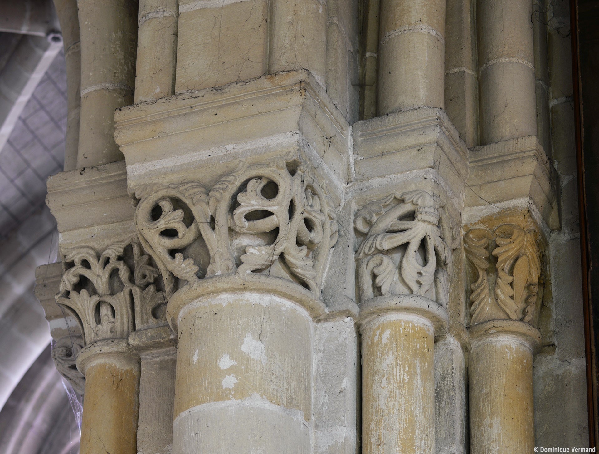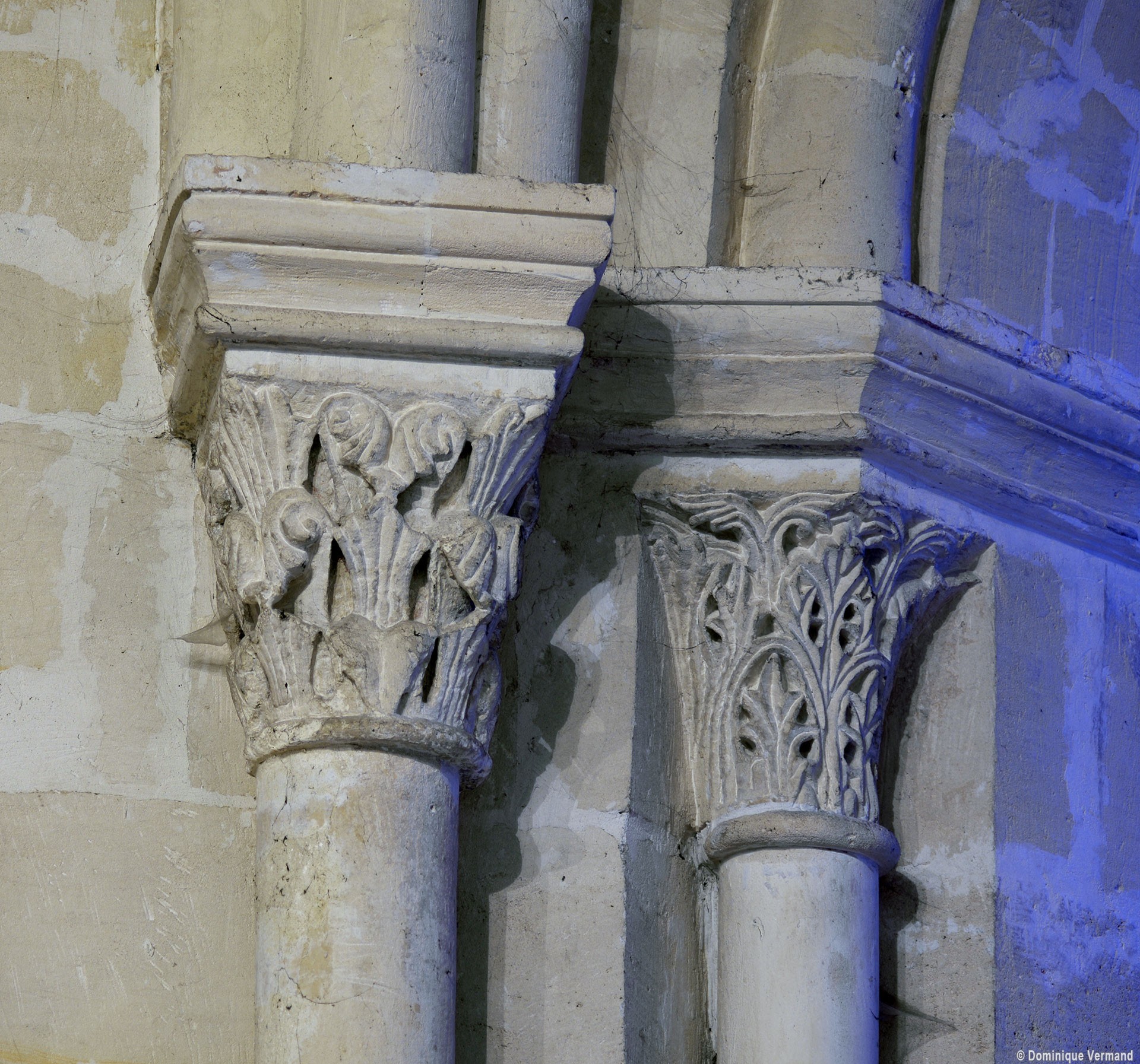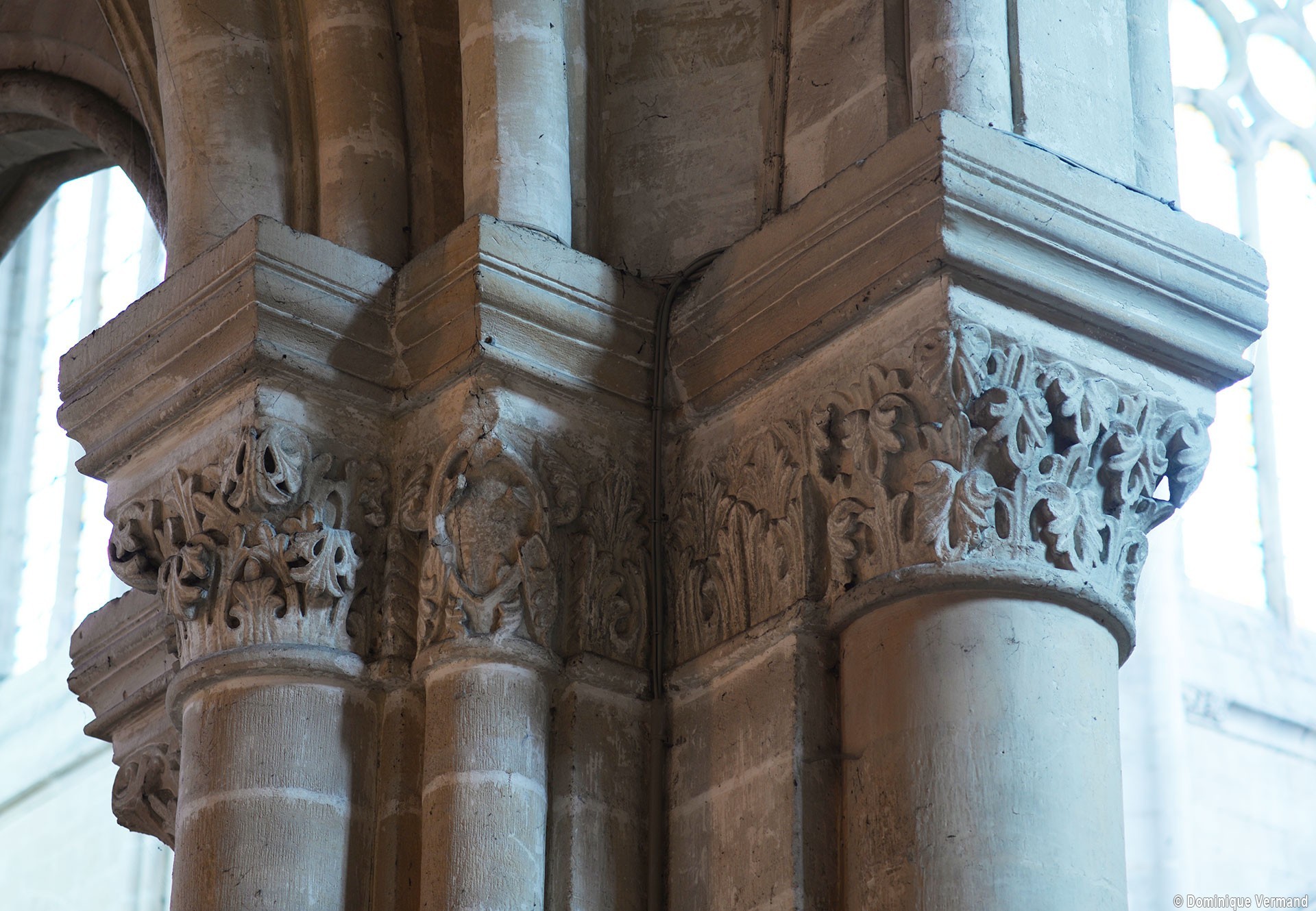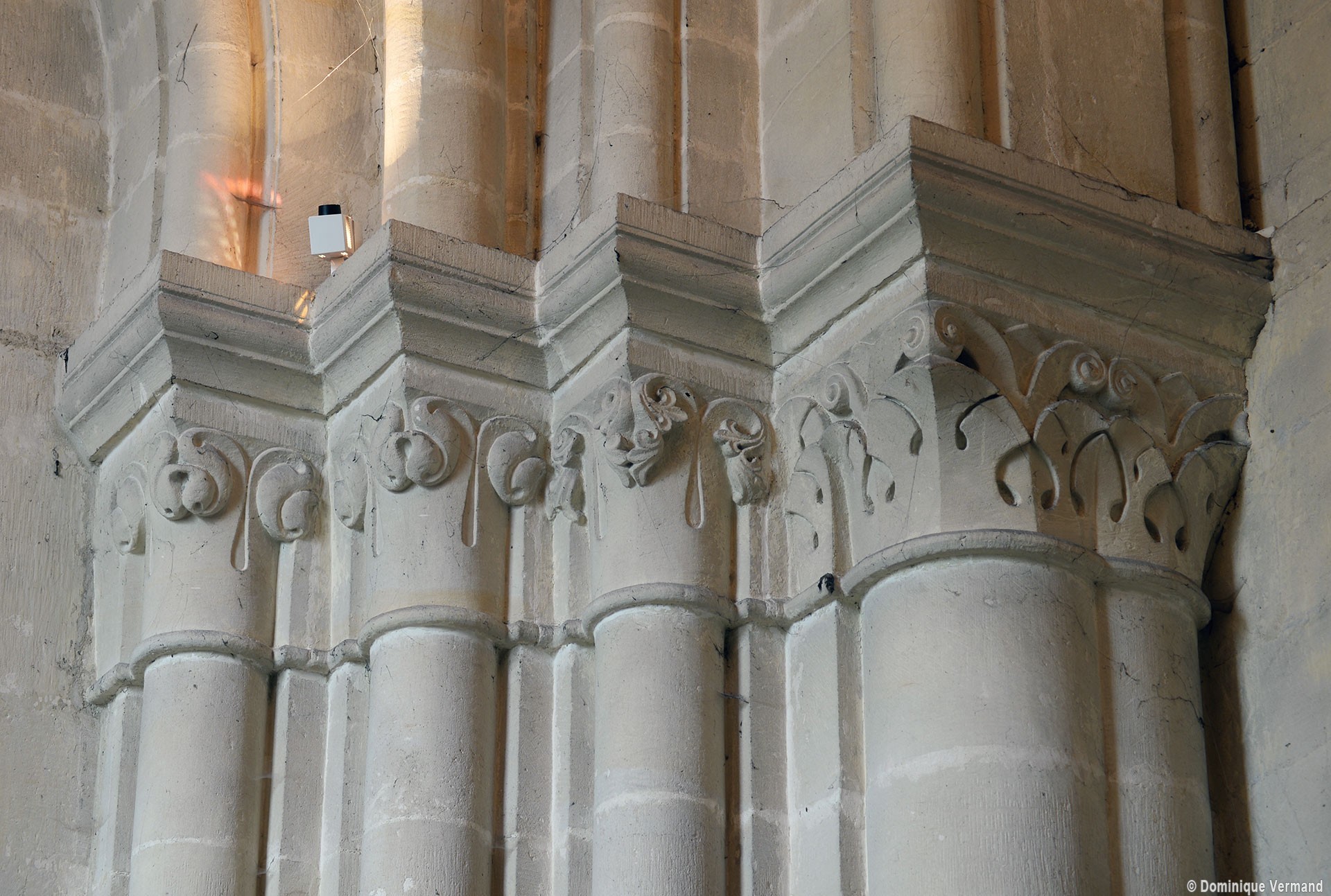 Le choeur du 12ème siècle : les chapiteaux et les bases des parties basses