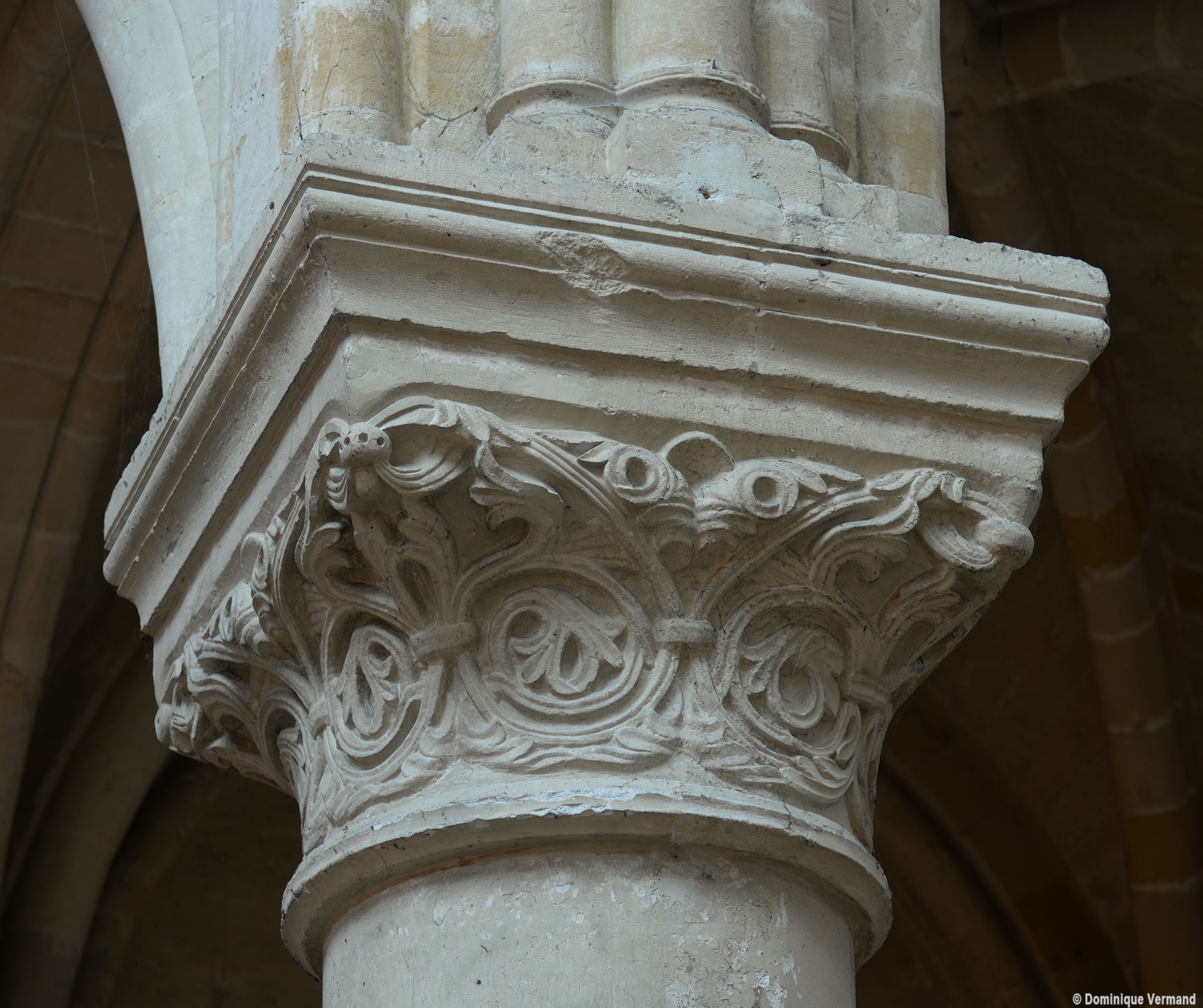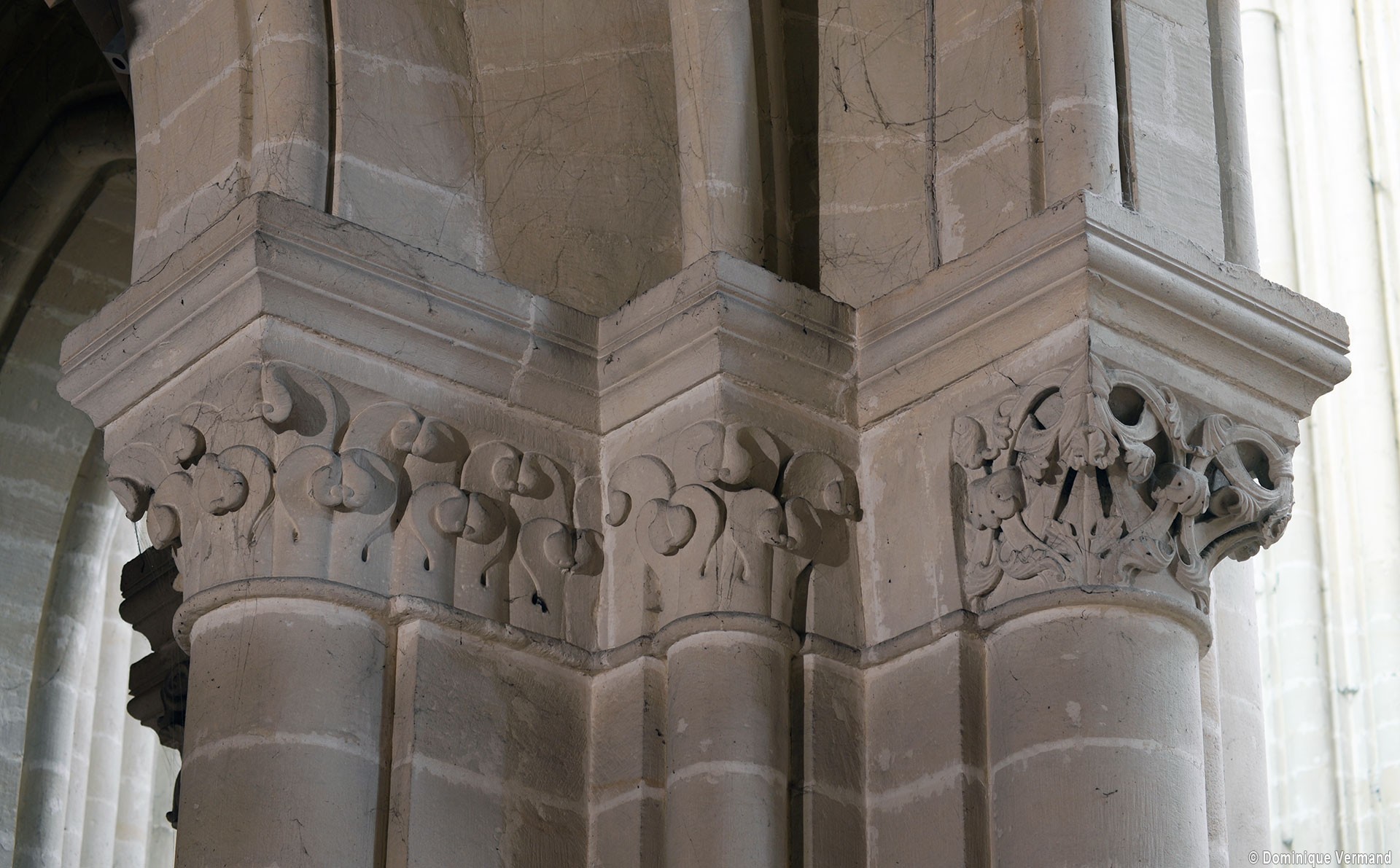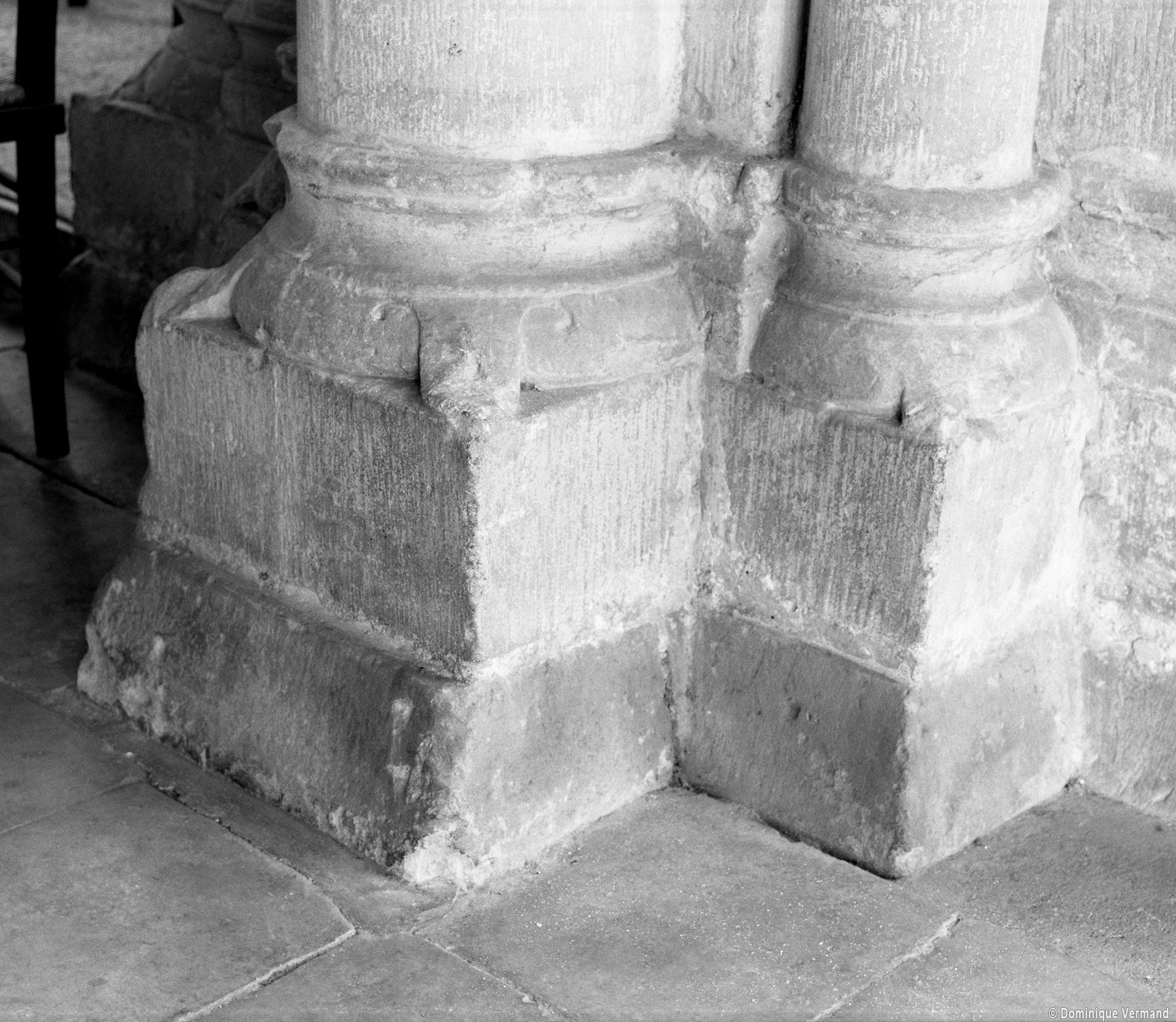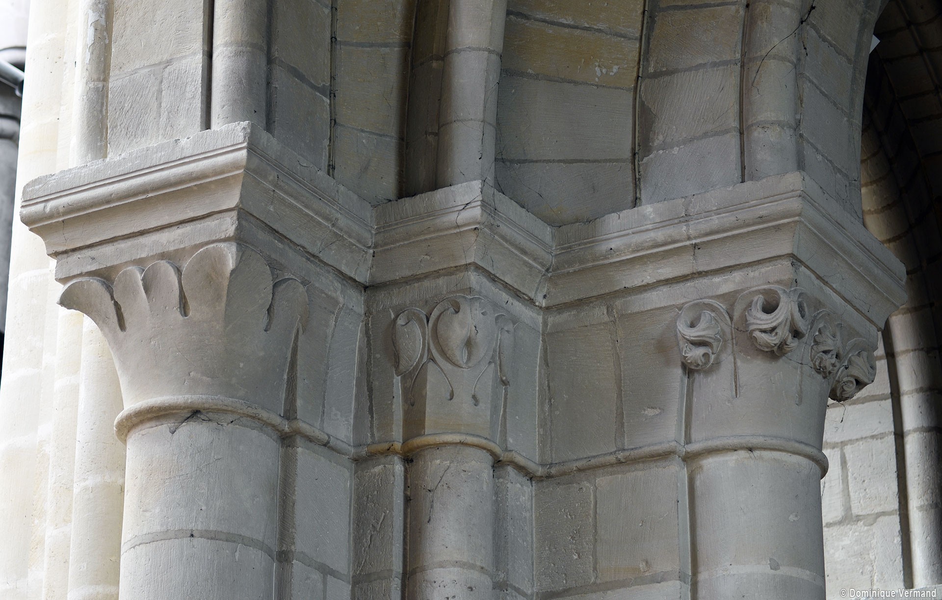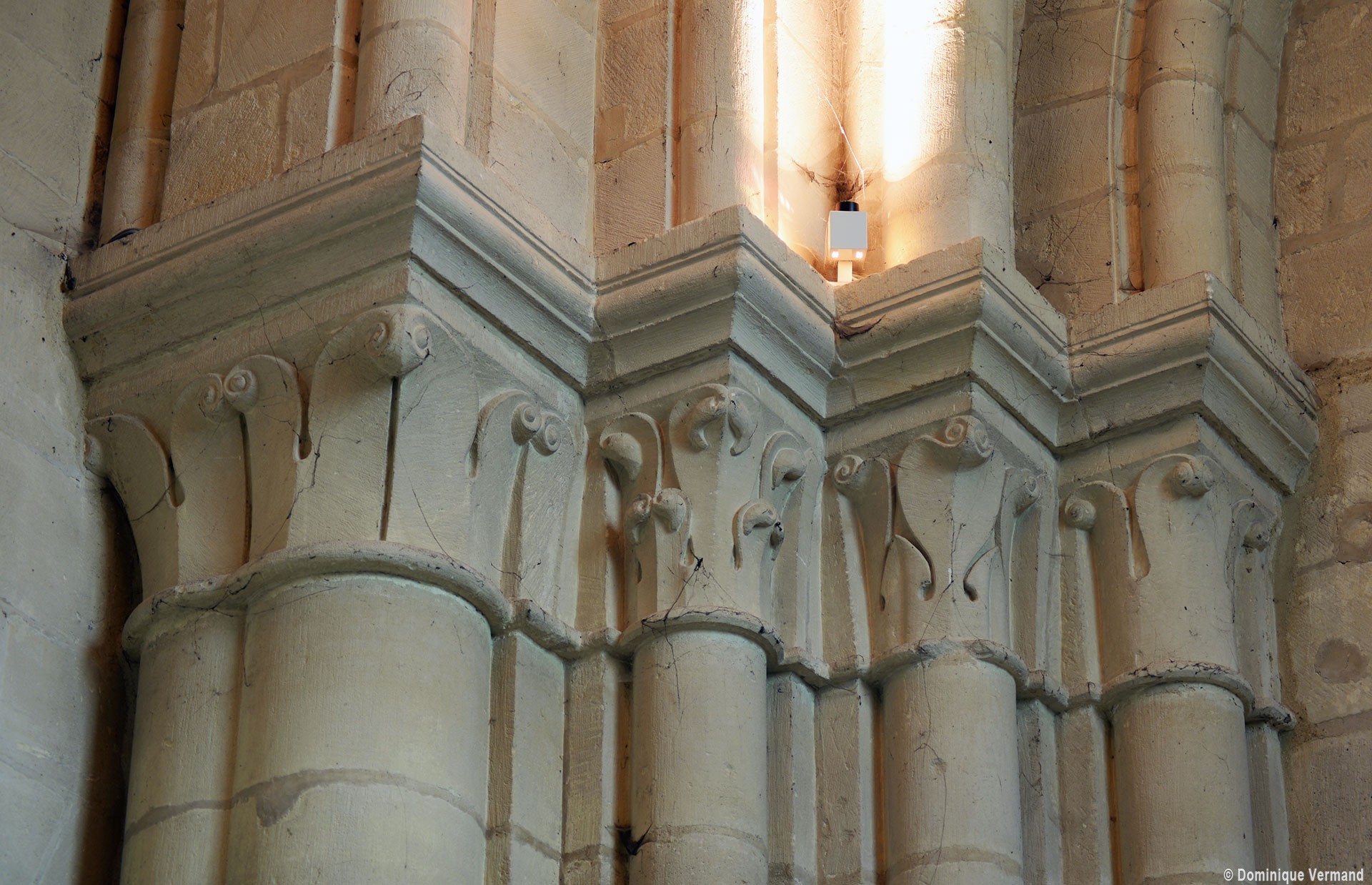 Le choeur du 12ème siècle : les chapiteaux et les bases des parties basses