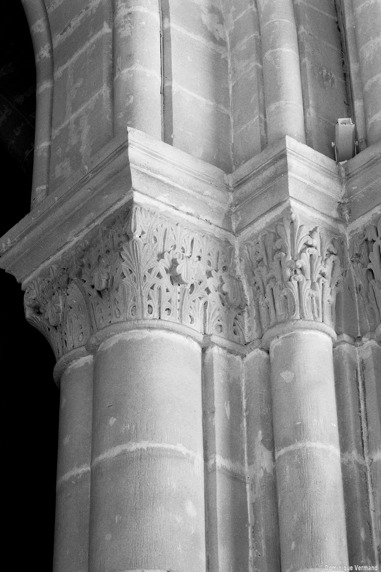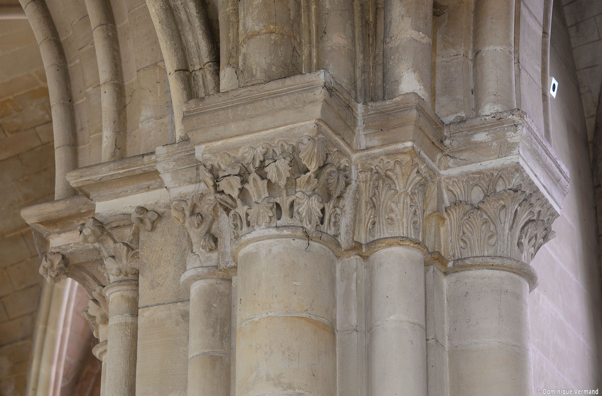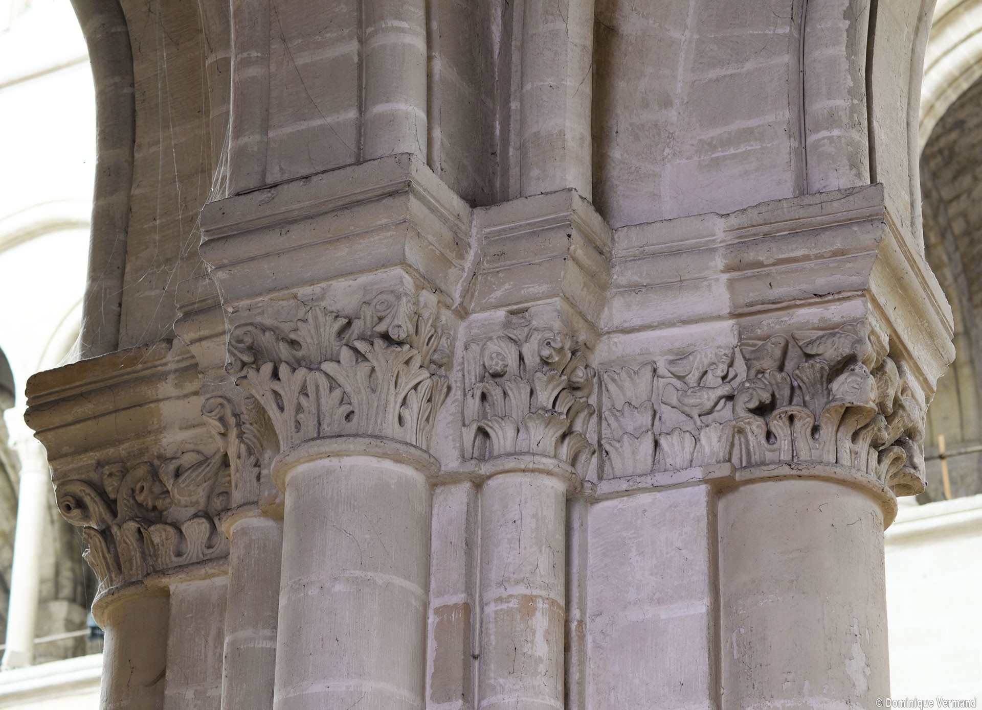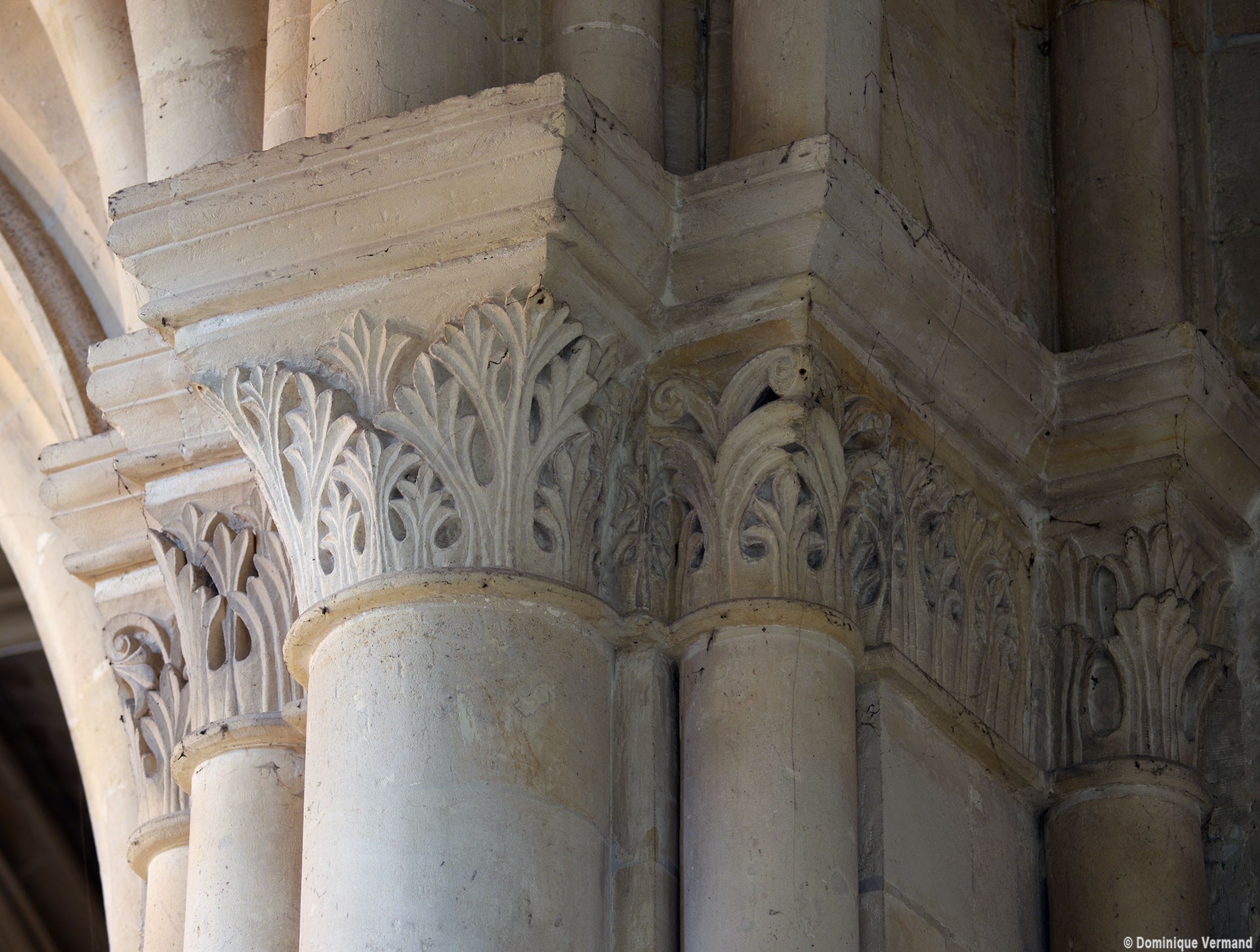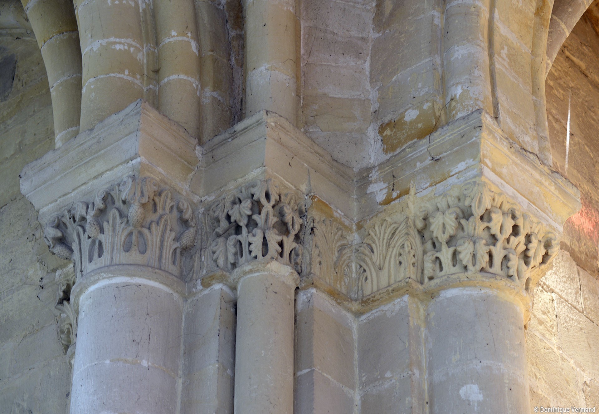 Le choeur du 12ème siècle : les chapiteaux et les bases des parties basses